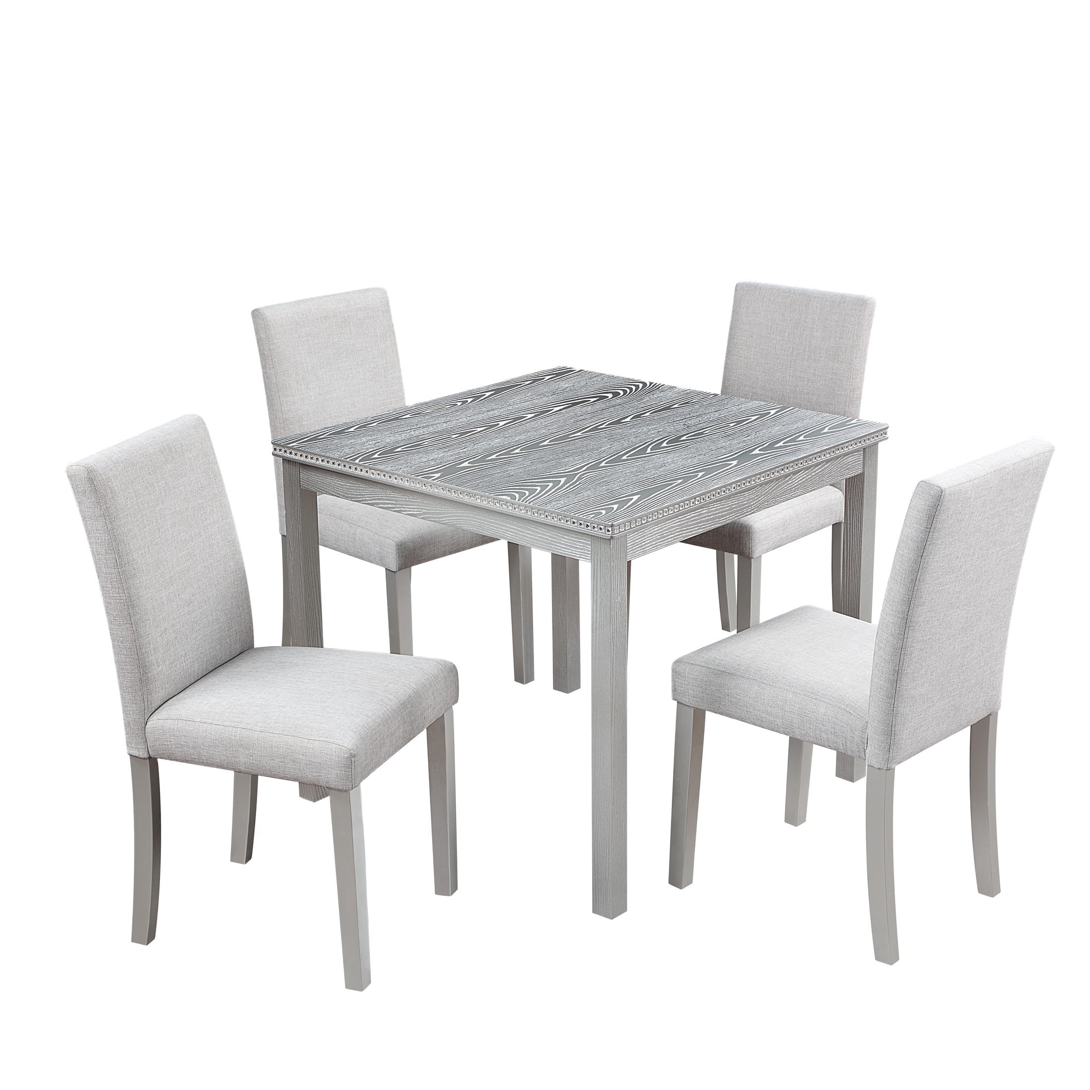 PORKISS Dining Table Set for 4, Solid Wood Dining Room Set with 1 Square Table 4 Upholstered Chairs, Dinner Table with Padded Chairs for Home Kitchen, Gray