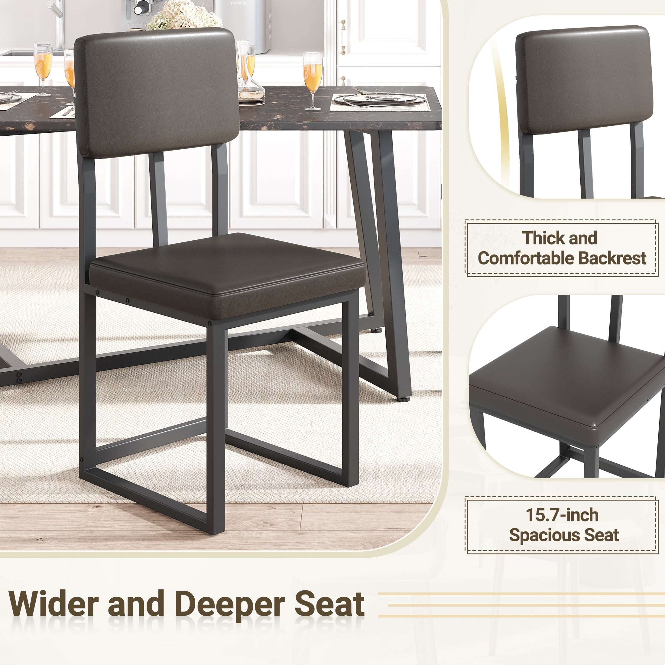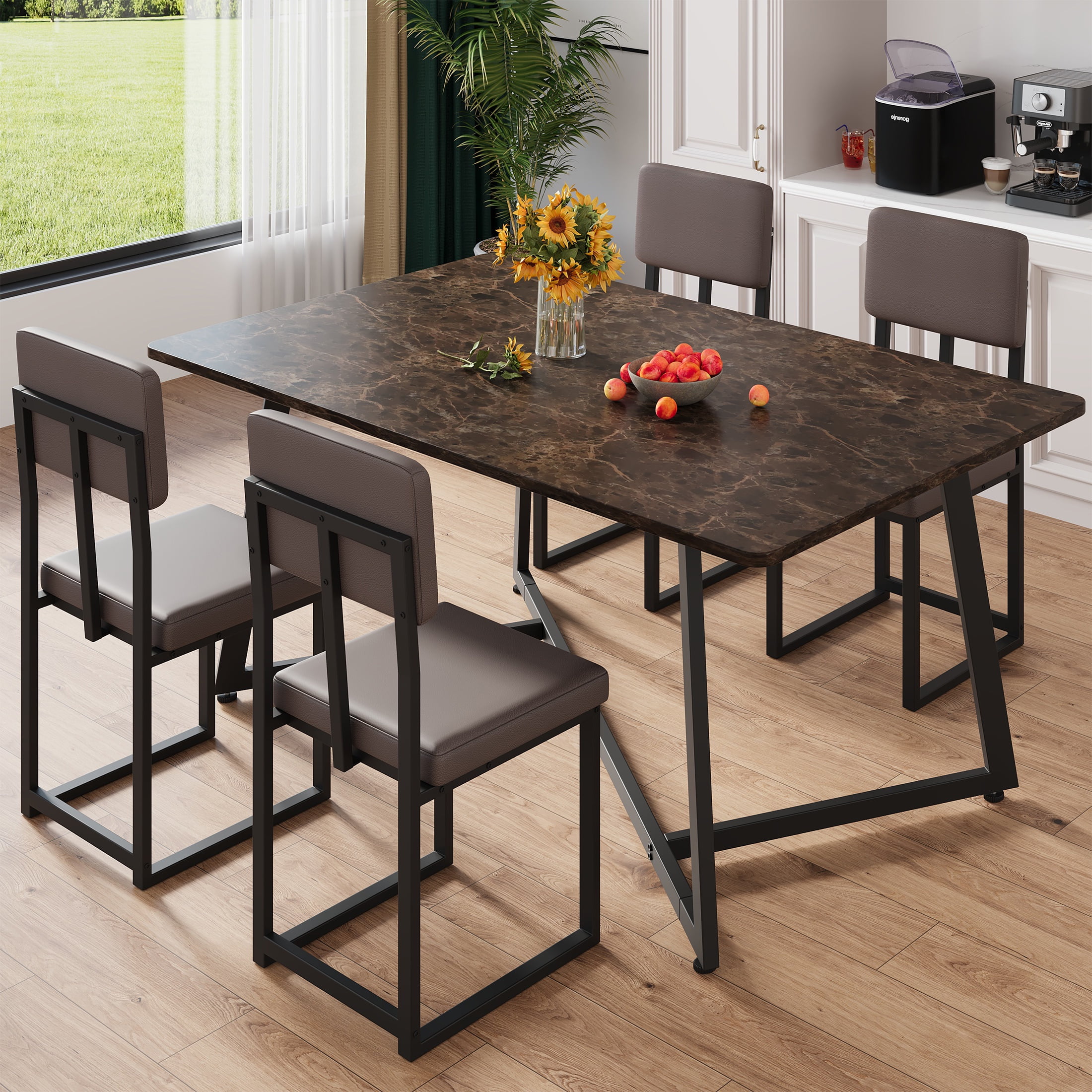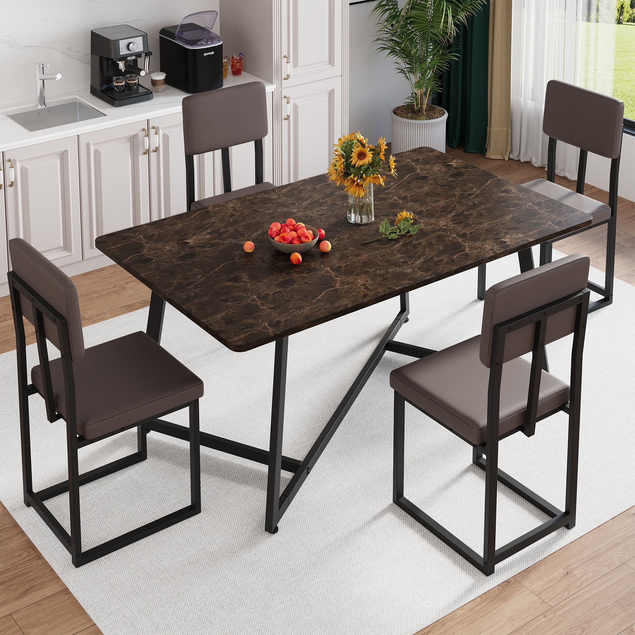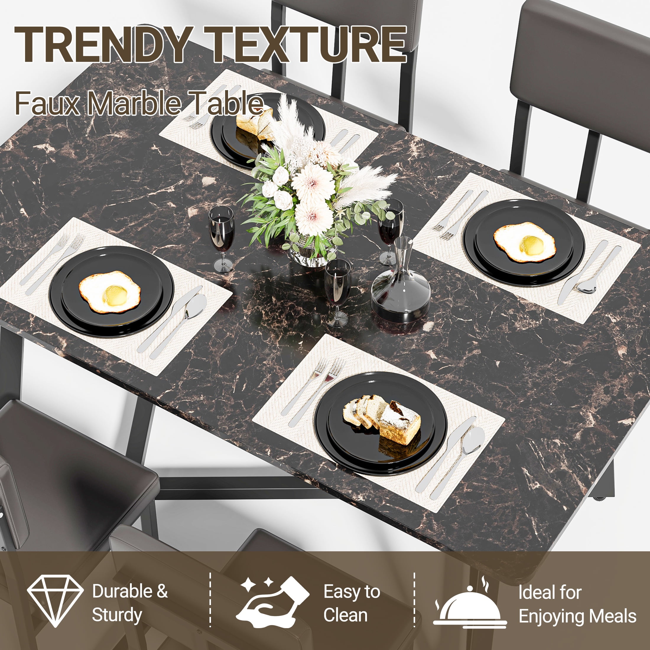PORKISS 5 Piece Dining Table and Chair Set, Kitchen Dining Room Table Set with Faux Marble Table PU Leather Chairs, Rectangle Dining Table Set for 4, Dinette Set for Small Space, Brown + Black