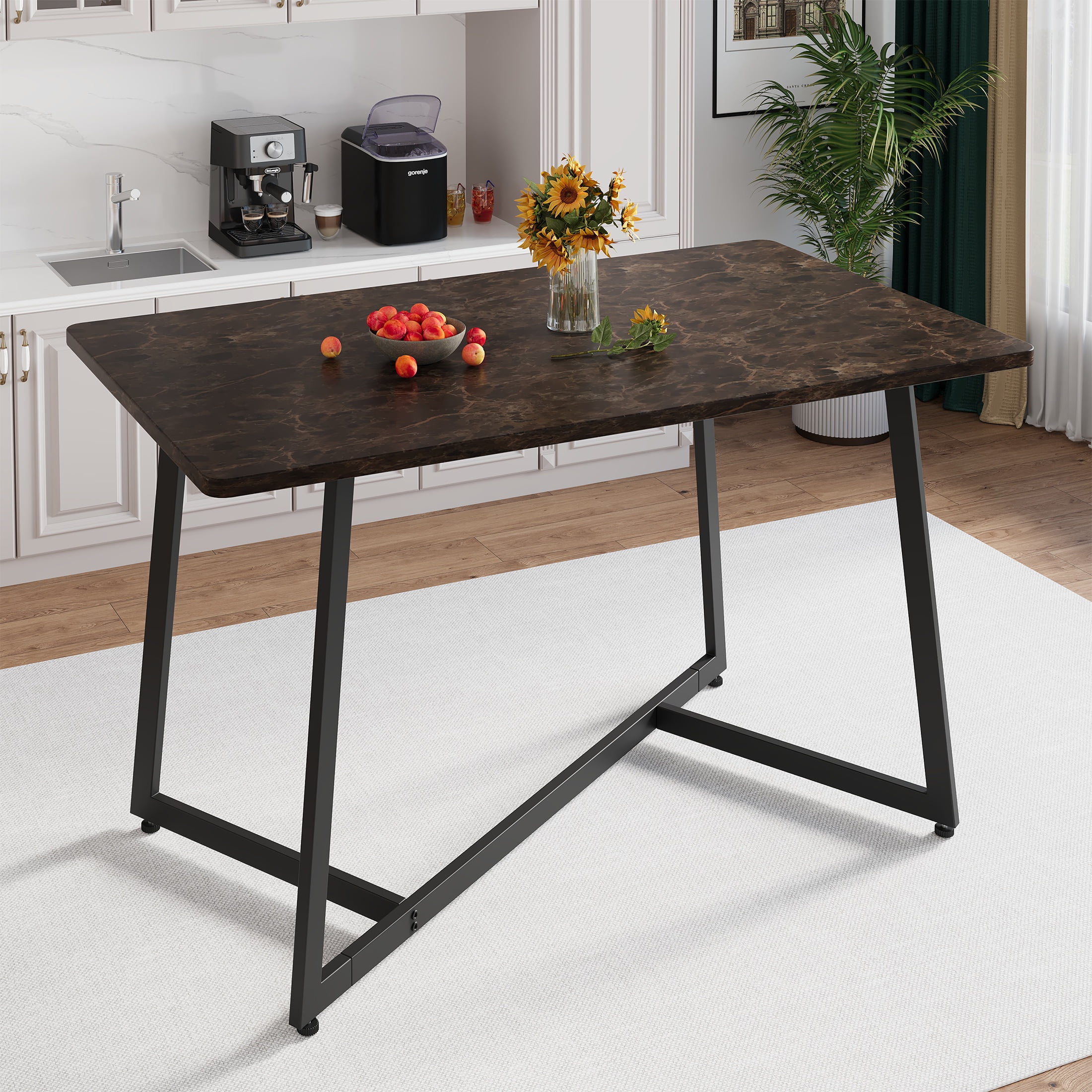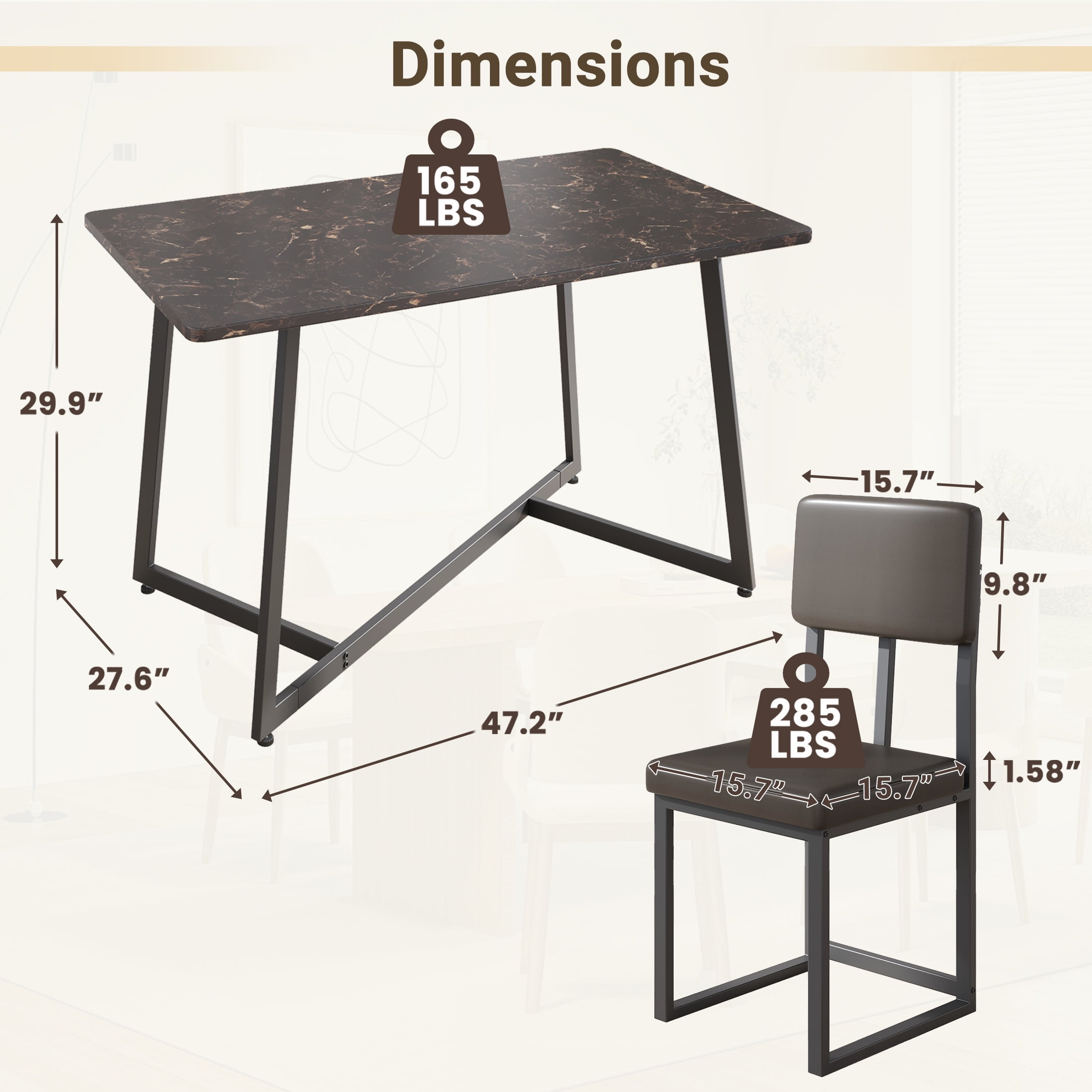 ✅ Scratch-Resistant Marble-Look Tabletop The dining table set for 4 premium imitation marble surface with a glossy finish for an elegant, high-end look. Ultra-smooth and scratch-resistant – stays flawless even with daily use. Spills and stains wipe away effortlessly with a damp cloth. ✅ Luxurious Linen-Padded Seating The dining room table set for 4 with soft linen-upholstered seats and backrests with high-density sponge padding for cloud-like comfort. Oil-resistant and easy to clean – simply wipe with mild soap and water. Superior resilience: Cushions bounce back to shape instantly, even after prolonged use. ✅ Rock-Solid Stability The dining set for 4 reinforced stainless steel frame with thickened tubes (20% thicker than standard sets) ensures wobble-free durability. Advanced structural engineering supports 285 lbs per chair – built to last for years. Rounded corners prevent bumps and injuries, ideal for homes with kids. ✅ Quick & Hassle-Free Assembly The dining table and chairs set of 4, all parts are clearly labeled for foolproof installation. One person can set it up in under 30 minutes! Why Choose This Dining Set? ✨ Stylish Versatility The marble-look tabletop and sleek leather seats blend seamlessly with modern, farmhouse, or industrial decor. ✨ Family-Friendly Design Rounded edges + stain-resistant materials = peace of mind for busy households. ✨ Space-Saving Solution Compact yet spacious enough to seat 4-6 adults comfortably – perfect for apartments and small dining areas.