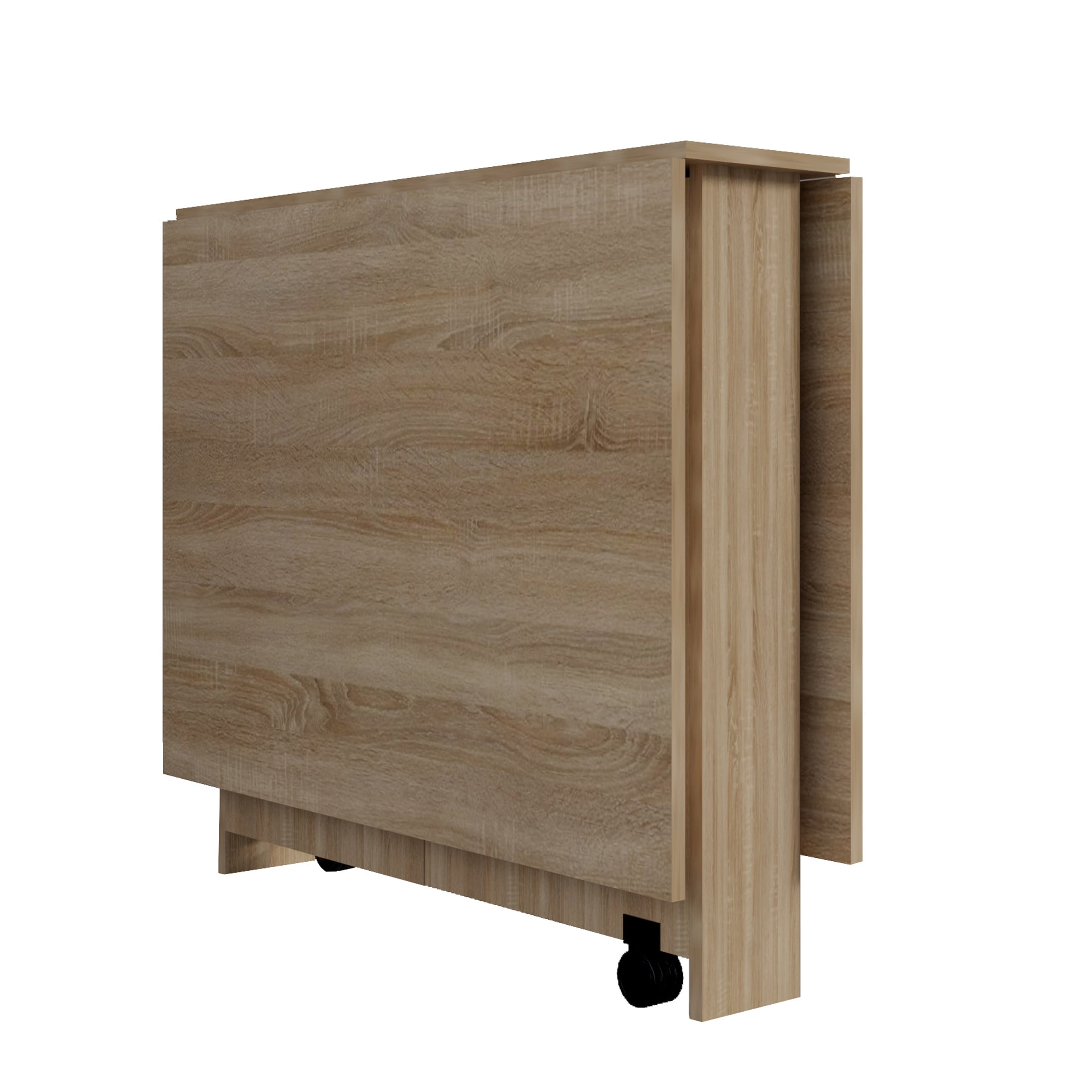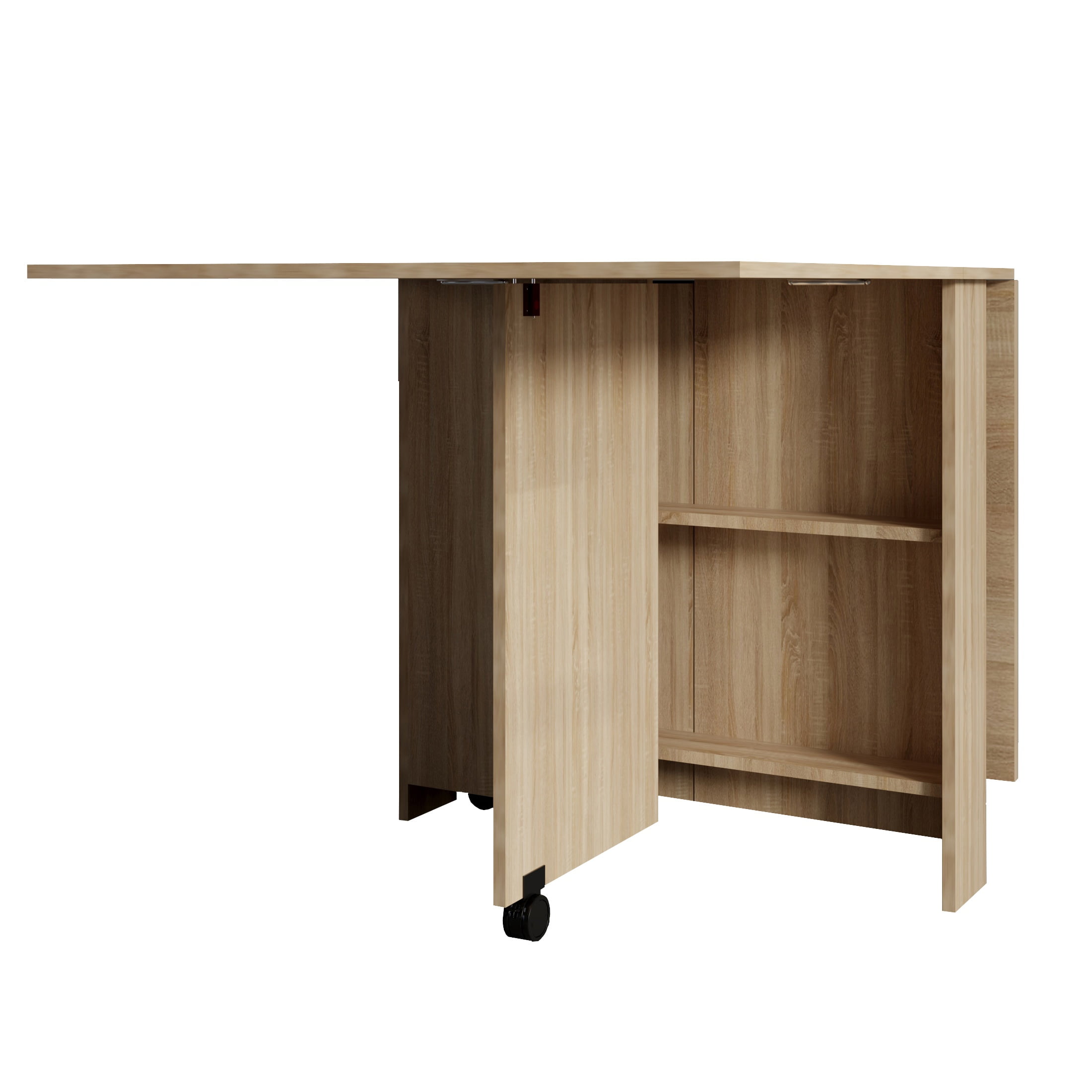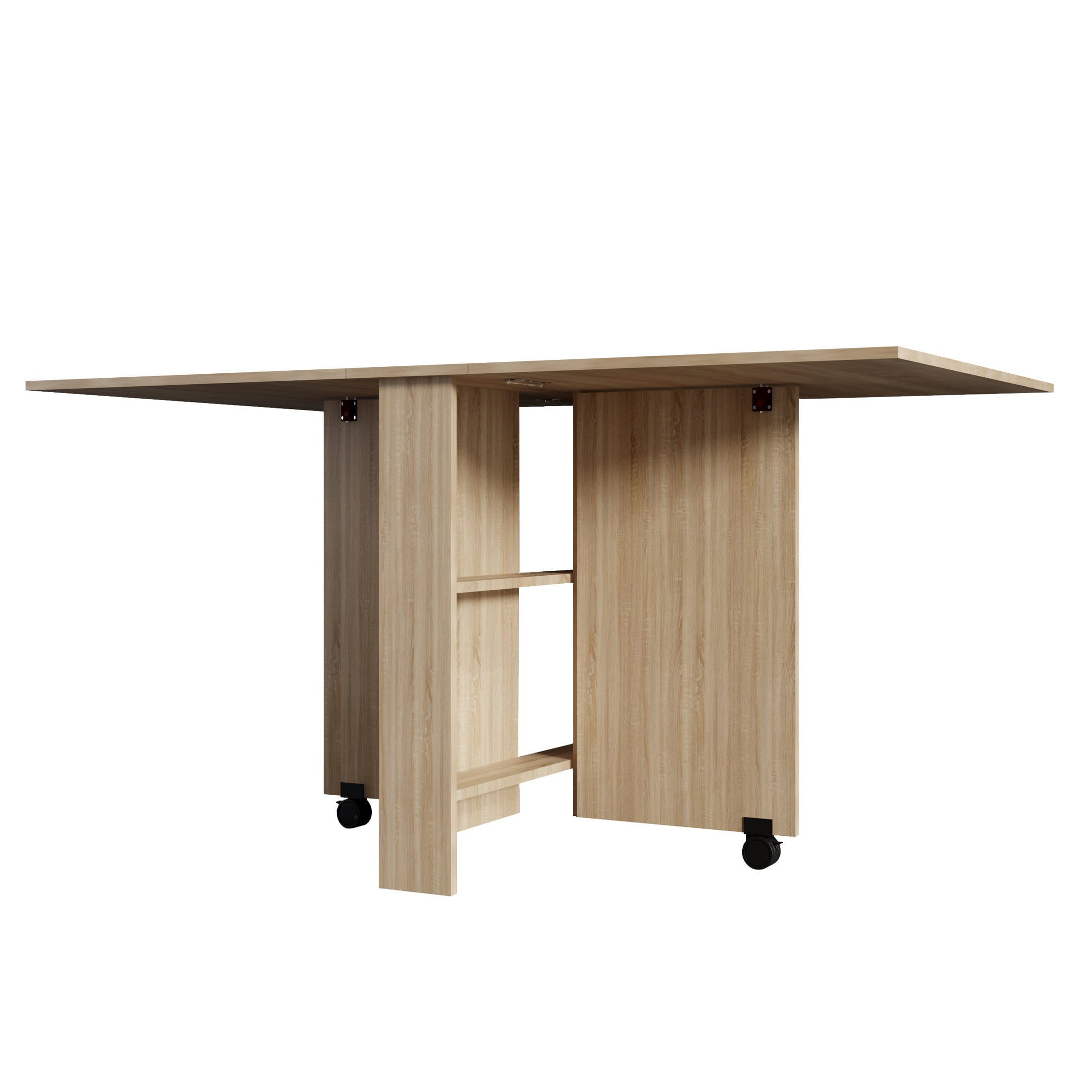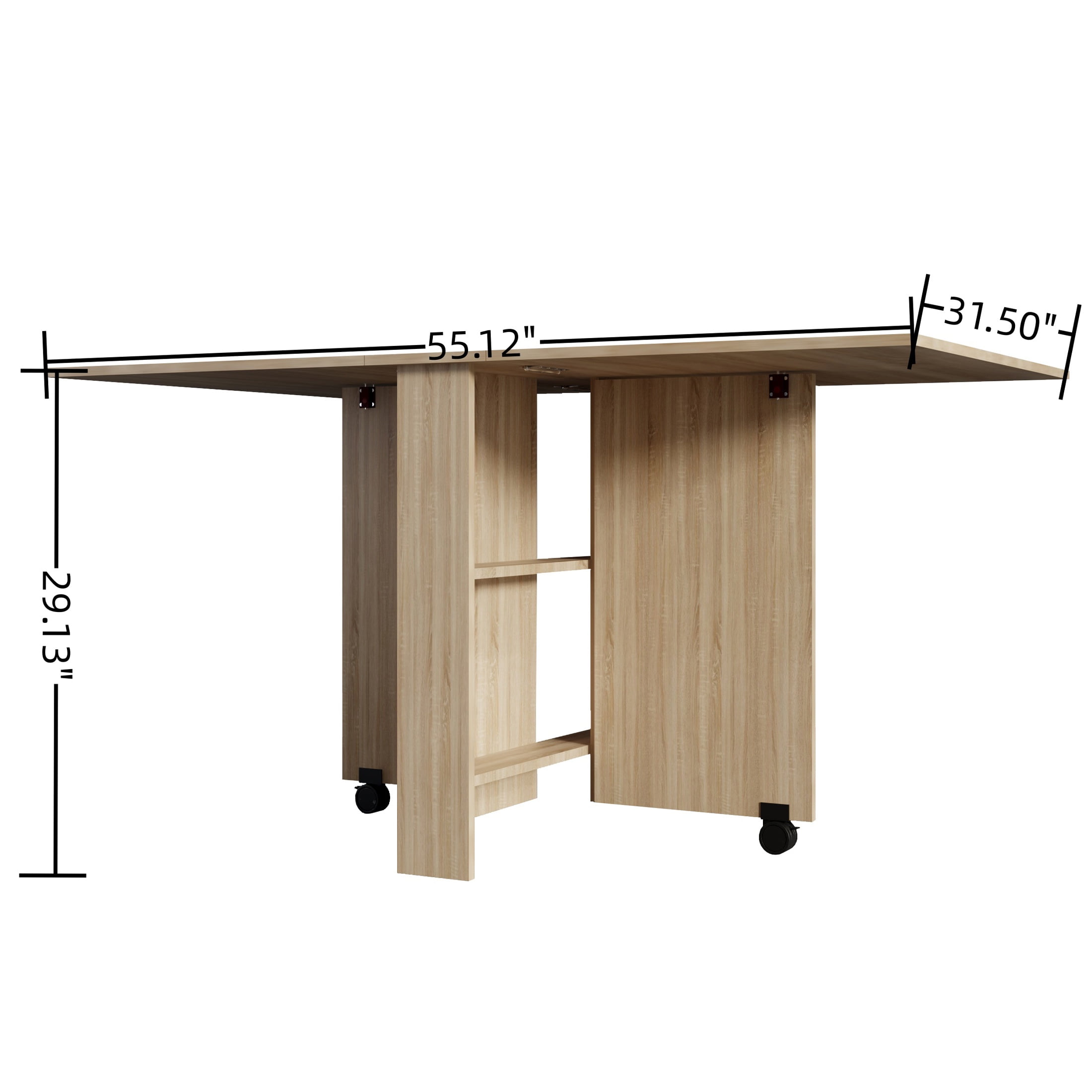 PORKISS Folding Dining Table, Space Saving Versatile Dining Room Table, Folding Kitchen Table with Wheels, Storage Shelf for Small Apartment, Wood (Only Table)