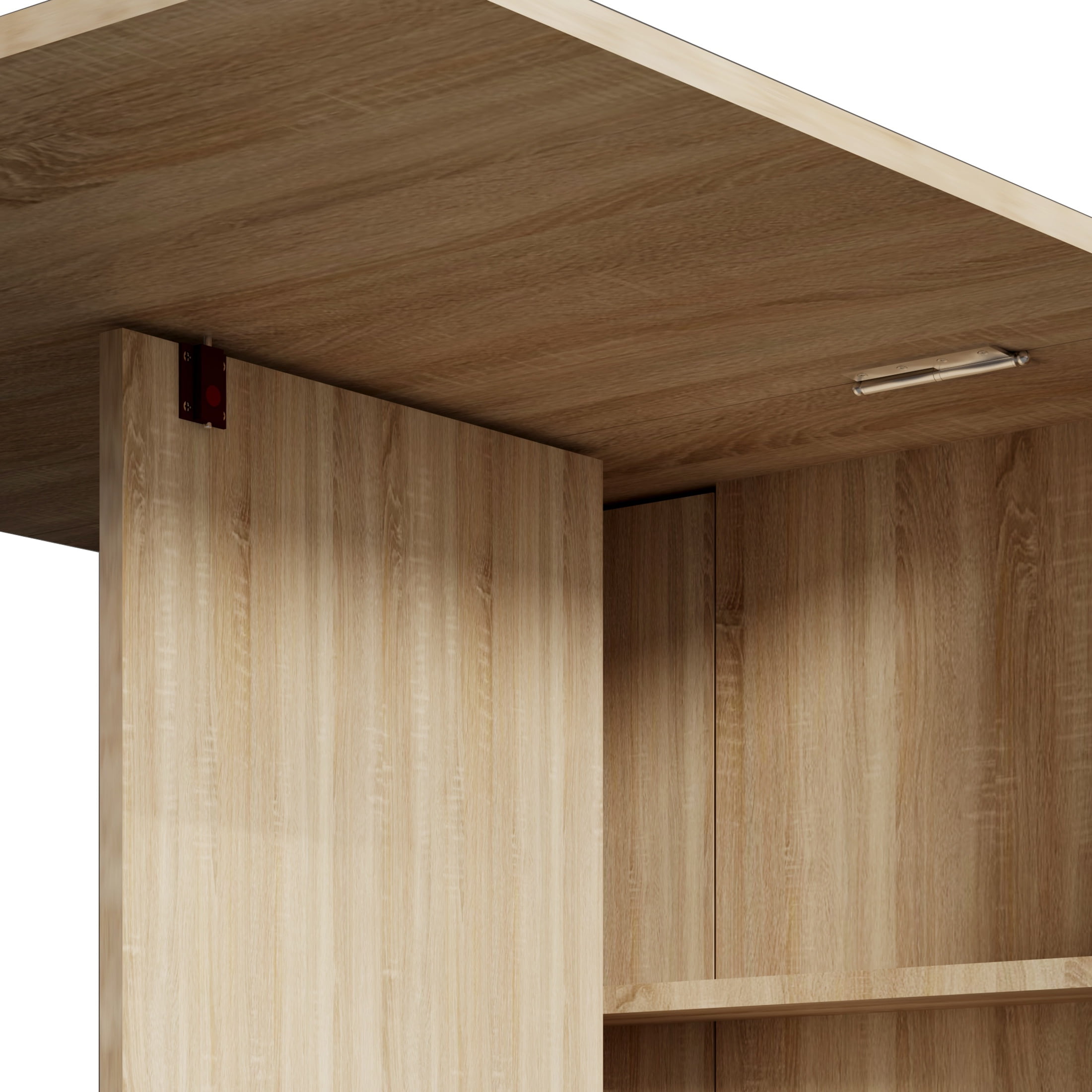 Adjustable Size Options: Compact (39.8″ L): Perfect for small spaces or solo use. Medium (51.5″ L): Ideal for small families or casual meals. Fully Expanded (63.2″ L): Great for entertaining guests or larger gatherings. Easily adjust the table size to suit your needs and space! Sturdy & Durable Construction: Built with a 1.2-inch thick tabletop and a reinforced iron frame, this table is designed to last. Adjustable feet ensure stability on uneven surfaces and protect your floors from scratches. Enhanced Strength & Stability: Made from durable particle board and steel legs, this table is both strong and reliable. Folding brackets and adjustable feet eliminate wobbling, providing a secure surface for all your activities. Built-In Storage Rack: The table features a convenient storage rack underneath, perfect for organizing tableware, office supplies, games, or other essentials. Multi-Functional Design: Use it as a dining table, home office desk, game table, or even a meal prep station for the kids. Its versatile design makes it a practical addition to any home, apartment, or workspace. Easy Installation: Comes with clear installation instructions for quick and hassle-free setup.