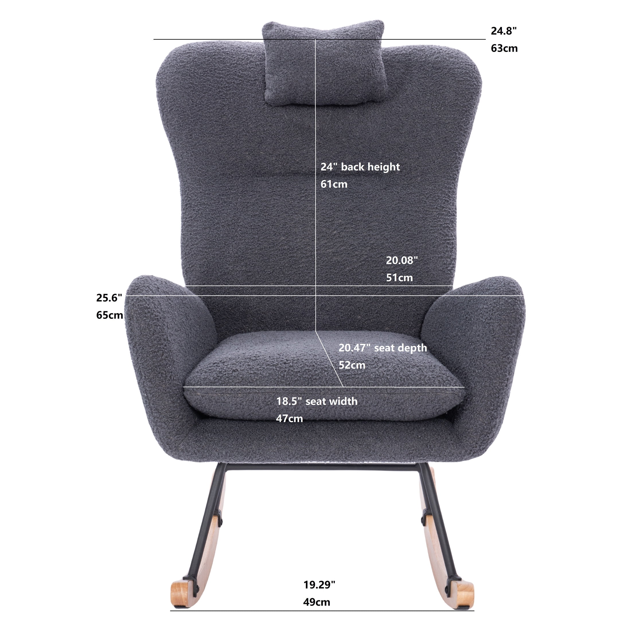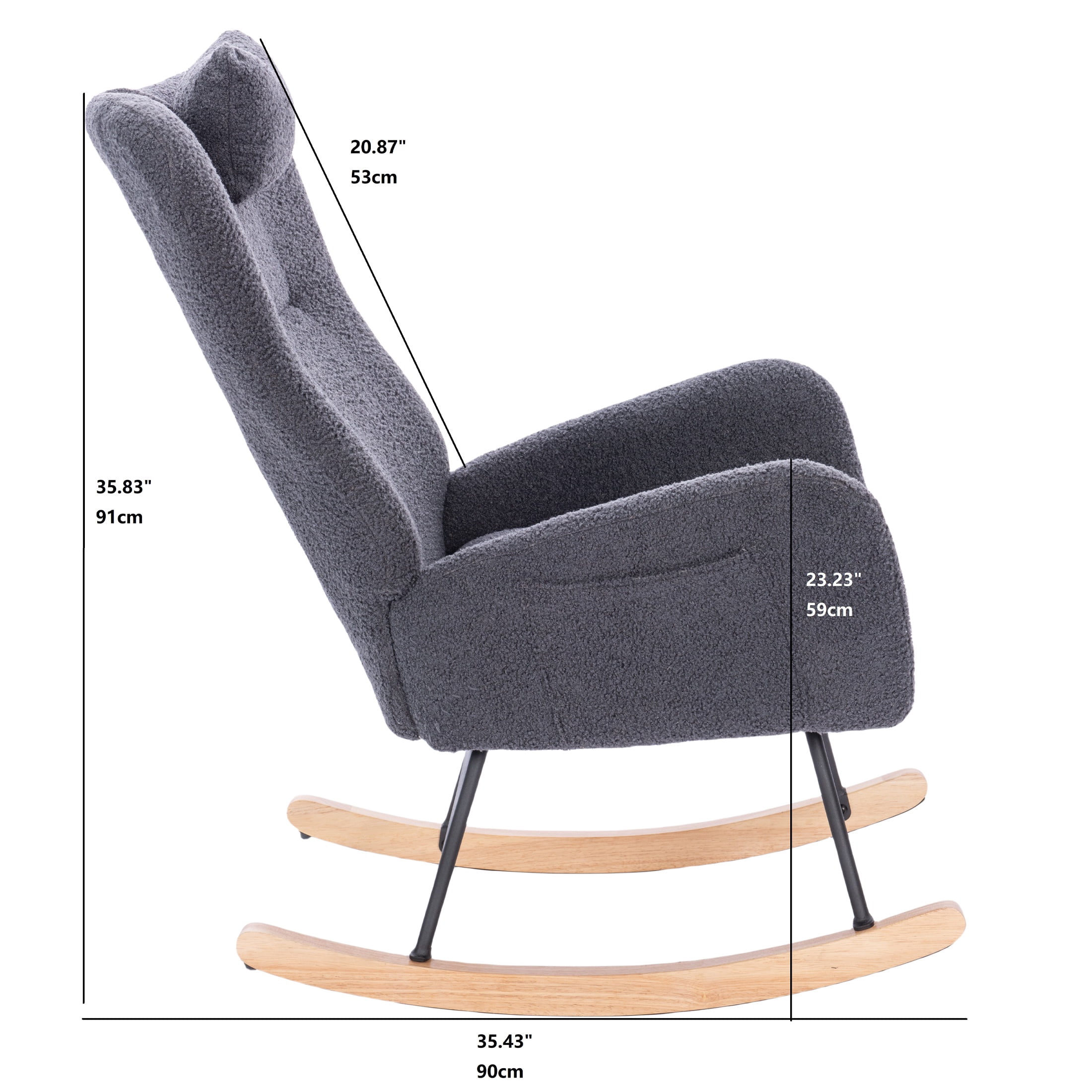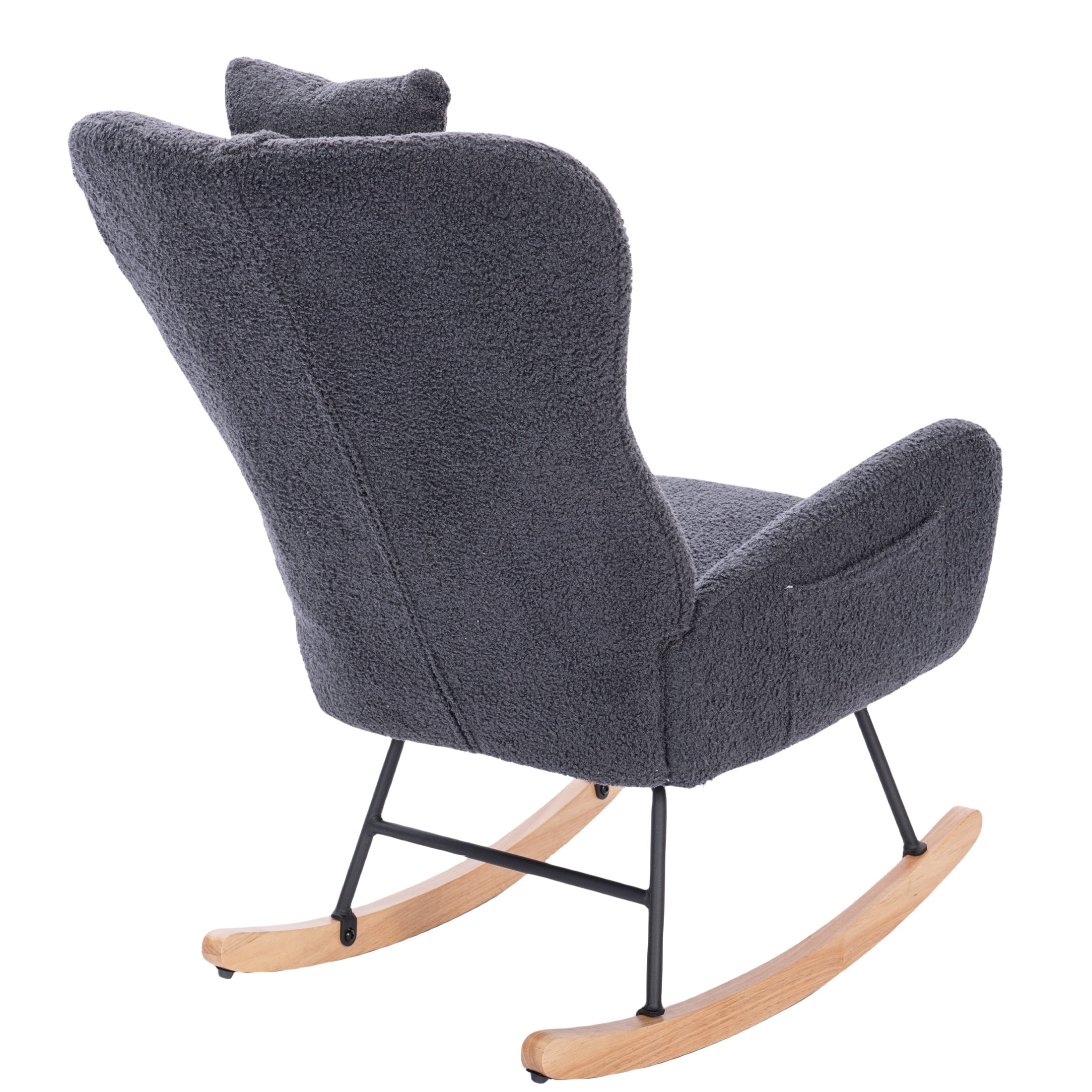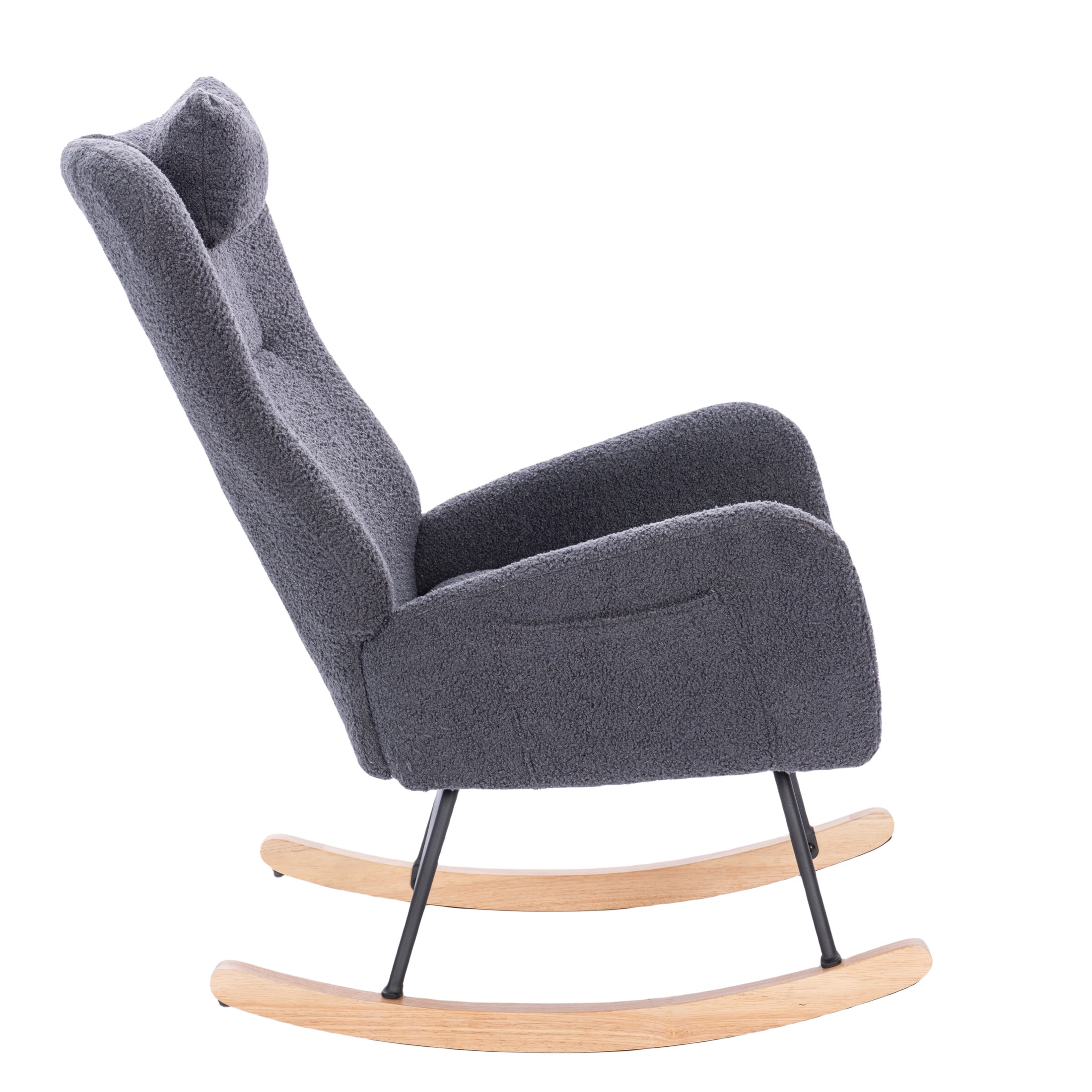 PORKISS Modern Rocking Chair, Upholstered Teddy Fabric Accent Chairs with High Backrest, Glider Rocker Comfortable Armchair with Padded Seat for Living Room Bedroom Playroom, Grey