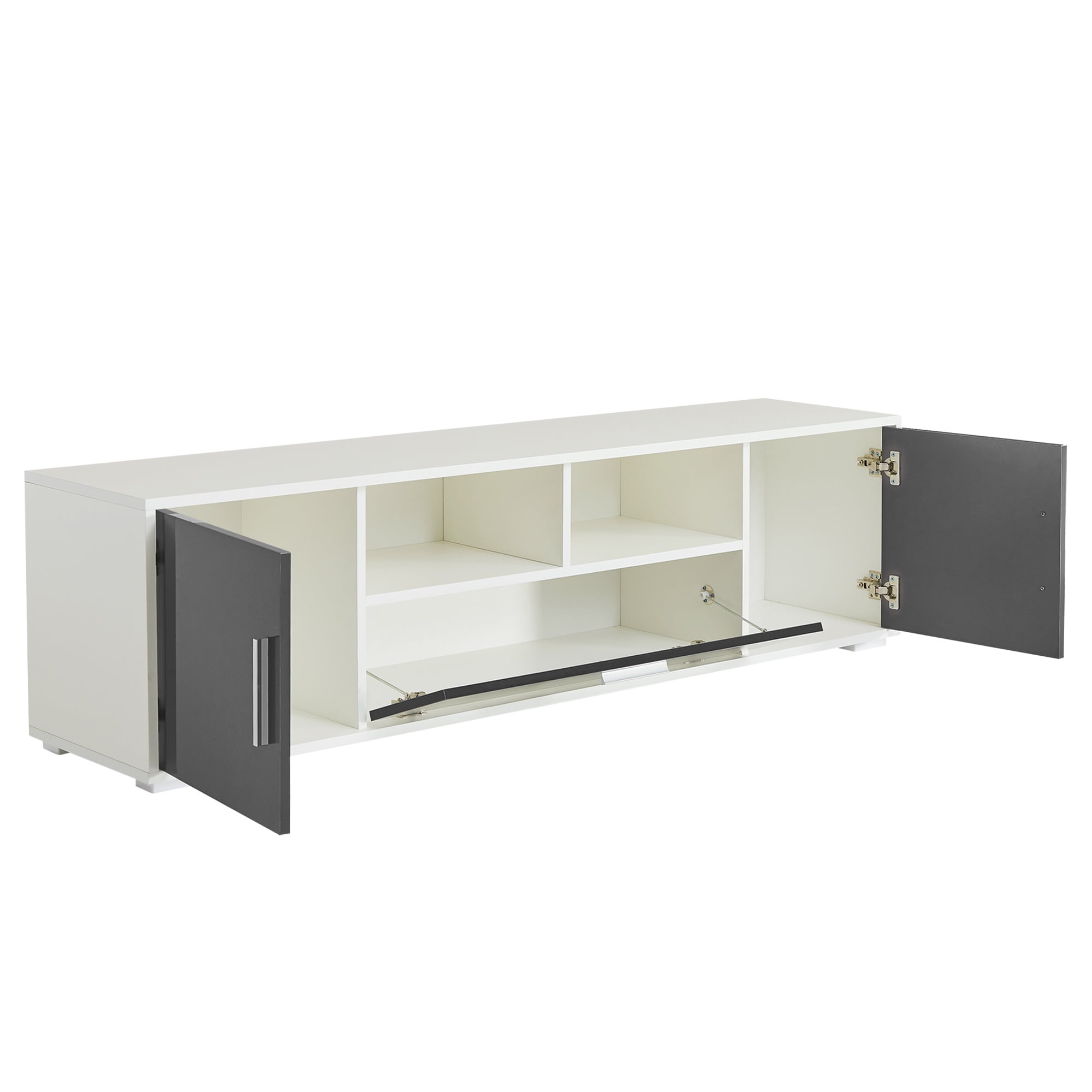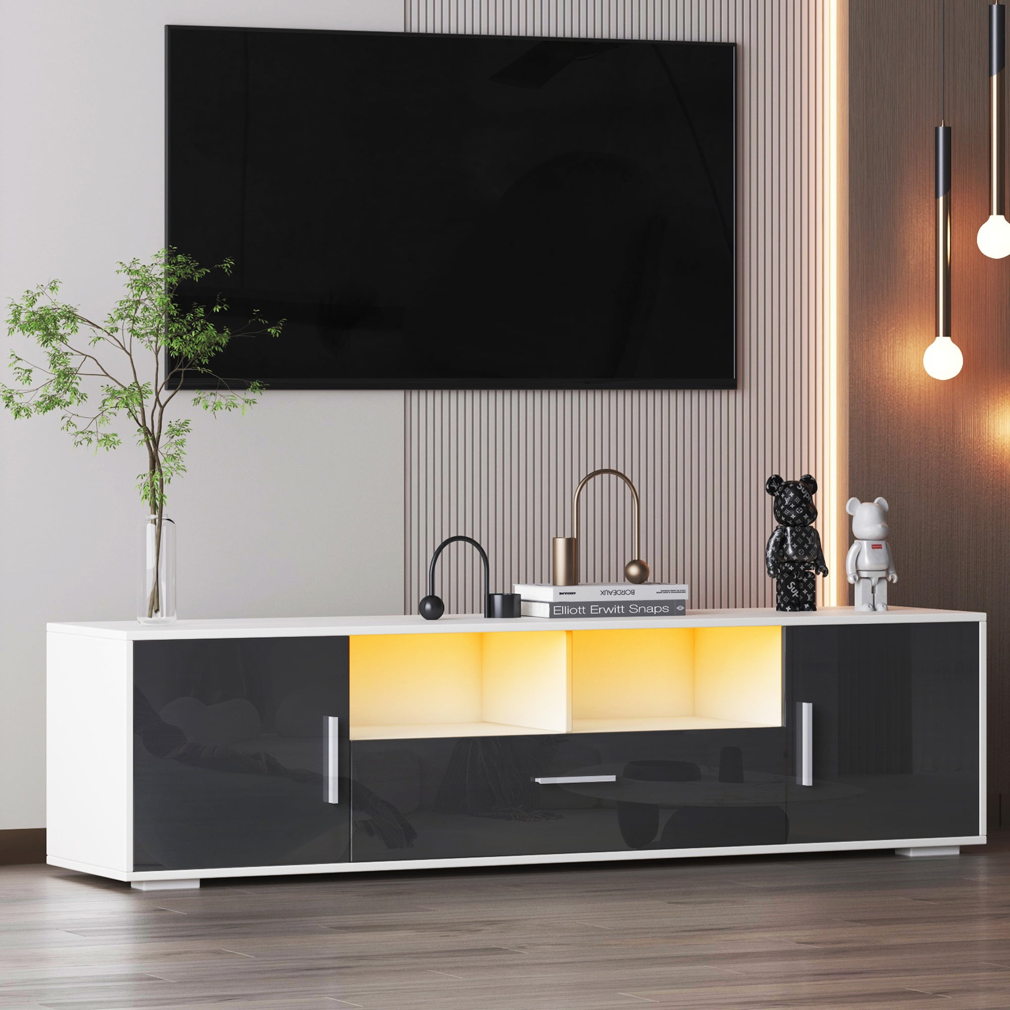 PORKISS LED TV Stand for 65/70 inch TV, PS5 Gaming Entertainment Center for TVs with Storage Cabinet for Living Room, TV Console Cabinet, White+Dark Gray