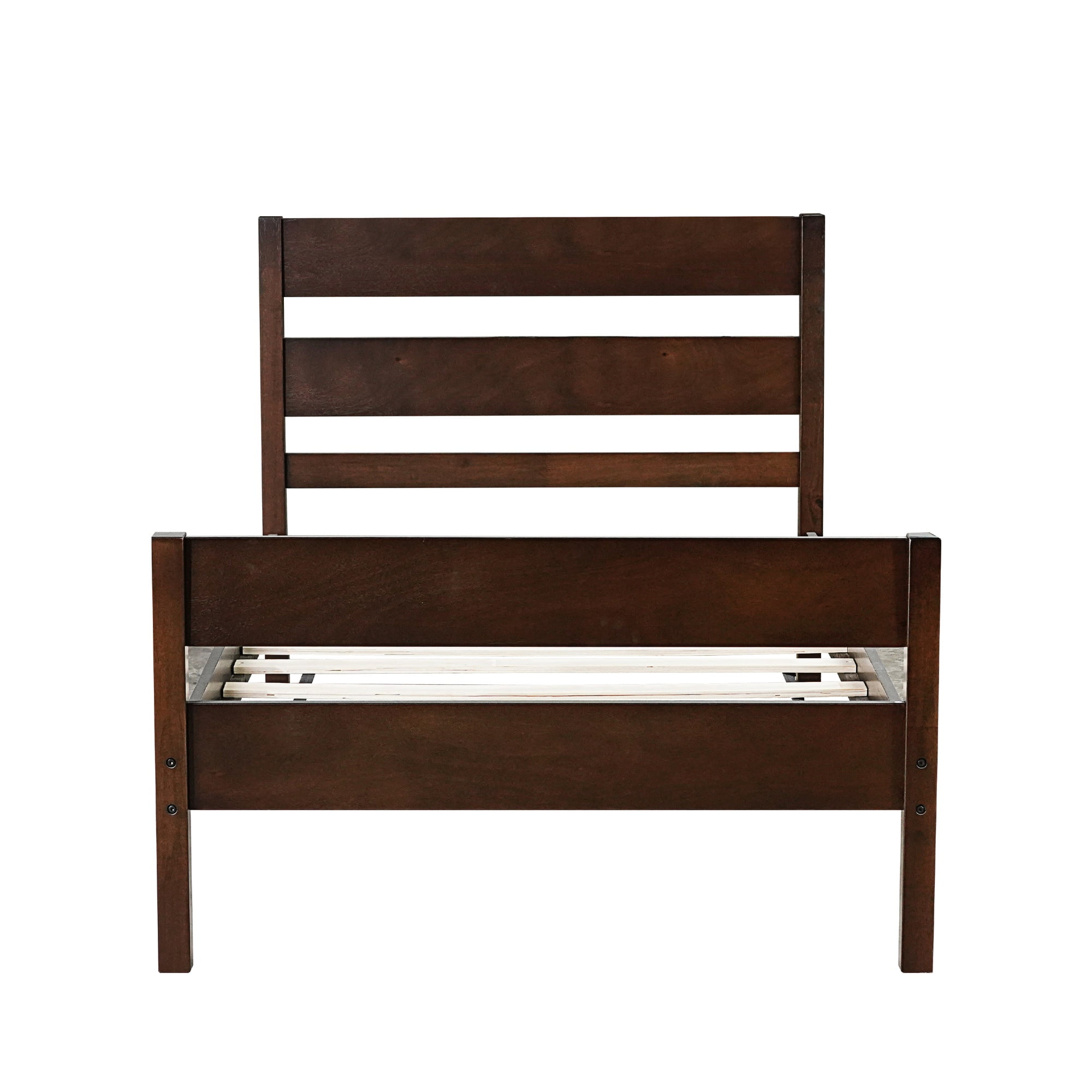 PORKISS Twin Size Bed Frame, Wood Bed Frame with Headboard/Footboard for Teens Boys Girls, No Box Spring Needed, Espresso