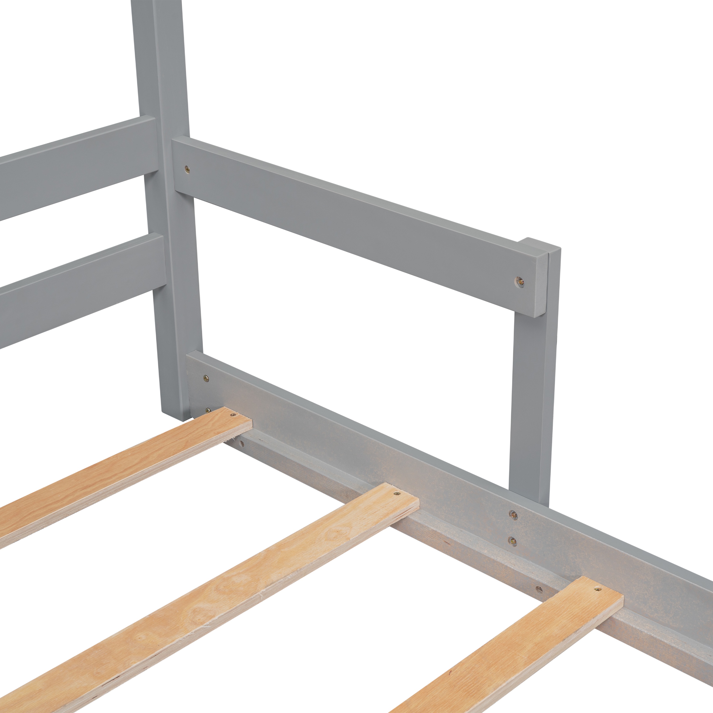 Enhance your bedroom with the PORKISS twin-size house bed, a modern wood floor bed frame with a charming house-shaped headboard that inspires imagination. Perfect for kids, teens, and adults, this platform bed offers sturdy handrails for added support, ensuring safety and comfort. Crafted from pine wood, it features a secure slat foundation, eliminating the need for a box spring and providing a durable and stylish addition to any room. Specification: Product Name: House-Shaped Headboard Bed Main Color: Grey Material: Pine Wood, Plywood Size: Twin Overall Dimensions: 78.5″L x4 4.8 “W x 57.2″H Weight Capacity: 200lbs Product Weight: 36.4lbs Number of Slats: 7 Slats Recommended Mattress Thickness: 6” Package Includes: 1 x Twin Size Bed Frame Notice: Manual measurement has been used, there may be some reasonable error. Items may differ slightly from the photo in terms of color due to the lighting during photo shooting or the monitor’s display.