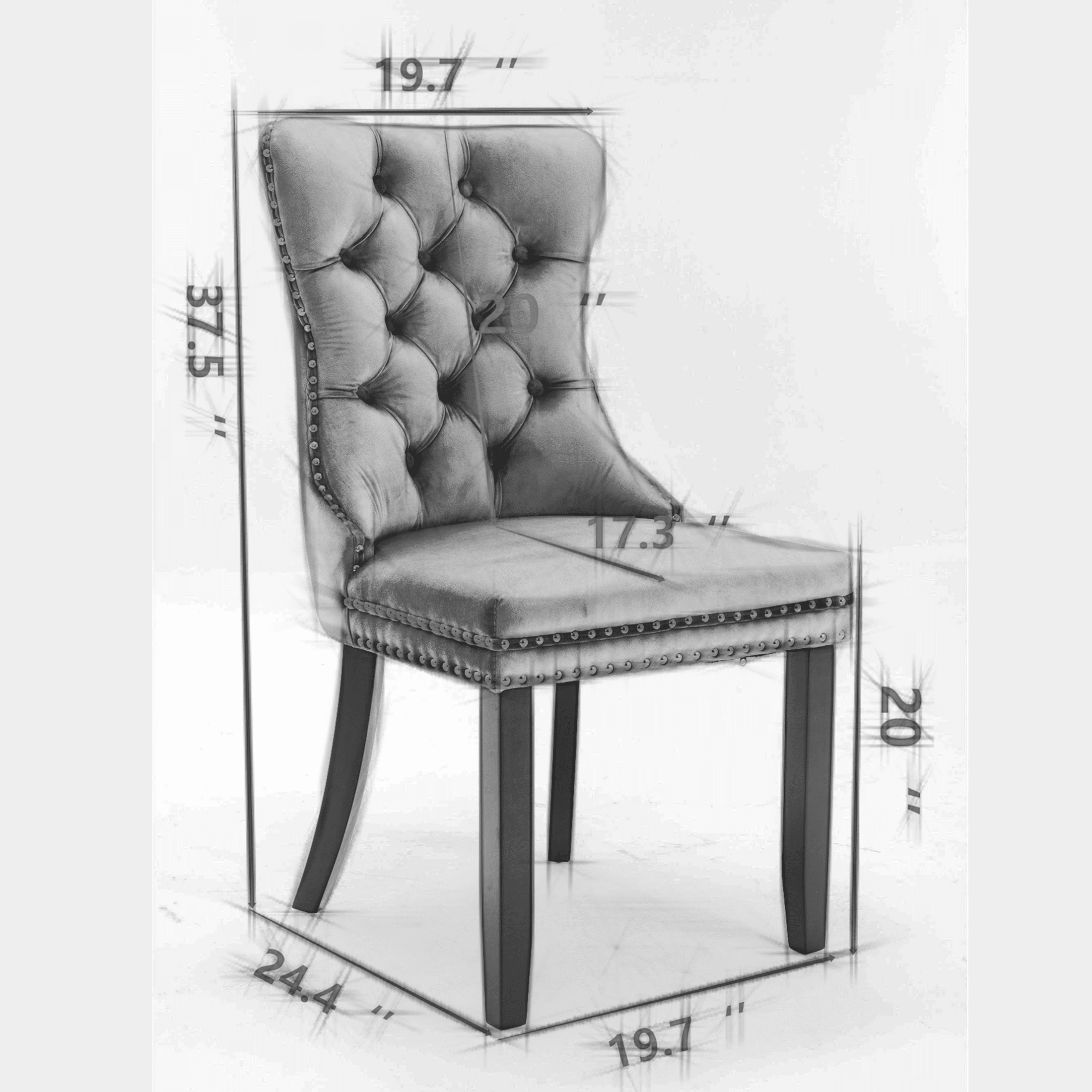 Elevate your dining experience with the PORKISS dining chairs. These elegant chairs feature luxurious velvet upholstery, golden stainless steel plating legs, and decorative nailhead trim. The hand-made pull-ups and hems on the backrest, combined with a high rebound sponge cushion supported by rubber bands and steel springs, ensure long-term comfort and durability. The solid wood frame provides robust support and is capable of holding up to 300 pounds, making these chairs both stylish and reliable. Specification: Product Name: Dining Chairs Main Color: Beige Main Material: Velvet Wood Type: Rubber Wood Filler: Foam All Dimensions: 24.6″L x19.7″ W x 37.5″H Product Weight: 16.2Lbs Weight Capacity: 300Lbs Package Includes: 2 x Dining Chair Notice: The actual Product’s Color may be slightly different from the image due to the lighting or monitor’s display. Manual measurement has been used, there may be some reasonable error.
