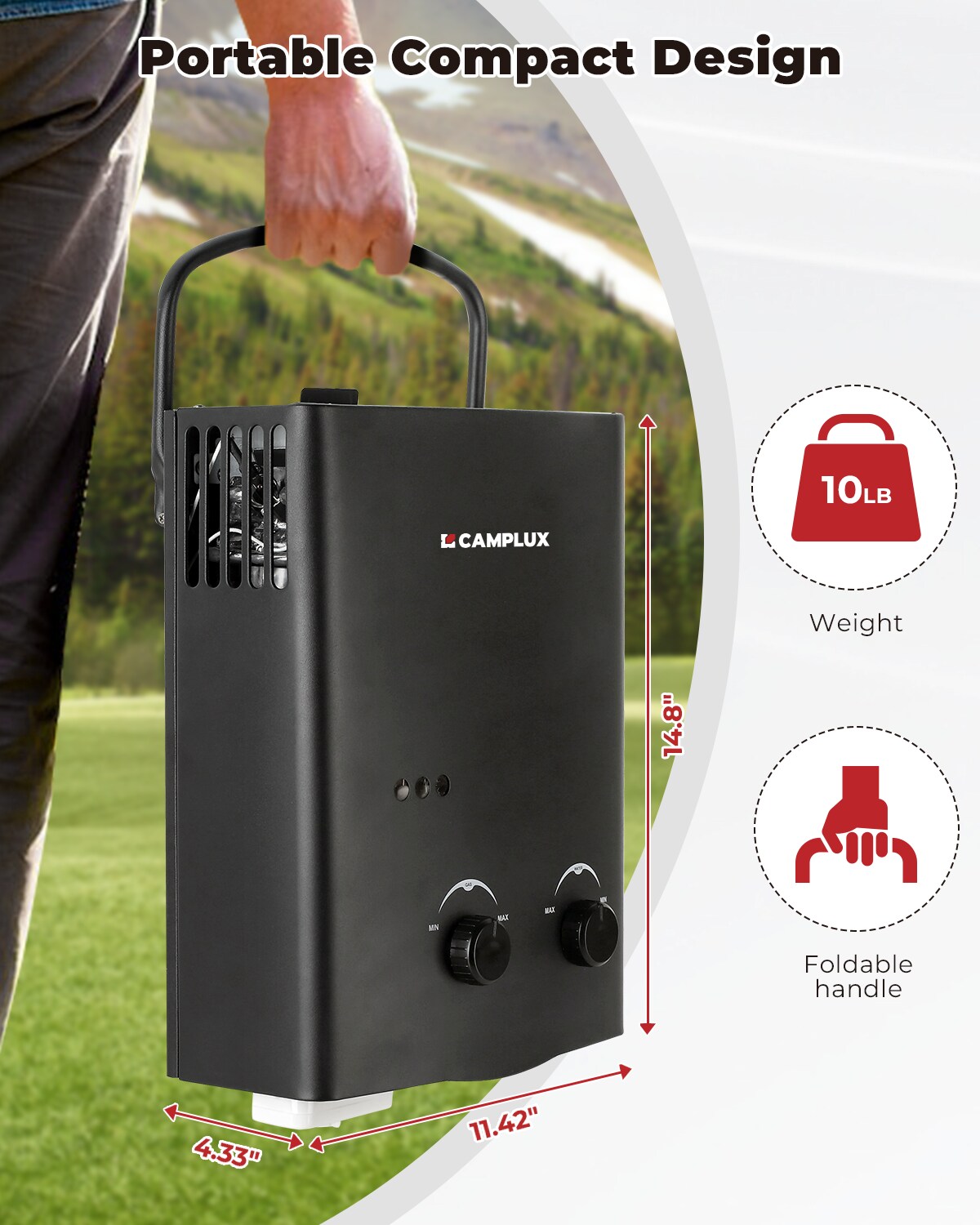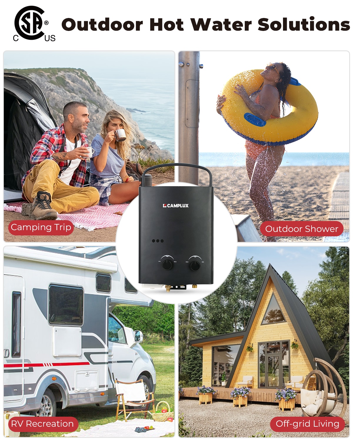 Camplux is a brand that specializes in outdoor gas tankless water heater for 10 years. Camplux tankless water heaters are designed to provide hot water instantly, making them ideal for outdoor showers, washing dishes, or any other activity that requires hot water in remote locations. These water heaters are compact, easy to install, and operate using propane gas. They are energy-efficient and offer a continuous supply of hot water, which is a significant advantage for people who enjoy camping or living off-grid.