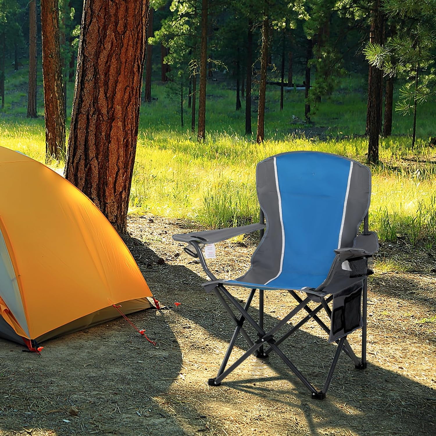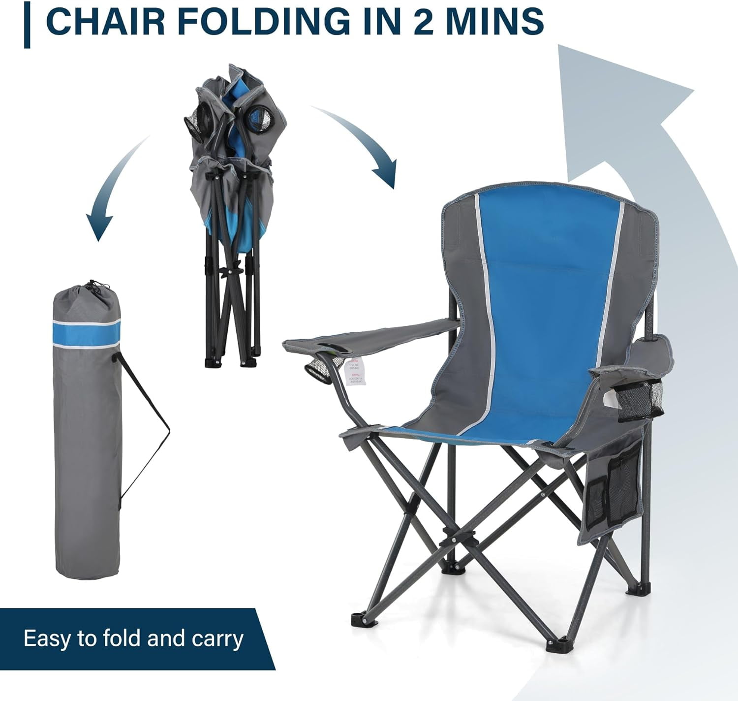 Portable Camping Chair, Heavy Duty Outdoor Folding Chair with Armrest, Foldable Camp Chair with Cup Holder for Camping, Support 350 LBS, Blue-Gray
