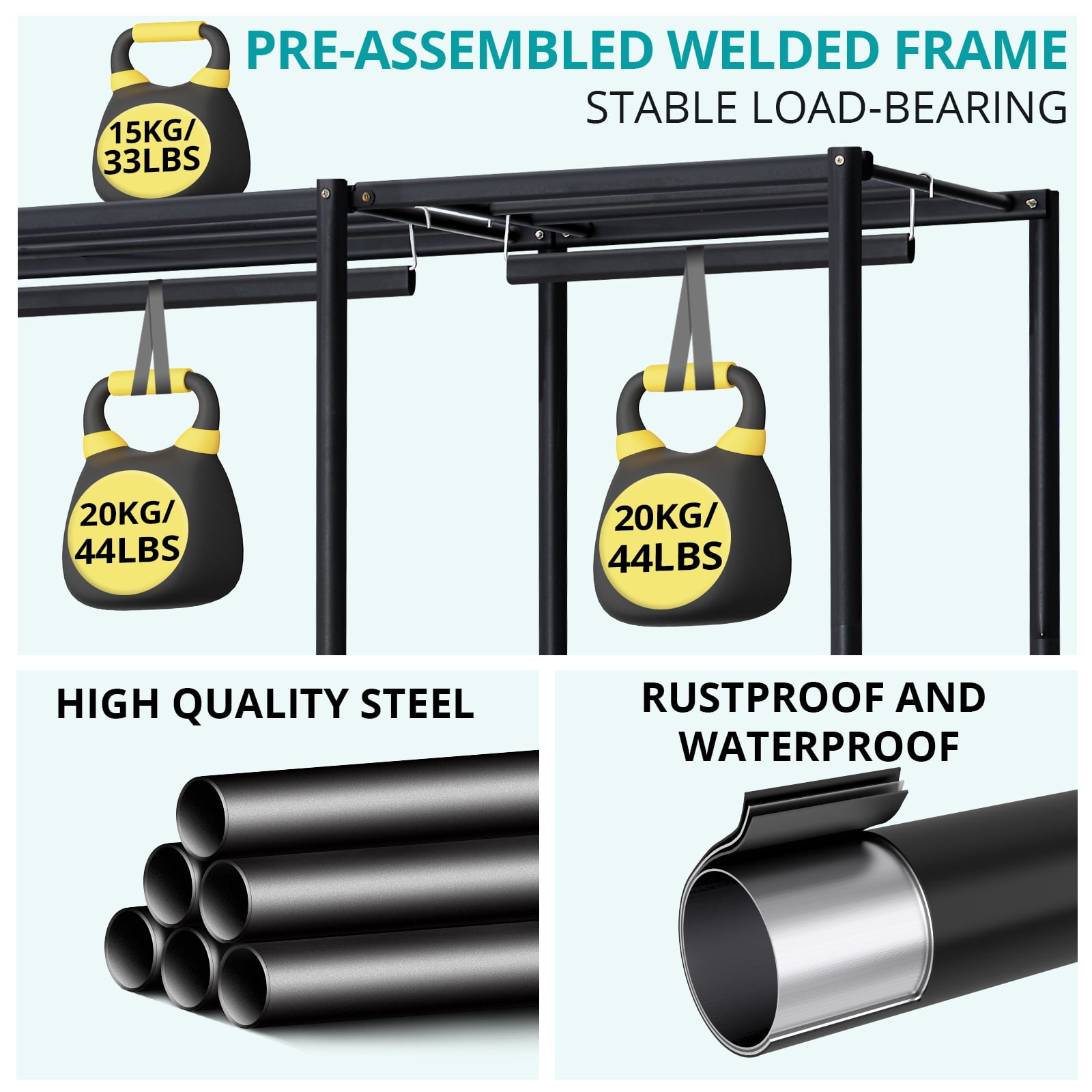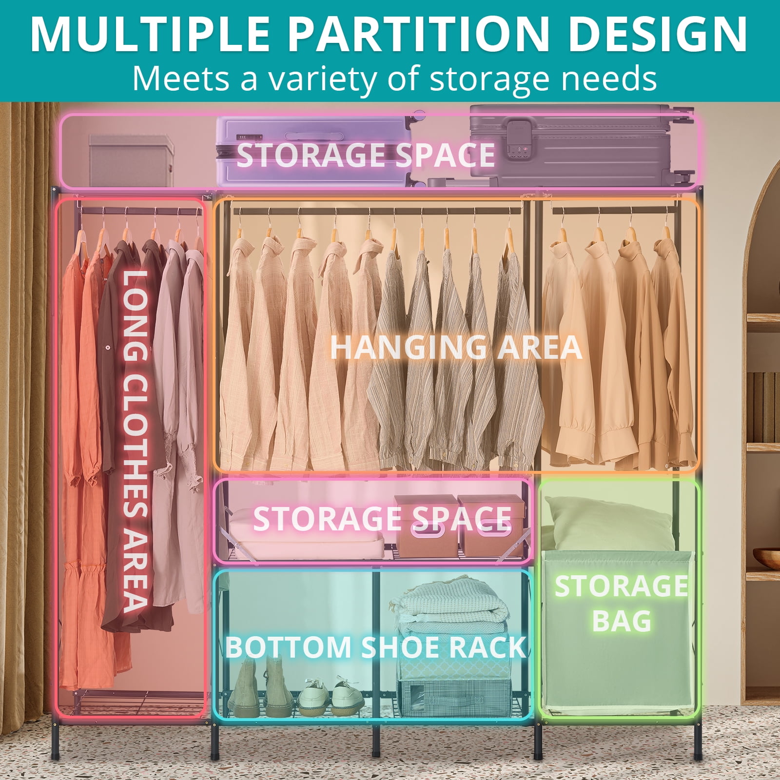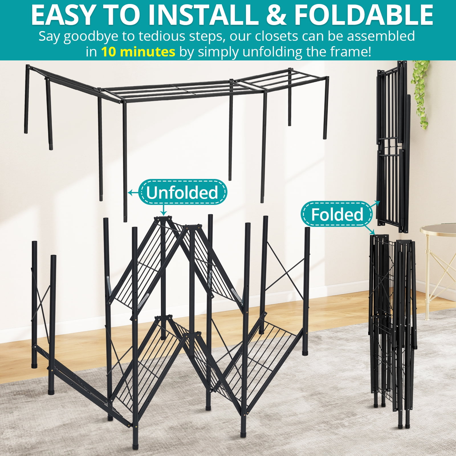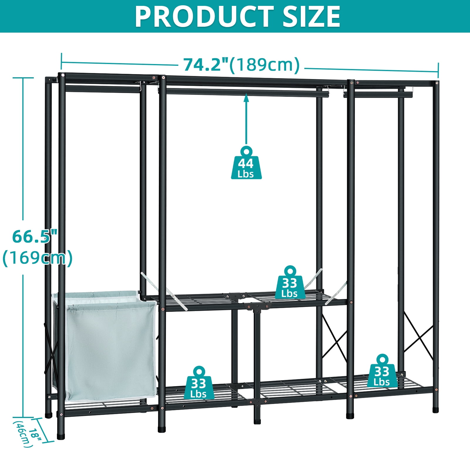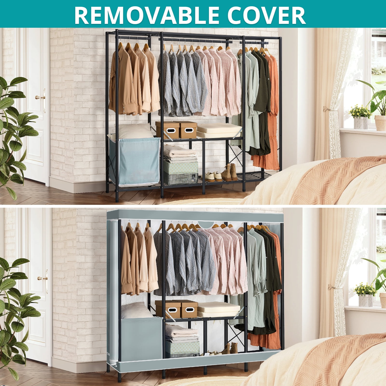 Portable Closet HONEIER Heavy Duty Foldable Clothes Rack with Cover & Storage Bag Freestanding Clothing Rack with 3 Hang Rods& 9 Shelves Wardrobe Garment Rack for Bedroom Closet, 74″L x 18″ W x 67″ H