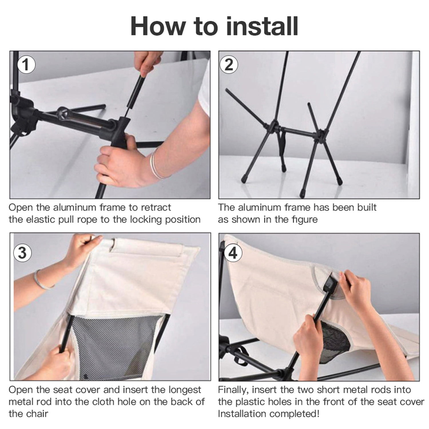 【Durable and Durable】 The outdoor camping chair frame is made of high quality metal, which is made of strong oxidation resistant, corrosion resistant and rust-proof. The seat is made of tear-resistant and thick 600D Oxford Fabric, light weight and a strong load capacity of 130kg. The seams are well connected and the fabric is very durable, easy to clean and also dries quickly. 【Comfortable and Breathable】The back and sides of this high back camping chair are used breathable mesh construction, more comfortable and cool. The backrest design and eco-friendly fabric is safe, comfortable, breathable, relaxing and cosy. Enjoy the outdoor fun. 【Lightweight and Portable】When not in use, the compact camping folding chair can be folded and inserted into its own storage bag. No longer drag away with bulky and heavy camping chairs. This lightweight foldable outdoor chair is suitable for any outdoor activity. The chair fits in its 40 cm large bag, which can easily be placed in a hiking backpack, on your motorcycle or even in your hand luggage and accompanies you where you can find your next adventure. 【Easy to set up】The highly elastic pull rope in the aluminium tube allows for easy and quick setup. Simply clip the frame together, pull the seat up and you can sit back relaxed. You immediately have a comfortable place by the campfire, beach chair, folding chair, at a festival, or a sports event. 【Perfect service】The portable outdoor chairs for backpackers, tailgaters, hikers, concert visitors, campers, adventurers and anyone looking for comfort without bulk. A decent holiday gift for friends and families. If you have any questions, please contact us directly.