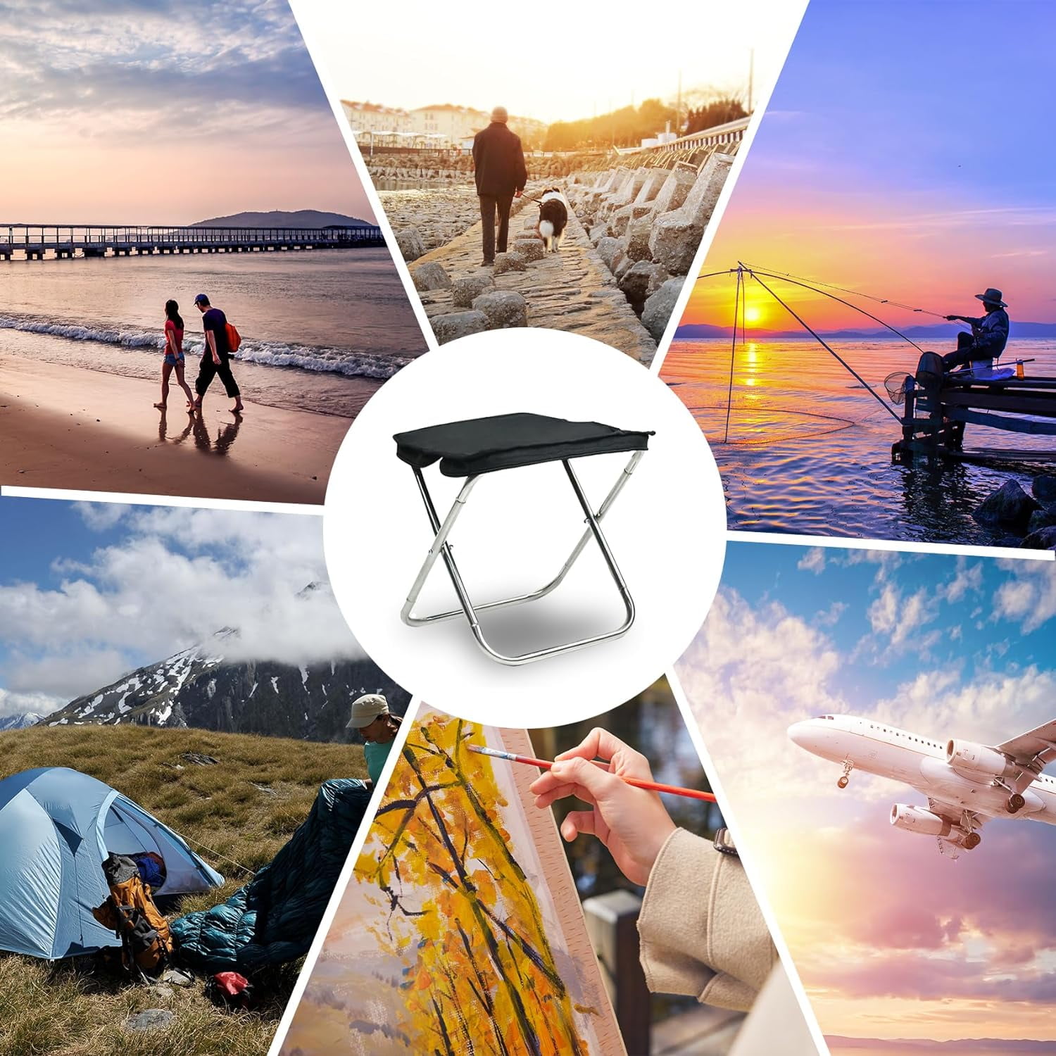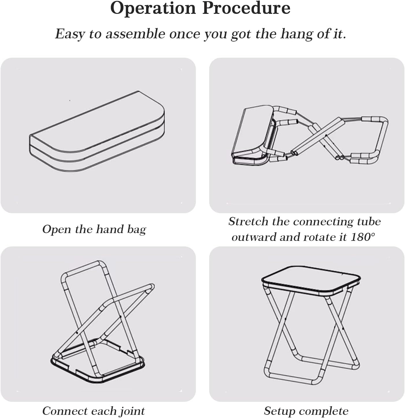 The outdoor camp stool surface is made of durable 1000D oxford fabric, skin-friendly and breathable, keep camp stool dry and ventilated. Elastic ropes are hard wearing and will not easily break even under strong stretching. The camp stool surface is a handbag. You don’t have to find another place to put the bag.Tack back more convenient. Add this collapsible foot stool to your outdoor camping accessories. It folds down just like a camp chair, so you’ll never have to decide between space savings or luxury Everyone can set portable collapsible camp stool up and disassemble it in seconds without others and tools help. Just open storage bag and pull the frame out, then sit back and enjoy your break. Easy to set up once you get the hang of portable tripod chair. Foldable stool is portable suitable for indoor and outdoor activities.Such as camping, fishing, picnic, gardening, barbecue, hiking, beach party etc.The beauty, functionality, durability and portability of foldable stool make it as achoice