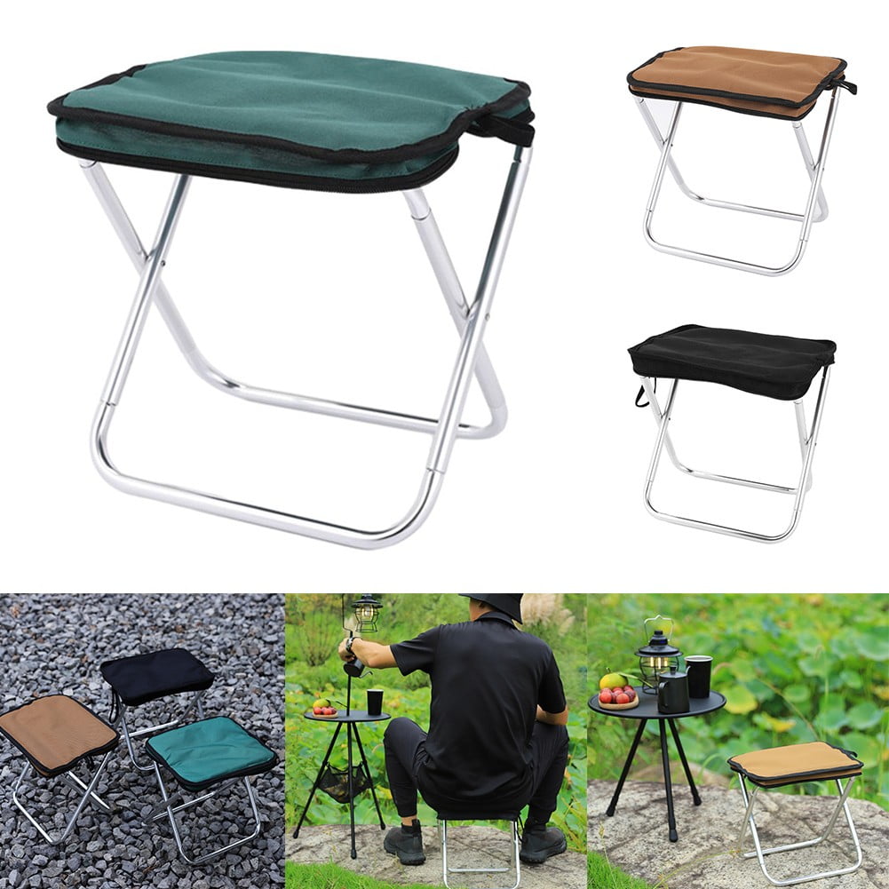 This outdoor aluminum alloy folding stool is designed for easy portability, making it suitable for activities like fishing, camping, and more. No assembly required and comes with a convenient storage bag for easy transport. The collapsable stool is made of thickened Oxford cloth and aluminum alloy material that ensures durability and longevity of the product. The outdoor mini seat dimensions when unfolded are compact, making it portable enough to carry around easily without compromising on comfort. It can be folded and stored into a clutch bag for easy carrying. Not only is it a folding camping stool, but also a footrest for your camping chair providing a comfortable resting place for your feet. Ideal for hiking, mountain climbing, fishing, picnics, barbecues, gardening, backpacking trips, hunting excursions, music festivals, backyard parties and road trips. Specification: Material: Oxford cloth + 7075 aluminum alloy Color: Black,Green,Brown Size: 28.5*26*22cm Weight: About 300g Bearing: 100KG Package Includes: 1 x Folding Chair Note: 1. The real color of the item may be slightly different from the pictures shown on website caused by many factors such as brightness of your monitor and light brightness. 2. Please allow slight manual measurement deviation for the data.