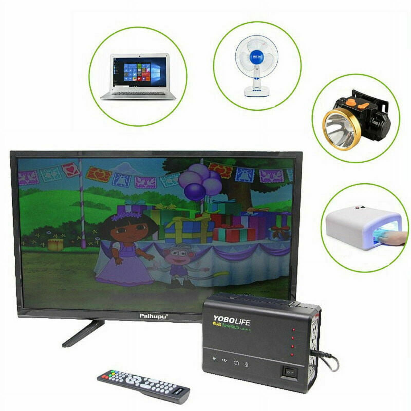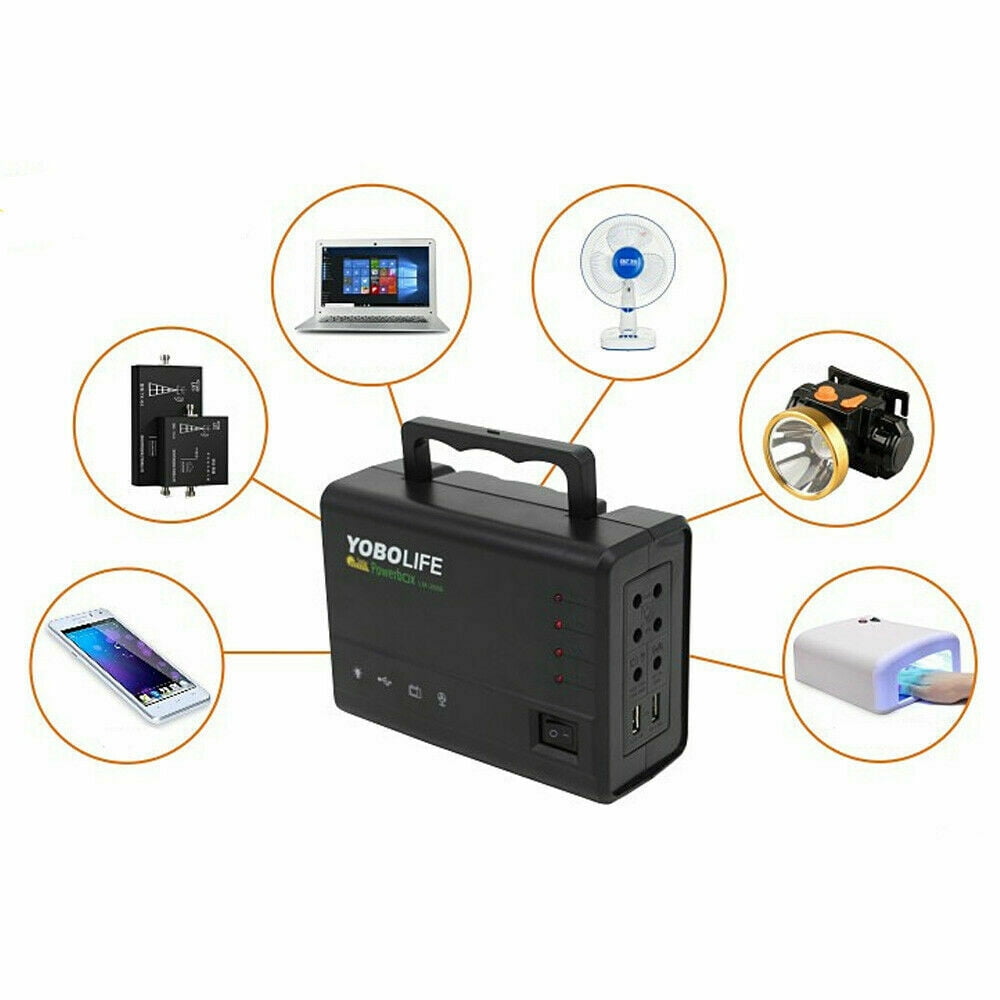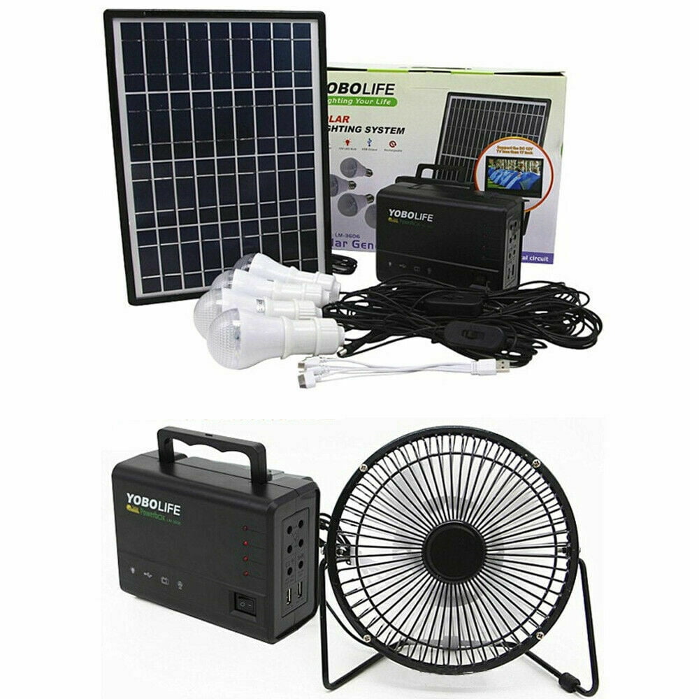Specification: 1.Model:LM-3606 2.Input Voltage:AC 110-220V 3.Output Frequency: 50-60Hz 4.USB Output Voltage: 5V 1.8A 5.Battery:lead-acid 12V 4A 6.Solar Panel:18V 12W 7.Bulb: 4*5W LED Bulb 8.Charging Time:16 hours 9.Material:ABS 10.Color:Black 11.Battery full: 1 light bulbs for 32 hours, 2 light bulbs for 16 hours,3 light bulbs for 10.5 hours,4 light bulbs for 8 hours 12:Plug: US plug Feature: 1.Reusable solar generator, solar charging, environmental protection and energy saving, you can use it in anywhere when there is adequate sunshine. 2.Equipped with usb charging cable, you can charge your electronic products easily with the built-in large capacity battery, you can charge for mobile phones, MP3, MP4, digital cameras and other electronic products. 3.With 4 bright white LED bulbs, ideal to bring you lightness with low power consumption, more durable to use,constant current IC driver, good stability, brightness always maintained above 100LM. 4.Ideals for indoor lighting, outdoor lighting, power failure, camping, home lighting, areas without electricity. 5.Power storage function,helps you to storage the electricty after solar charging. Package Include: 1 x 12V 4A Power Generator 1 X Solar Panel 1 X charger 1 X USB Charging Cable 4 X Bulb with Socket 1 x Manual