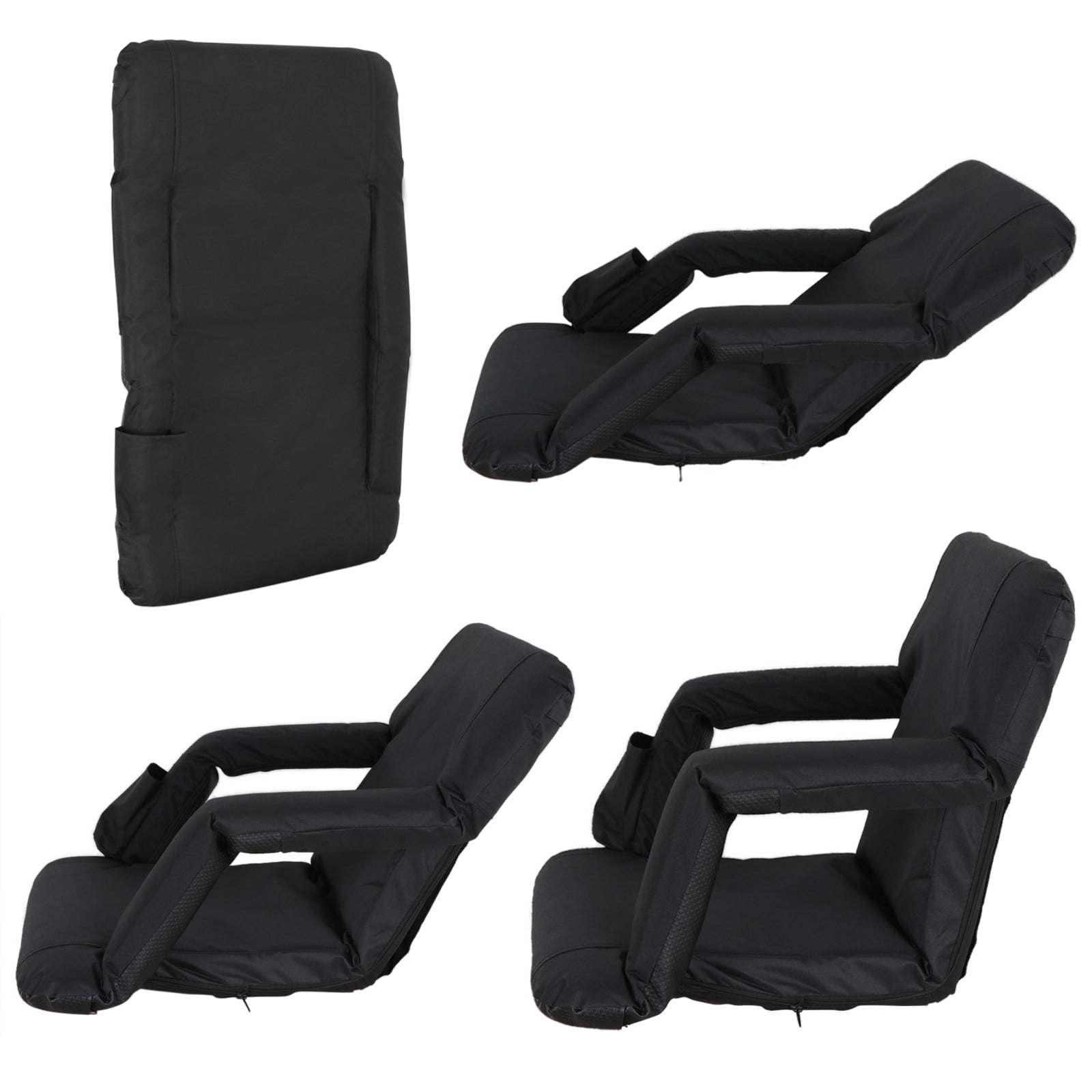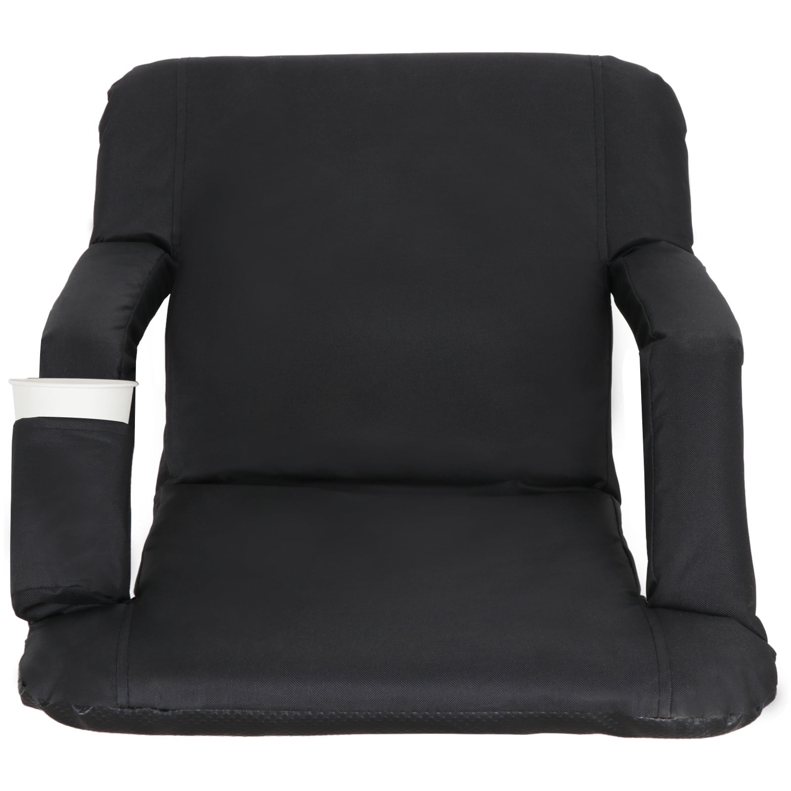Features: 【High Quality, Durable and Comfortable】This portable stadium seat is made with 420D polyester covered cushion with inner cotton stuffing, for comfort at any outdoor event such as a picnic, beach, stadium, park, patio etc. 【5 Reclining Positions】This folding seat will let you rest in style when you have a outdoor picnic, watch the kids running at the sports ground or just make a sunbathing on the beach. 5 tiltable back positions aid in finding the proper angle for any stature. 【Additional Cup Holder】Apart from armrest design, the additional cup give more convenience of drinking. It can adapt to a long time deeply anxious competition. 【Lightweight Portable】Despite sturdy steel frame, its handiness allows you can move it easily. Besides, there is gallus on the back like a backpack. 【Foldable Space Saving】After the game, when you want to store it until the next, this stadium seat can be folded and save more space. Specification: Color: Black Weight: Approx.7.27 lbs Weight Capacity: Up to 280 pounds Item Material: Steel + 420D polyester+cotton+PVC Folded Dimensions: Approx. 33″ x 2″ x 21.2″ Seat Dimensions: Approx. 18.8″ x 15.7″ x 20.4″