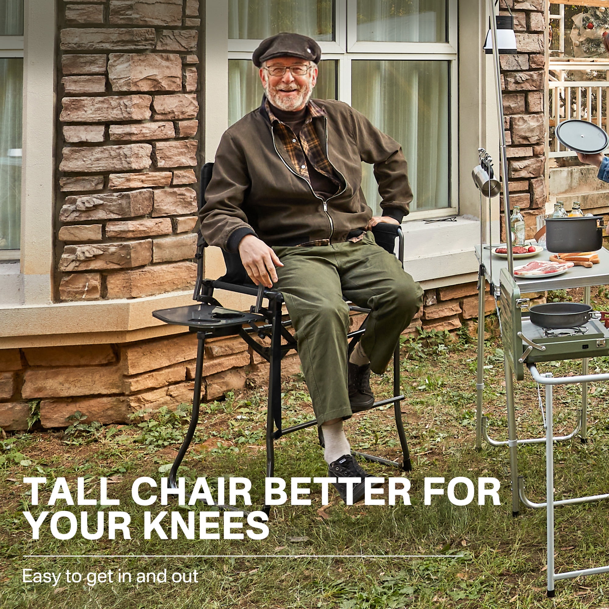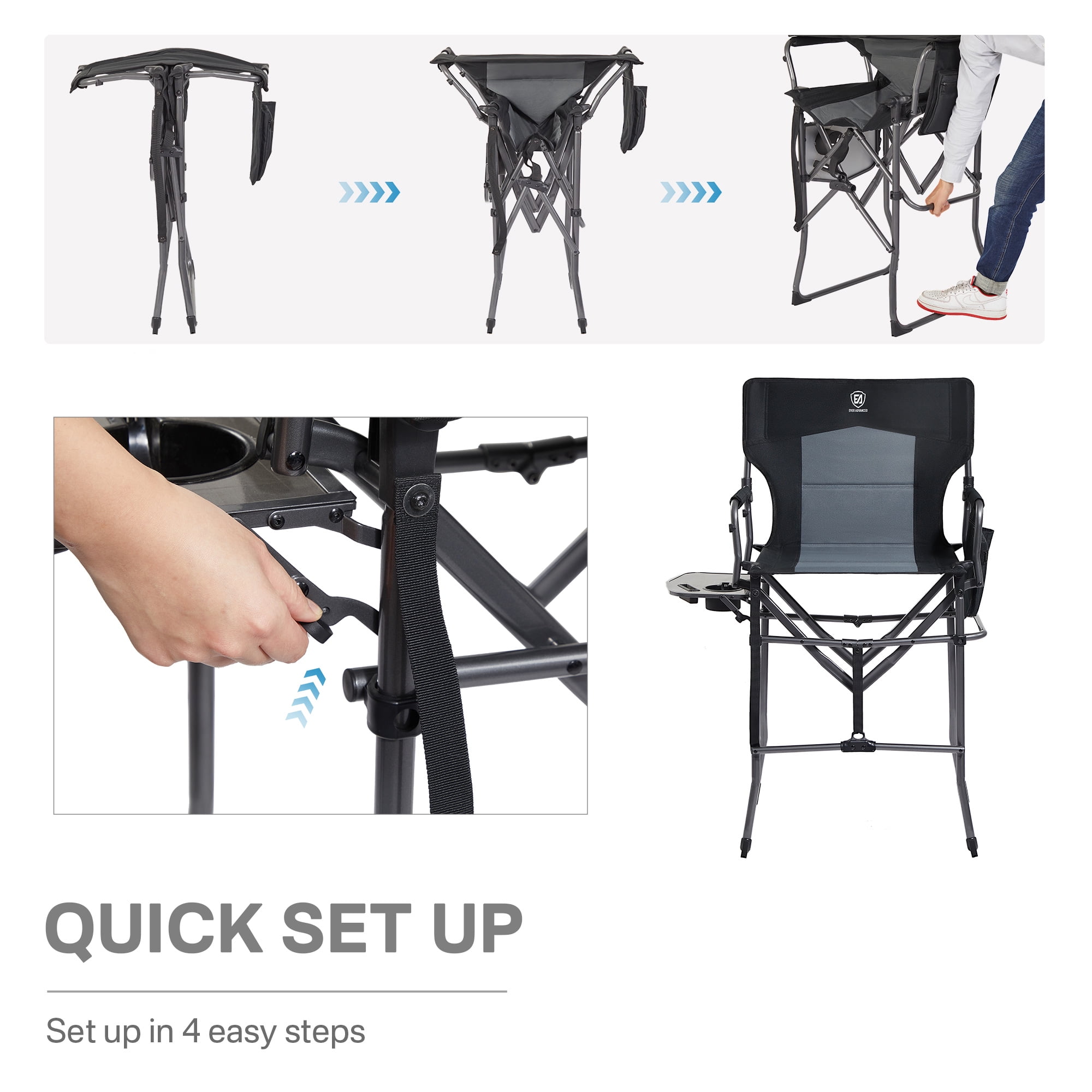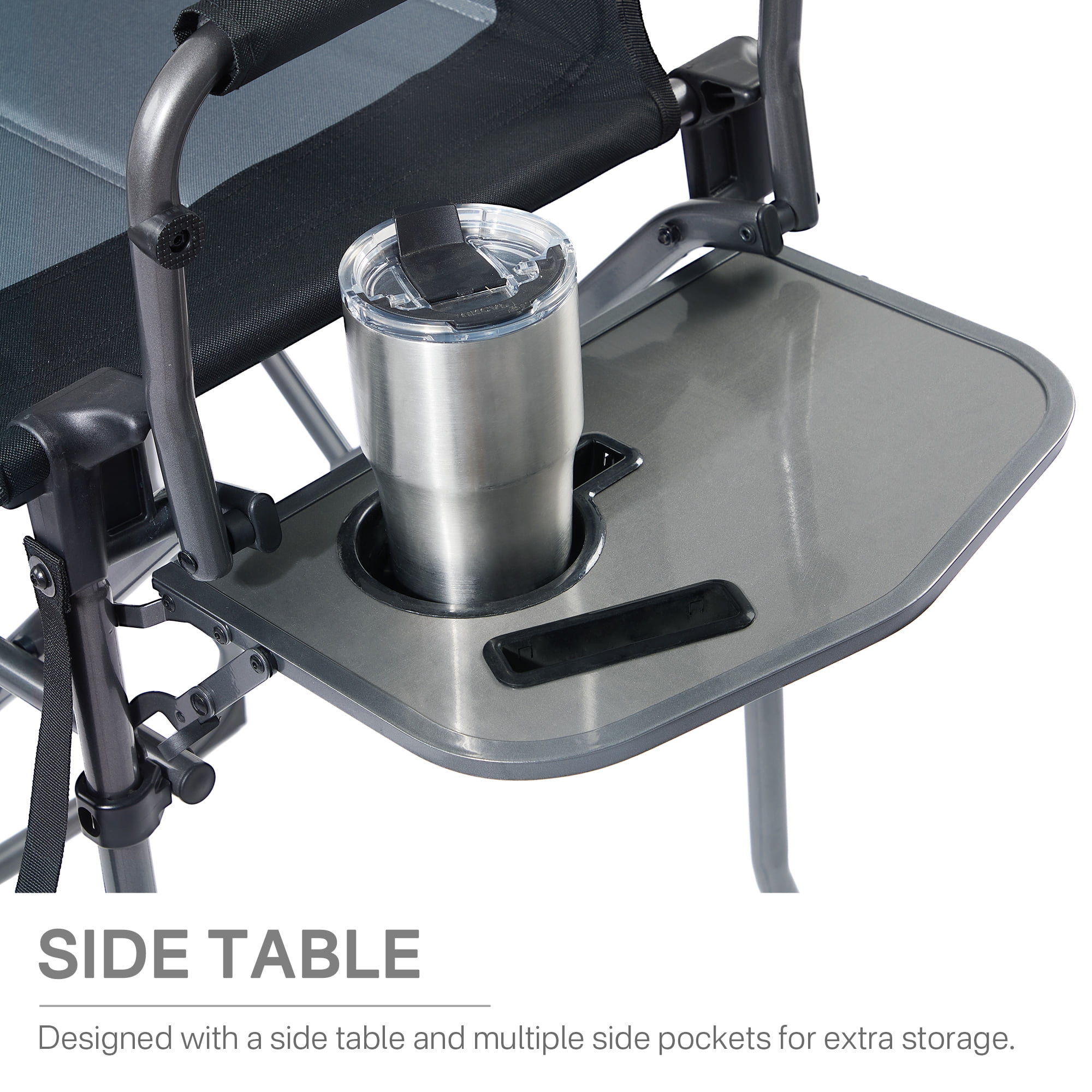 Portable Tall Directors Chair 30.7″ Seat Height, Folding Steel Camping Chair, Supports 350 lbs, Black