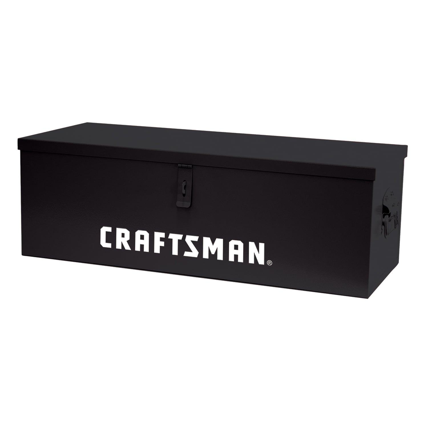 The 30-in Craftsman Utility Box provides convenient and accessible tool storage. Constructed from high-quality steel, this 30-in W x 12-5/8-in D x 8-7/8-in H utility toolbox is built to last. A protective, weather-resistant seal on the lid protects your tools against dust and moisture while the steel hasp provides maximum security and protection for locking your valuables. Designed with portability in mind, the convenient swing-up side handles make this toolbox easy to transport. This durable steel utility box is perfect for storing your tools and equipment in your garage, shed, repair shop and more.