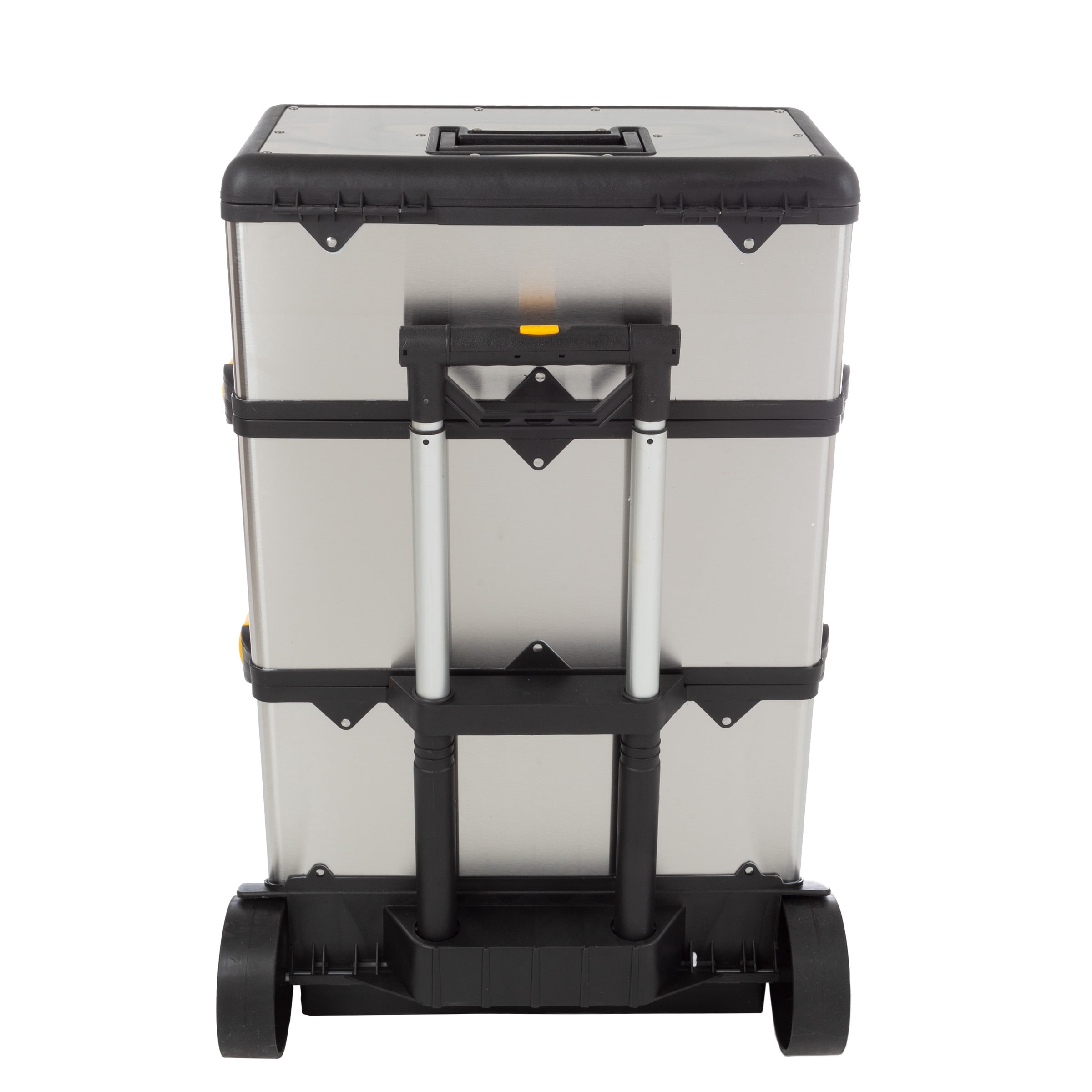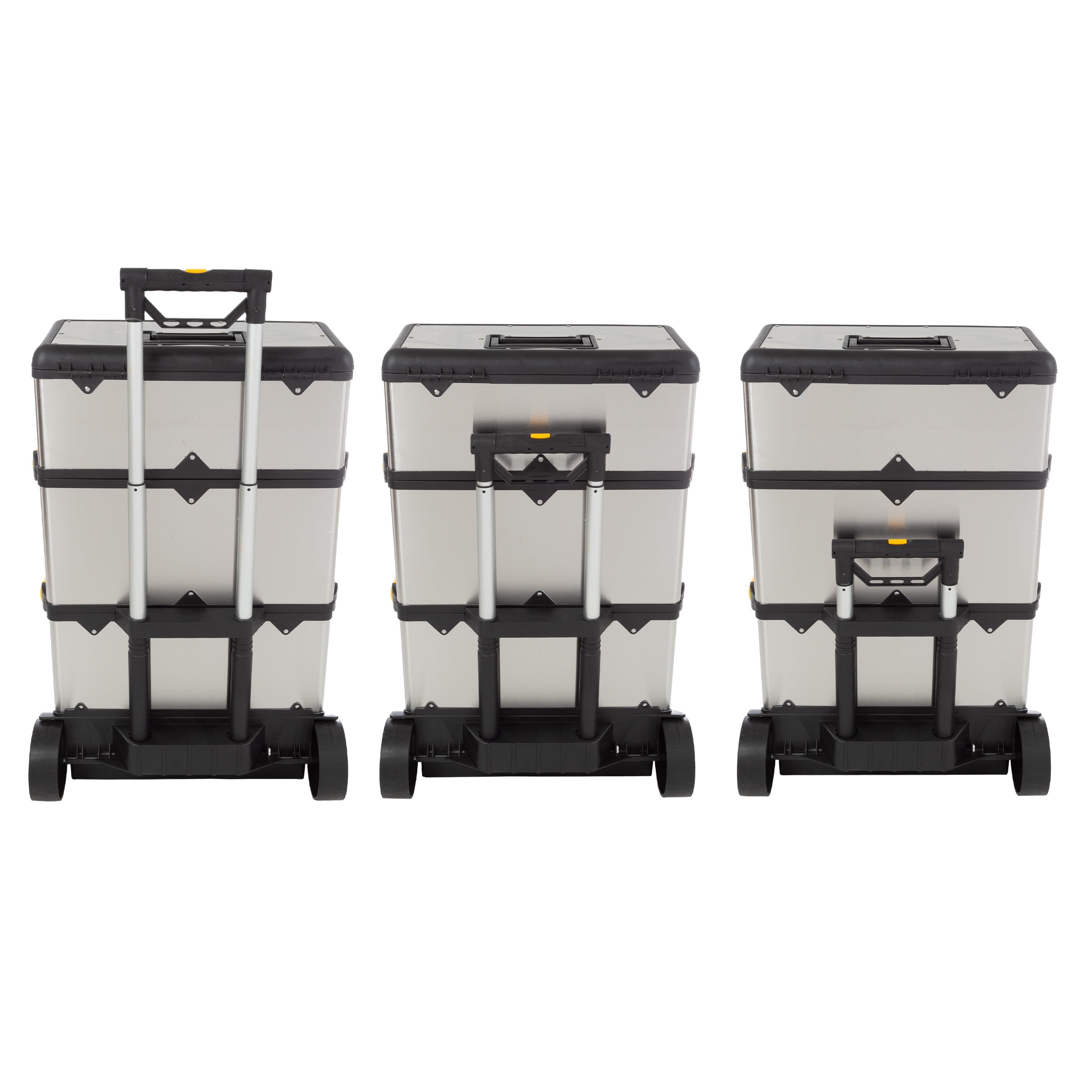 Portable Tool Box with Wheels ? Stainless-Steel Stackable 3-Part Tool Chest ? Extendable Handle and Tough Latches on the Mobile Tool Box by Stalwart