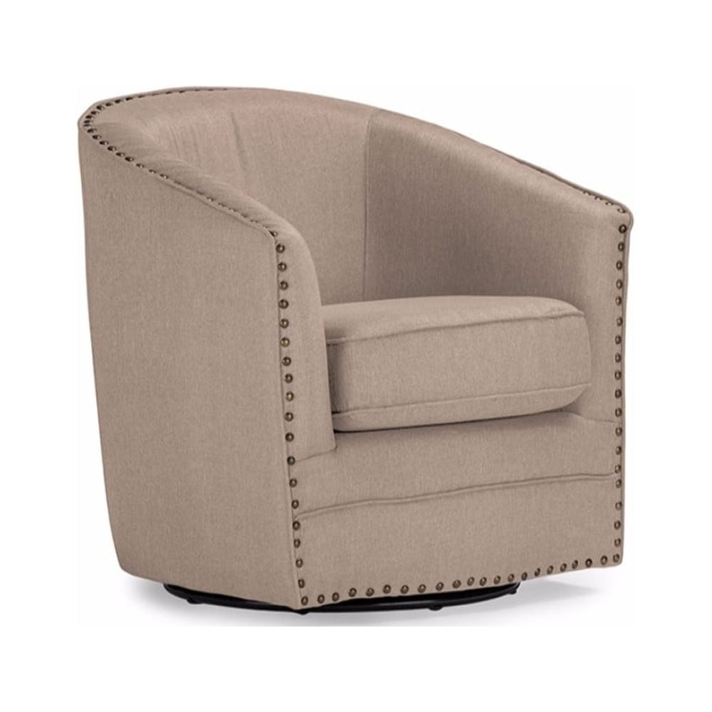Porter Modern and Classic Retro Beige Fabric Upholstered Swivel Tub Chair
