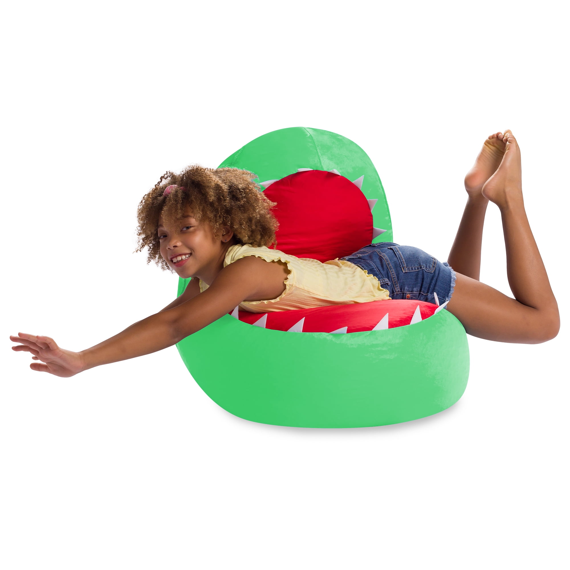 Posh Creations Bean Bag Chair, Soft Shark Lounger for Sitting, Reading,Kids, 2.5 ft,Green