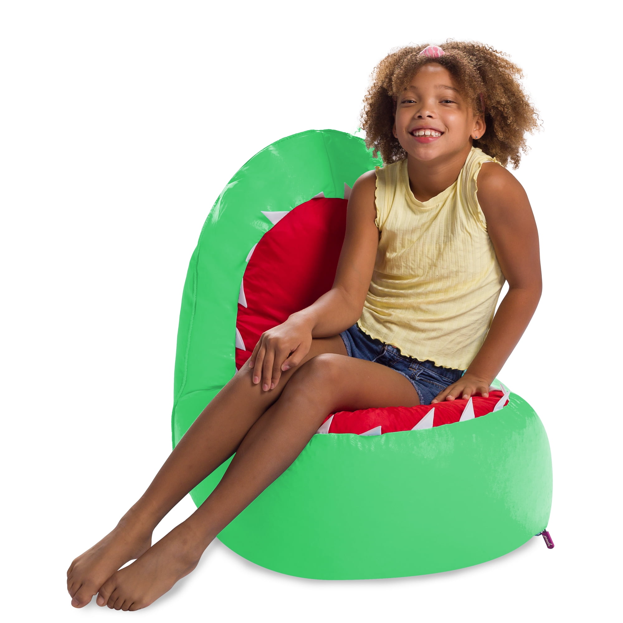 PERFECT BEAN BAG FOR KIDS: Filled with comfy polystyrene beans, this bean bag chair is perfect for kids to sit on to read, watch tv, or play video games. IDEAL SIZE: Our shark-size bean bag chair is a great chair for toddlers and kids who want to have a spot to call their very own. SOFT DURABLE NYLON COVER: Comfy yet strong, this nylon cover is easy to clean and the colors will stay vivid for many items of washing.