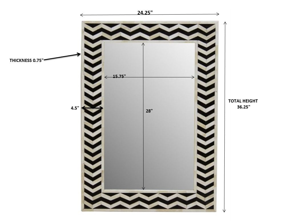 Posh Pollen 15.75″ x 28″ Wall Mirror Trim is made of white and black done, 4’5 wide. Mirror measures 15.75″ W x 28″ H Mooting accessories included Ideal for an entry way or bathroom Ideal for an entry way or bathroom