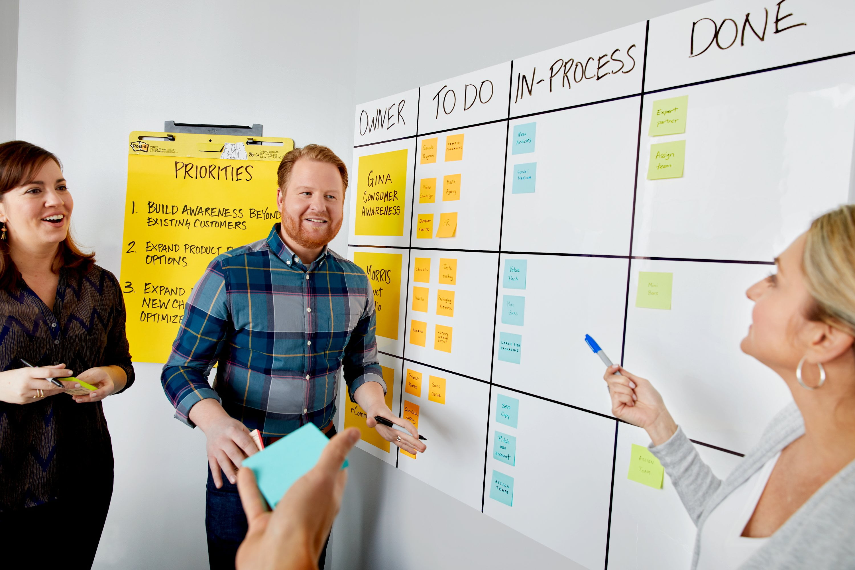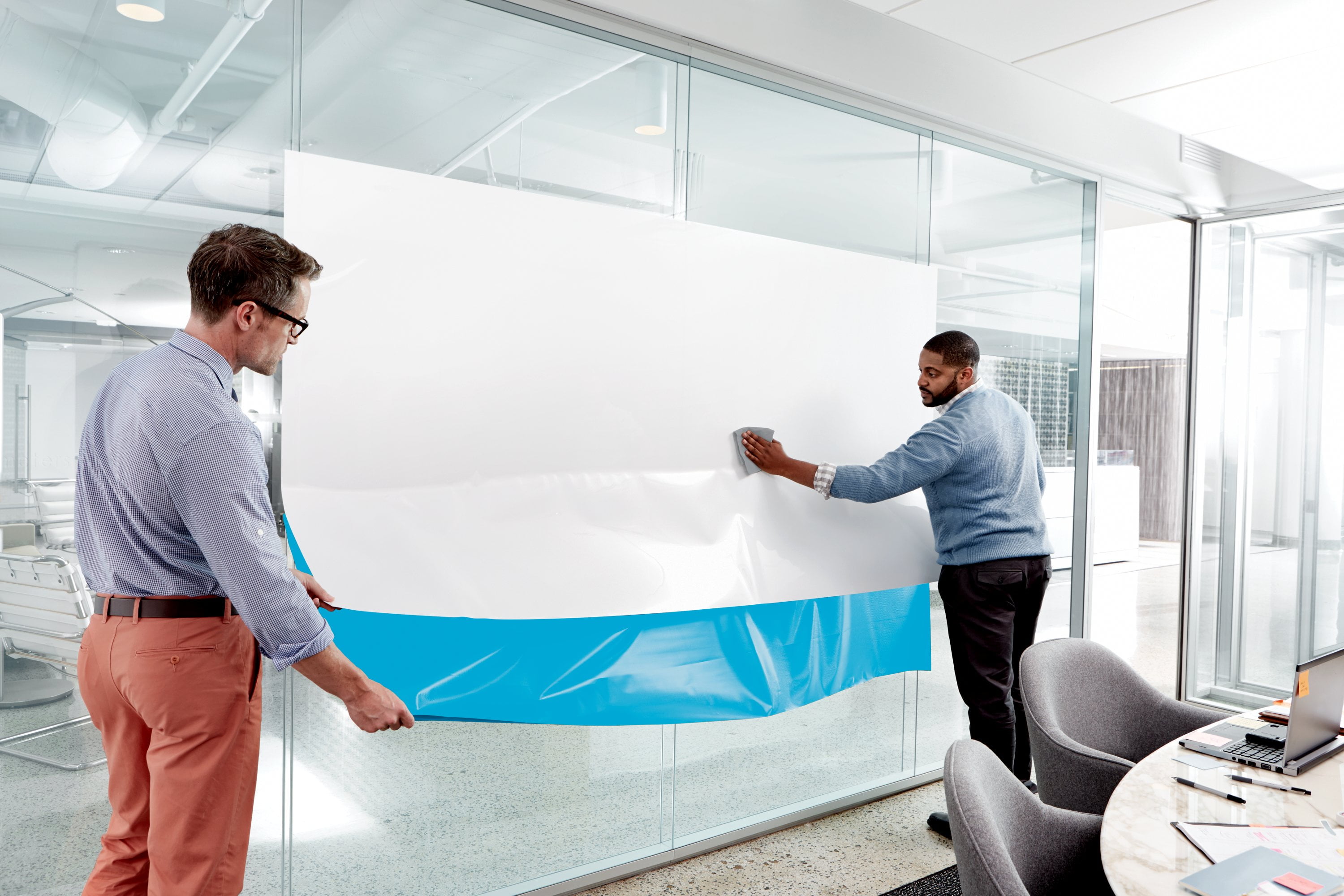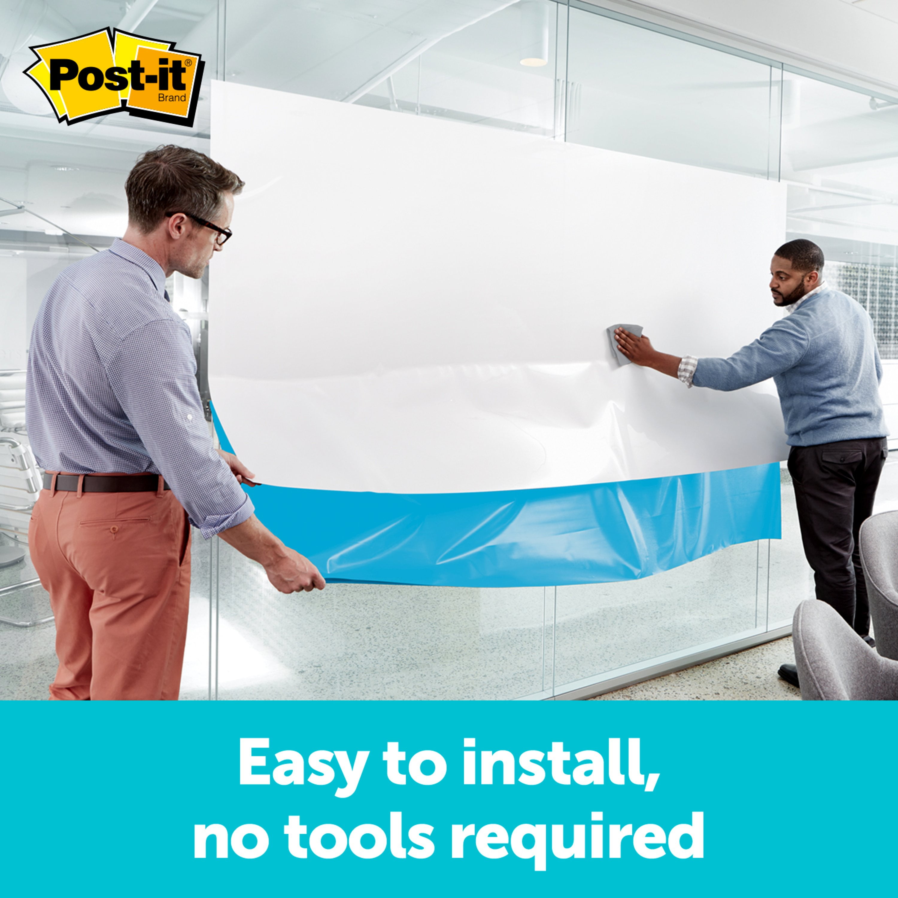 It’s an amazing feeling when your team just clicks—everyone feels a shared drive toward success. Capture that feeling at your next meeting with Post-it® Dry Erase Surface. This flexible dry erase whiteboard transforms walls and other surfaces into a whiteboard. The surface is stain free and allows your team to be creative and share ideas, again and again, without ghosting. Post-it® Dry Erase Surface is easy to install and requires no tools – just unroll, peel and stick. Transform walls, replace a blackboard or stained whiteboard into a fresh dry erase surface. Use with Post-it® Super Sticky Notes to organize ideas. Whenever you want to brainstorm, present or track projects, Post-it® Brand is ready to help you succeed.