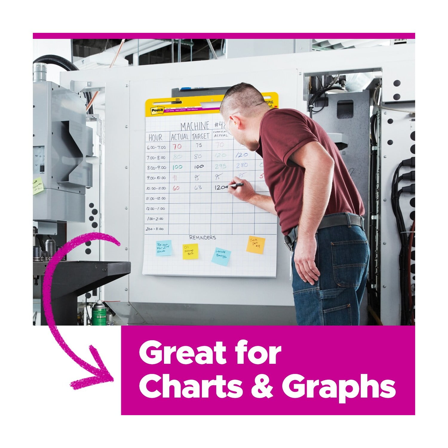 STICKS SECURELY AND HOLDS UP TO 2X LONGER – Easel paper can be repositioned without surface damage. No tape or tacks needed unlike standard flip chart paper. Keep agenda and ideas where everyone can see INK BLEED-THROUGH RESISTANT PAPER – Large white grid lined premium self-stick flip chart paper that resists marker bleed-through to keep great ideas on the page, not on what’s under the page IDEAL FOR MAPPING PROCESSES AND CHARTS – Perfect for training or teaching sessions, brainstorming sessions, planning sessions, project management and agile processes, meetings and presentations DOWNLOAD THE FREE POST-IT® APP – Whether you’re working or learning remotely, the Post-it® App is the perfect way to capture and share ideas, keep track of assignments, or create colorful calendars with your friends. Share across multiple platforms including Dropbox, Trello®, PowerPoint®, or synced across your devices LARGE WHITE GRID LINED PAPER – 25 in. x 30 in., 30 Sheets/Pad, 4 Pad/Pack DESIGNED TO FIT MANY EASEL STANDS – Sturdy backcard has a handle to make the easel pad portable and slots to fit most easel stands. Perfect for student activities and training sessions USE WITH POST-IT® SUPER STICKY NOTES – The large, stickable paper to capture thoughts with Post-it® Super Sticky Notes. Give ideas a place to grow EXPLORE OPTIONS – Post-it® Super Sticky Easel Pads are also available with Lines, Bright Yellow, and White Recycled Paper EXPLORE SIZES – Post-it® Super Sticky Easel Pads also available in more sizes – Mini Easel Pad, Tabletop Pad and Wall Pad
