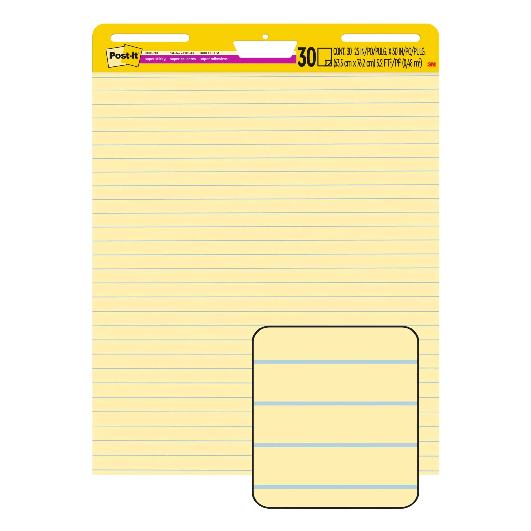 Post-it Super Sticky Easel Pad, Yellow, Lined, 25 in. x 30 in., 4 Pads