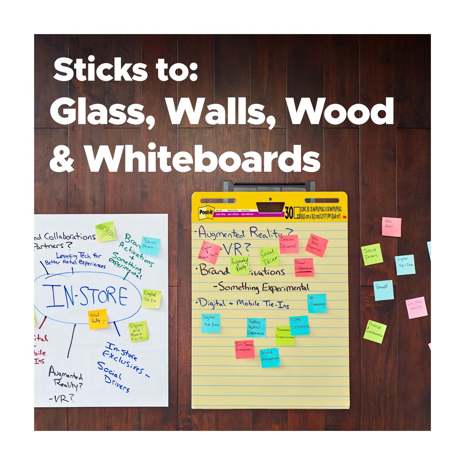 STICKS SECURELY AND HOLDS UP TO 2X LONGER – Easel paper can be repositioned without surface damage. No tape or tacks needed unlike standard flip chart paper. Keep agenda and ideas where everyone can see INK BLEED-THROUGH RESISTANT PAPER – Large yellow lined premium self-stick flip chart paper that resists marker bleed-through to keep great ideas on the page, not on what’s under the page IDEAL FOR BRAINSTORMING AND MANAGING PROJECTS – Perfect for training or teaching sessions, brainstorming sessions, planning sessions, project management and agile processes, meetings and presentations DOWNLOAD THE FREE POST-IT® APP – Whether you’re working or learning remotely, the Post-it® App is the perfect way to capture and share ideas, keep track of assignments, or create colorful calendars with your friends. Share across multiple platforms including Dropbox, Trello®, PowerPoint®, or synced across your devices LARGE YELLOW PREMIUM PAPER – 25 in. x 30 in., 30 Sheets/Pad, 4 Pad/Pack DESIGNED TO FIT MANY EASEL STANDS – Sturdy backcard has a handle to make the easel pad portable and slots to fit most easel stands. Perfect for student activities and training sessions USE WITH POST-IT® SUPER STICKY NOTES – The large, stickable paper to capture thoughts with Post-it® Super Sticky Notes. Give ideas a place to grow EXPLORE OPTIONS – Post-it® Super Sticky Easel Pads are also available with Grid Lines, Lines, Bright Yellow, and White Recycled Paper EXPLORE SIZES – Post-it® Super Sticky Easel Pads also available in more sizes – Mini Easel Pad, Tabletop Pad and Wall Pad