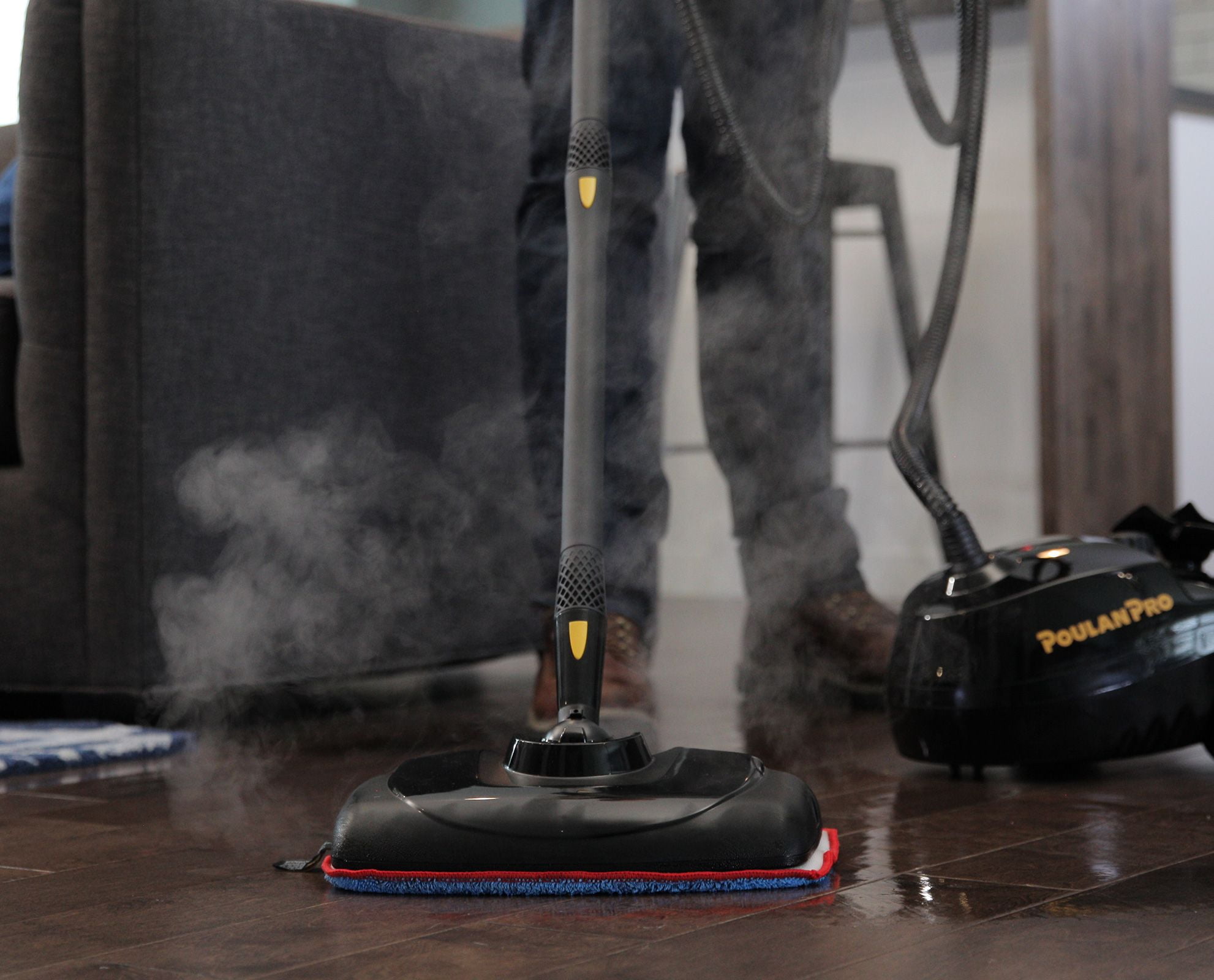 The Poulan Pro PP330 Multi-Purpose Steam Cleaner is a heavy-duty solution for those who are serious about steam cleaning. With professional steam power and a versatile array of attachments, the Multi-Purpose Steam Cleaner is designed for tackling the toughest jobs throughout your home. The versatile PP330 even handles floors with the included steam mop attachments and two microfiber pads that are safe for all sealed flooring surfaces including wood, tile, and laminate. An extra-large capacity tank provides 45 minutes of continuous steam. From shower doors to children’s toys, countertops and barbecue grills, there’s no job too big, or too small, for the Multi-Purpose Steam Cleaner.