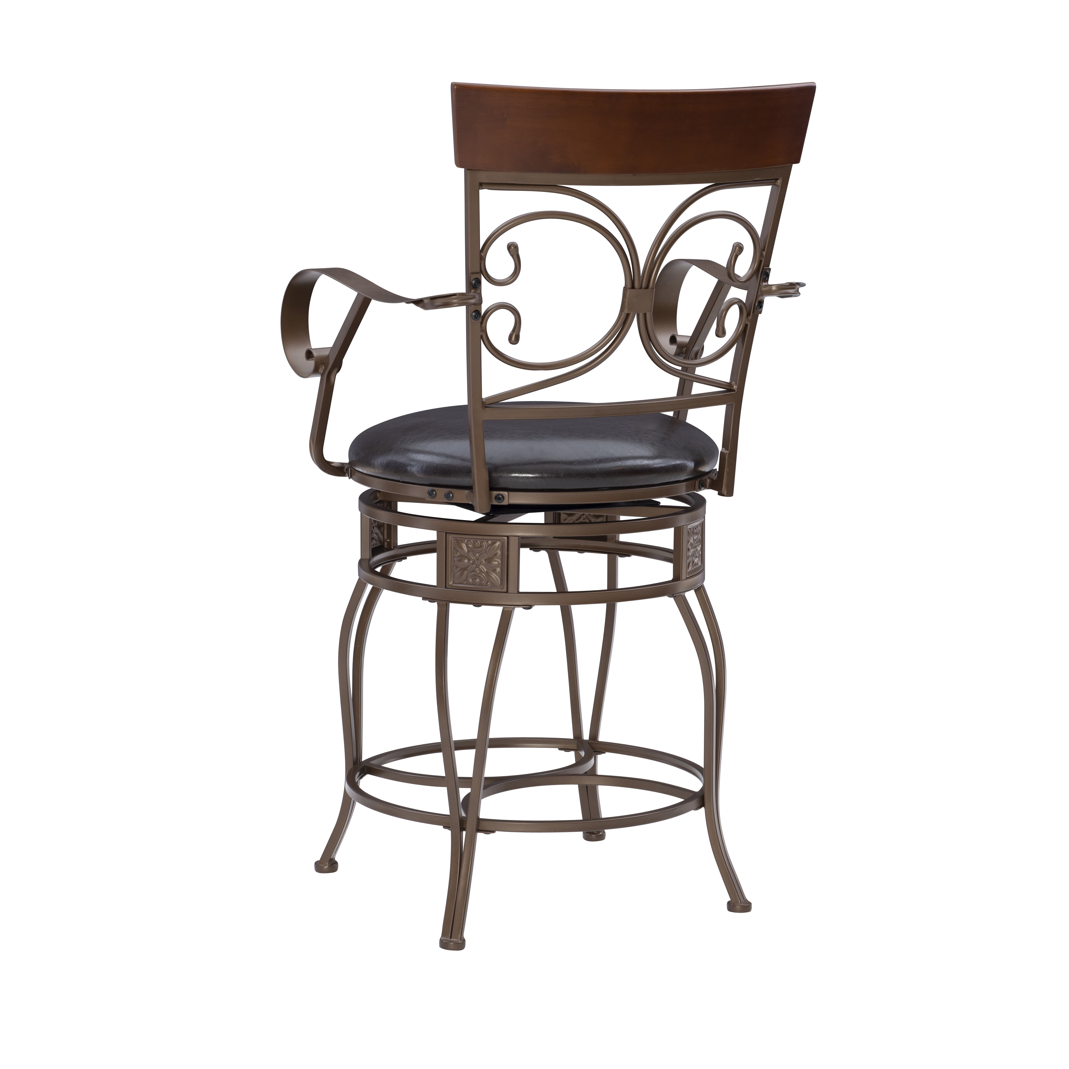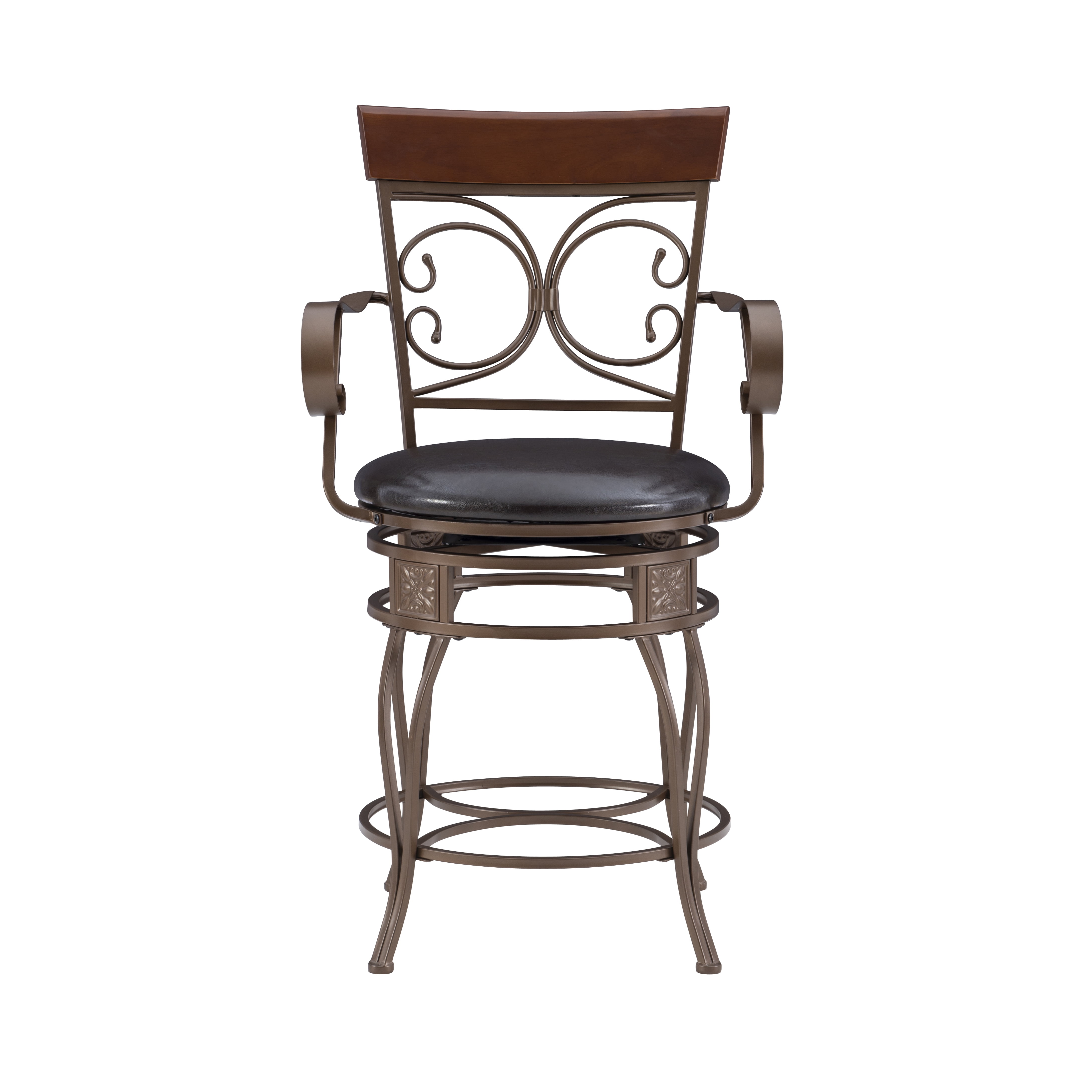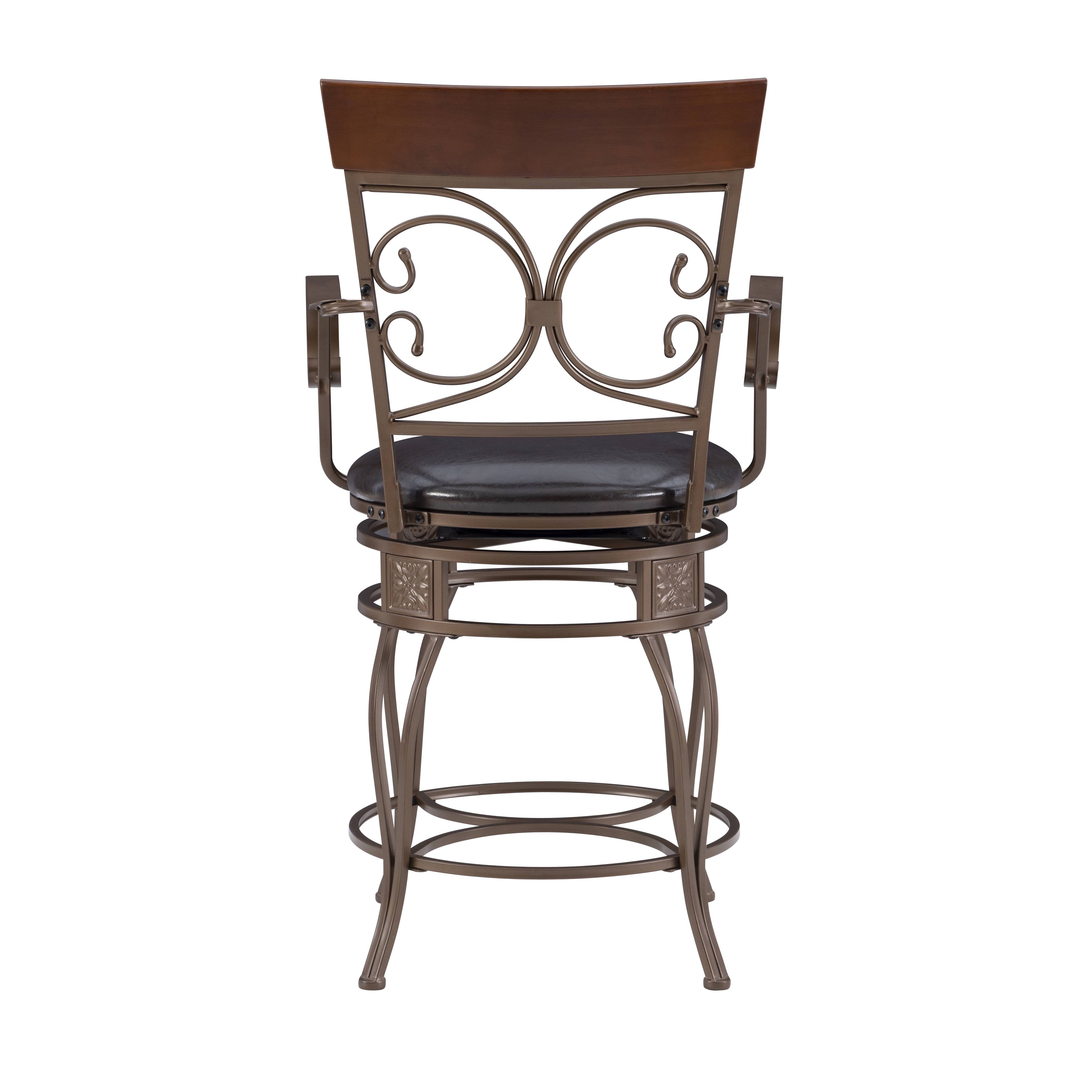 Powell Big & Tall 24″ Indoor Metal Ornate Swivel Counter Stool with Arms, Bronze/Dark Brown Faux Leather