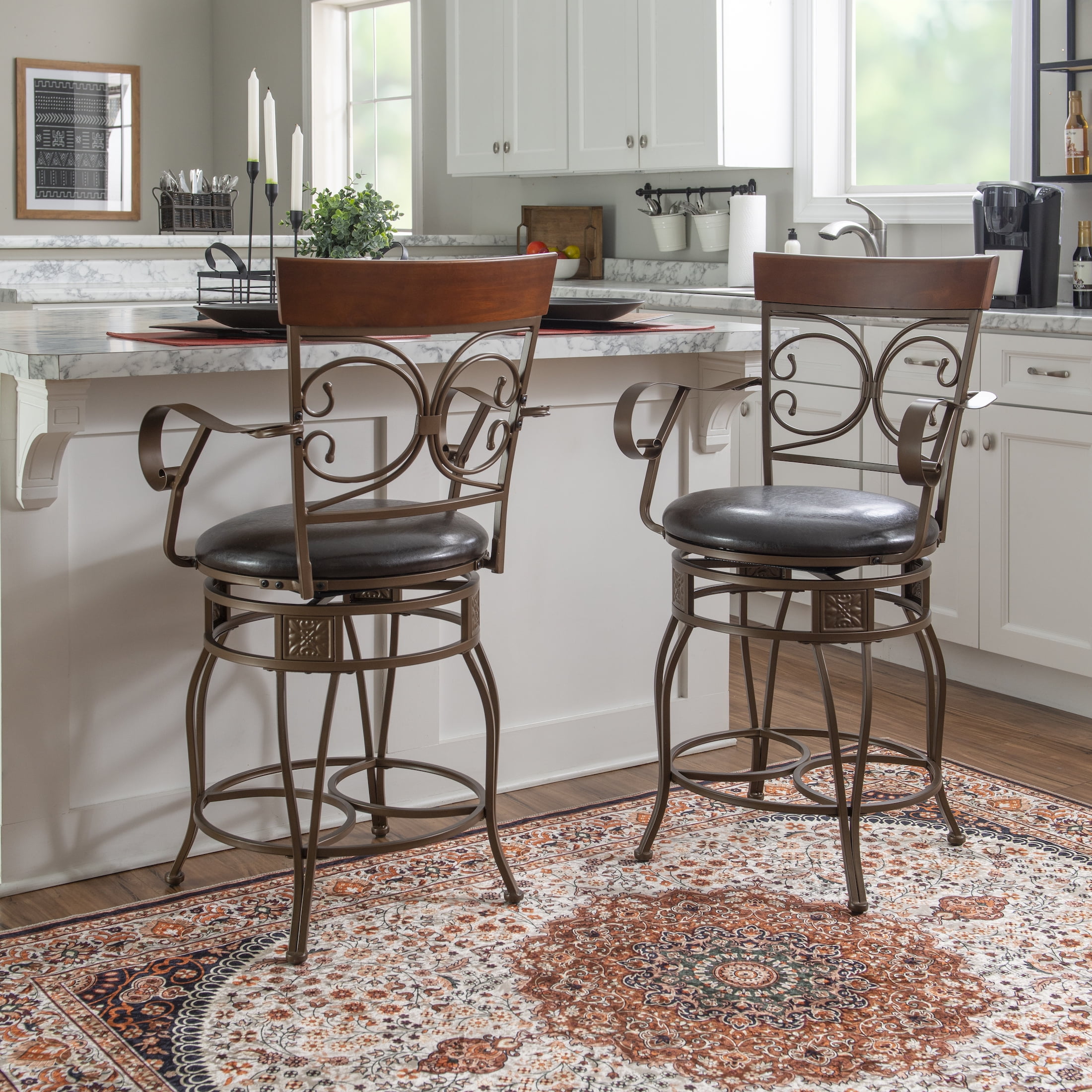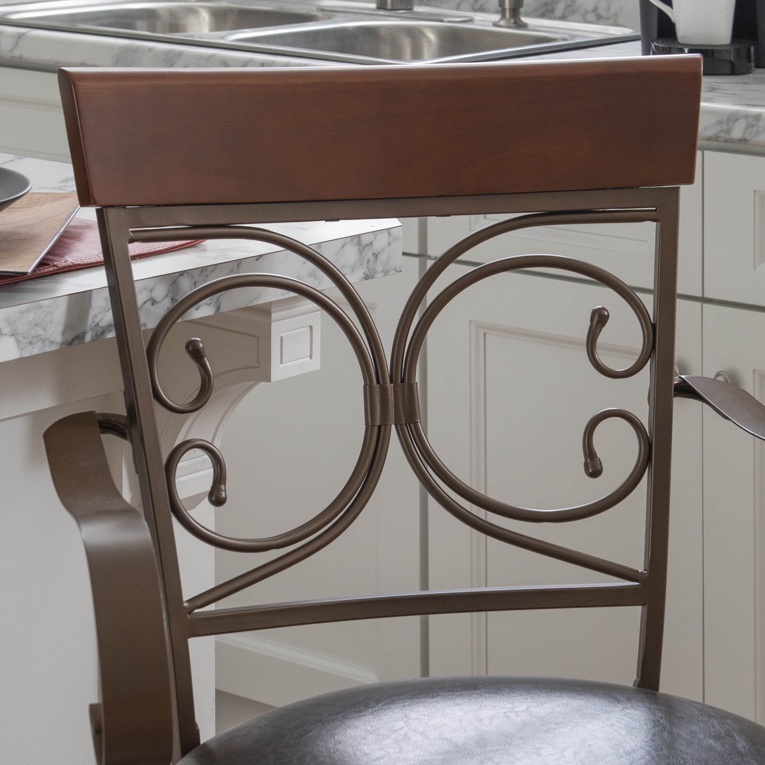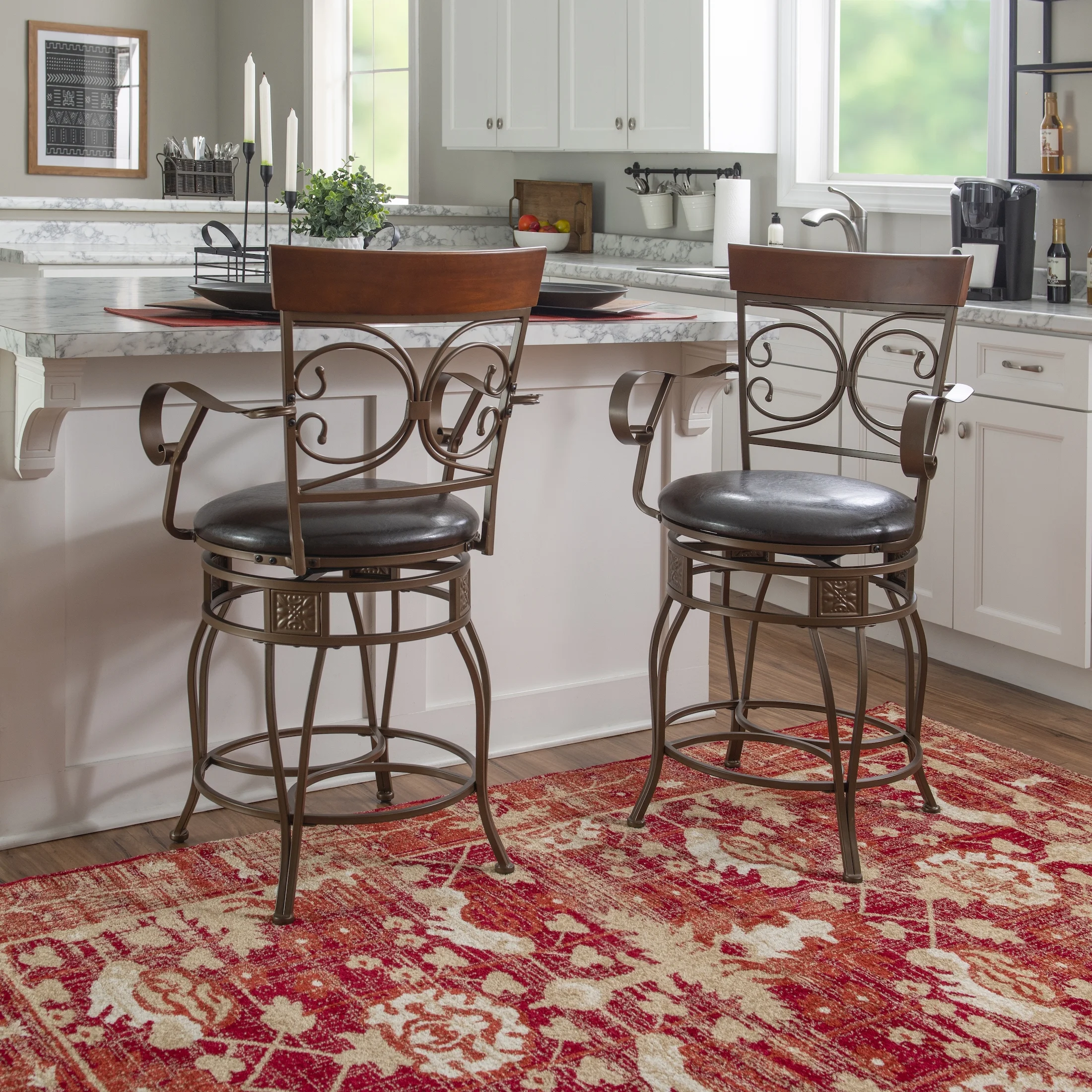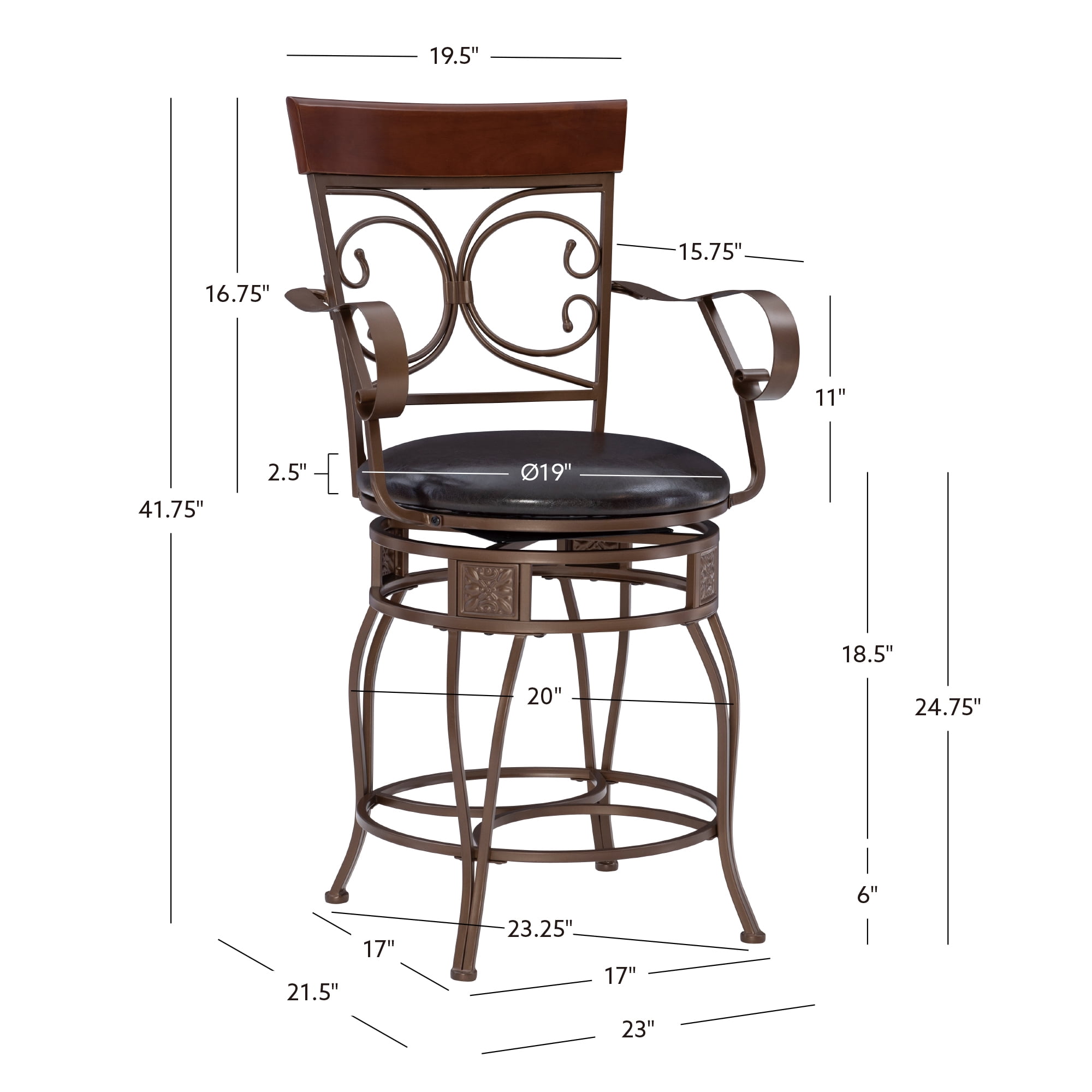 Powell Big & Tall 24″ Indoor Metal Ornate Swivel Counter Stool with Arms, Bronze/Dark Brown Faux Leather