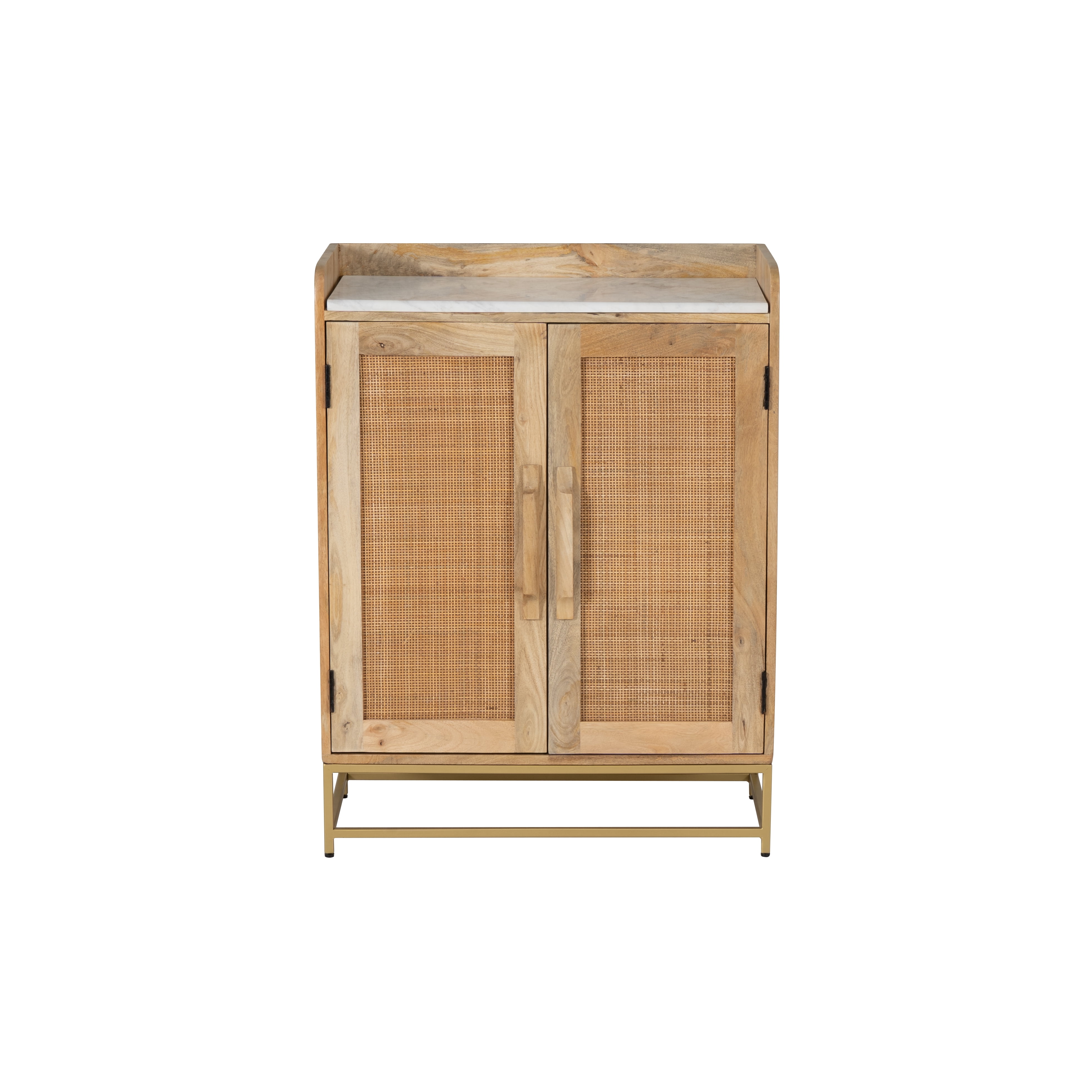 Powell Blair Rattan Bar Cabinet with Marble Top, Natural