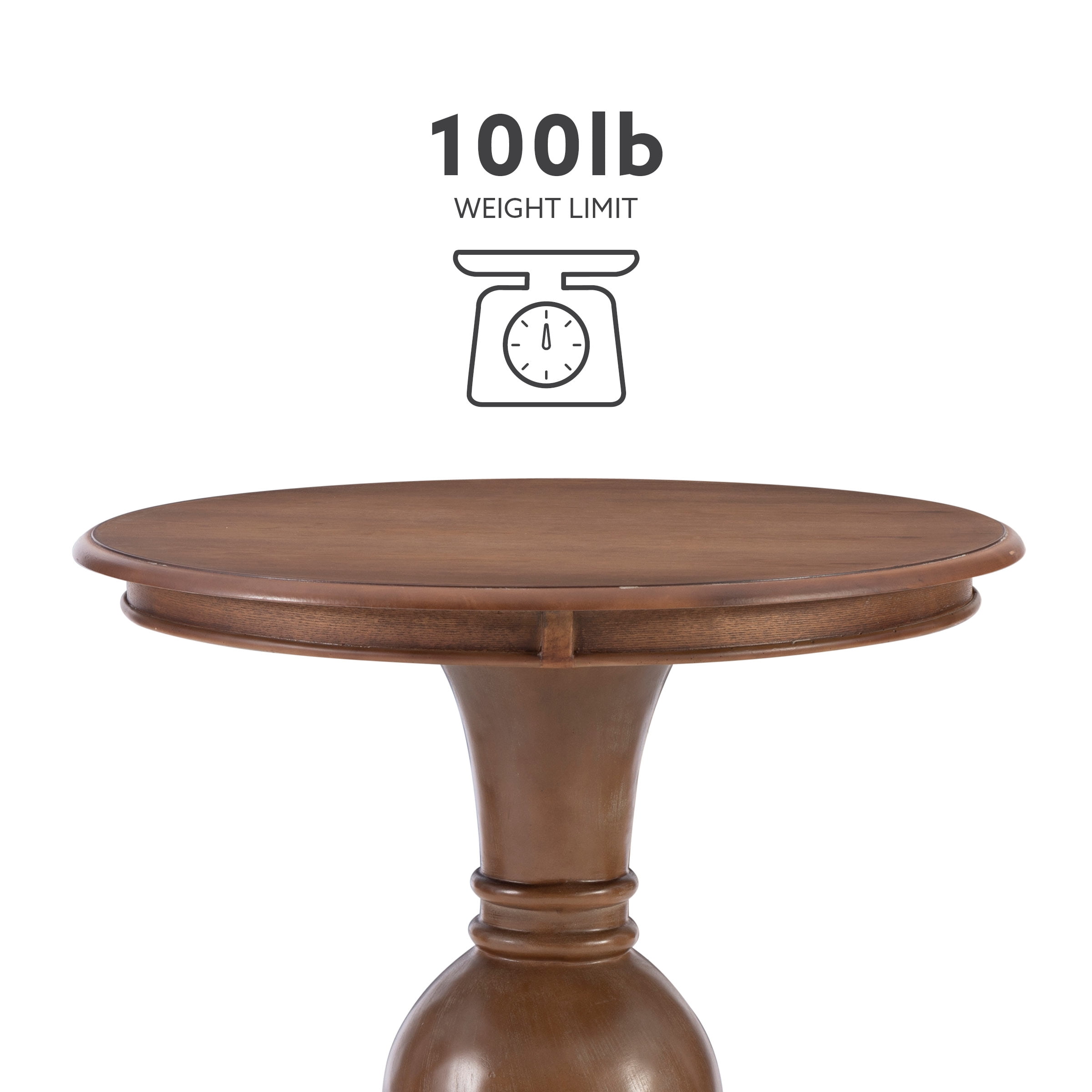 Stepped Base And Turned Pedestal Offer A Timeless And Sophisticated Look 26In Table Height And Circumference Make For A Compact Design That Fits Perfectly Next To A Couch Or Set Of Chairs Natural Finish Lends Itself To A Rustic Charm Ideal For Use In Your Living Room As An Extra Surface In Your Bathroom Or As Additional Table Space Wherever You Like To Entertain Supports Up To 100 Lbs Some Assembly Required Assembled Dimensions: 26 L x 26 D x 26 H Ships in 1 box