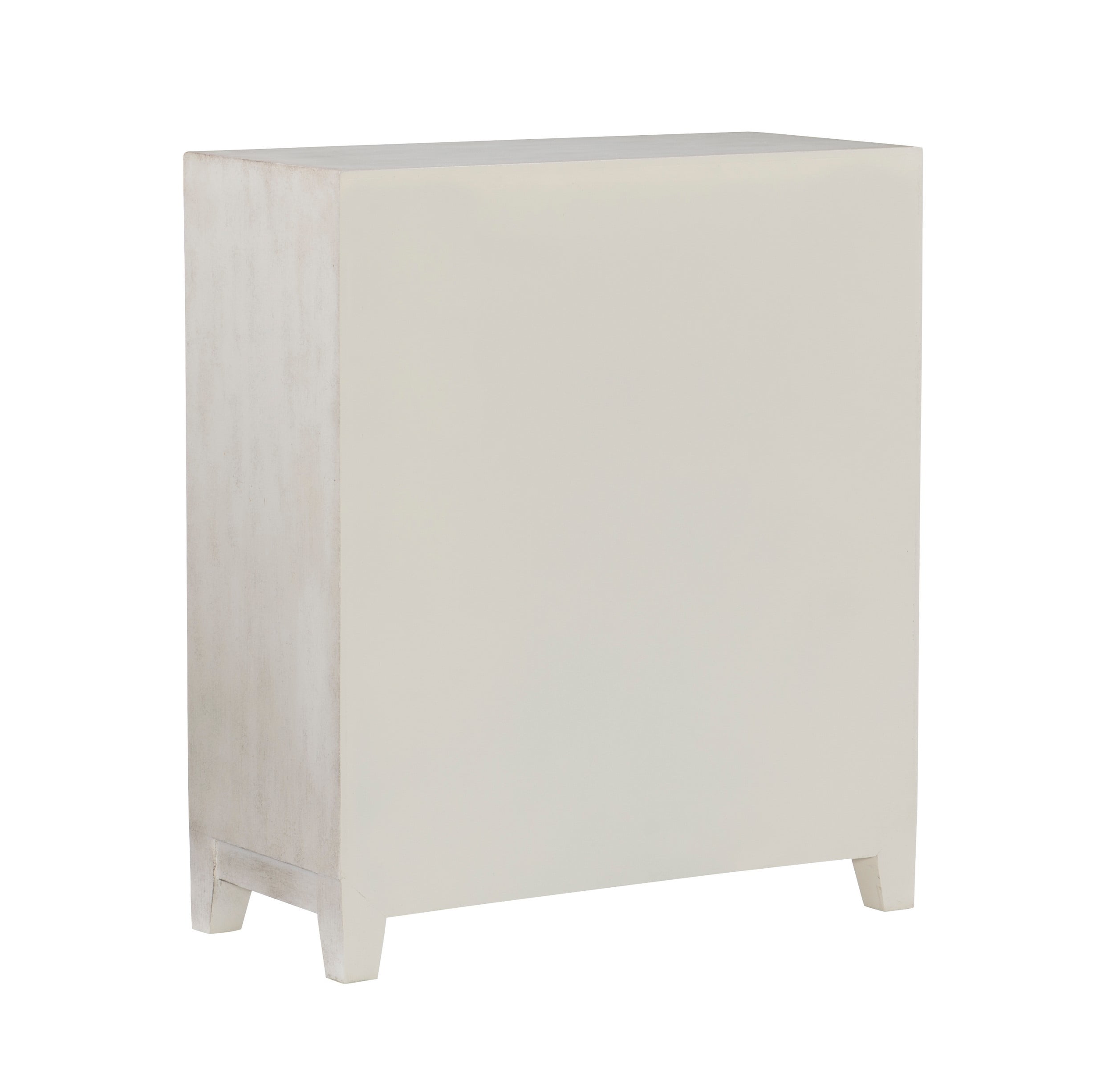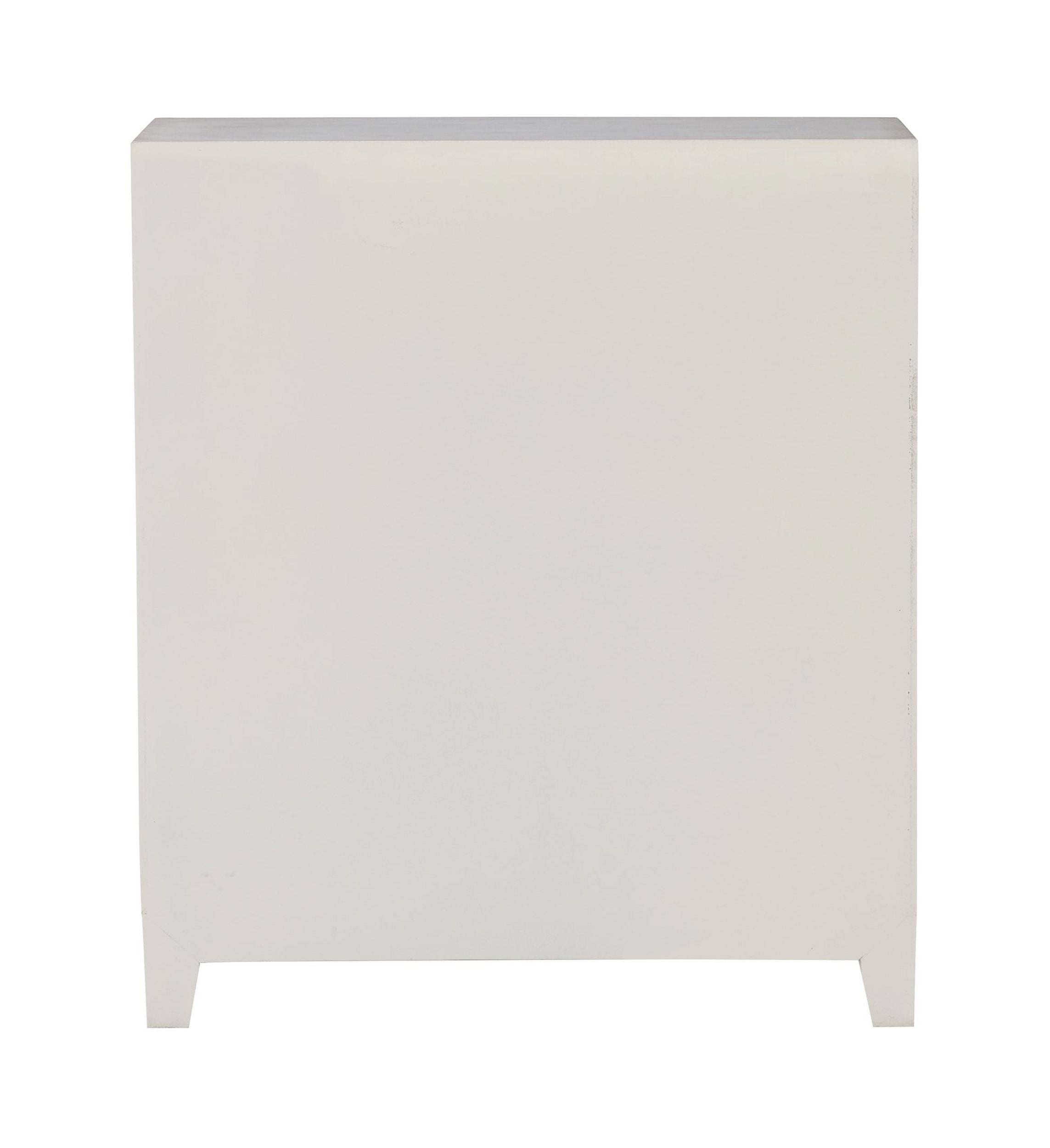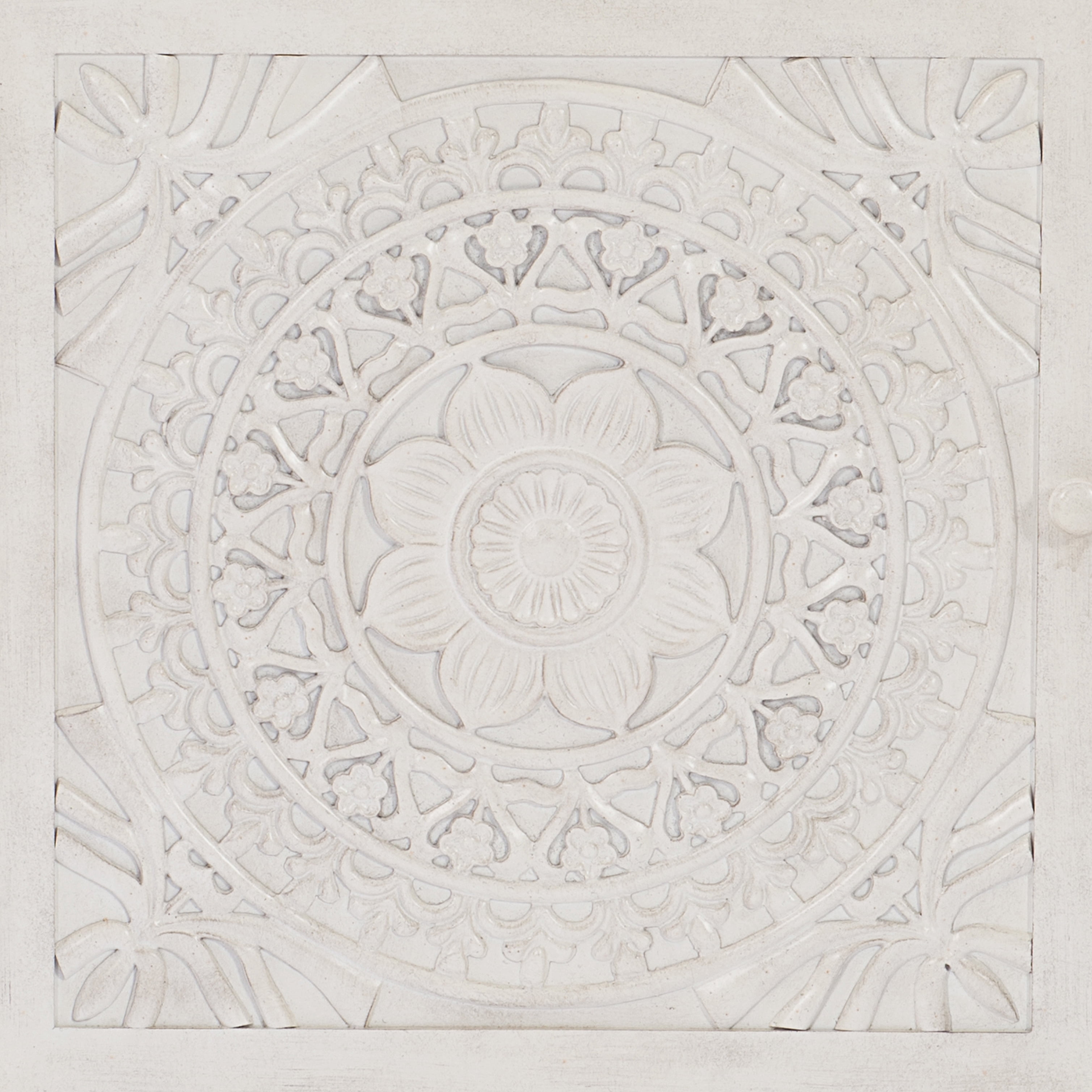 With a modern rustic look, this cabinet is the perfect décor choice for any room in your home. The smokey white antiqued finish highlights the resin medallion front of the cabinet door. The piece opens to one fixed interior shelf for storage and organization. The round wooden knob and short, straight legs bring finishing touches to this sophisticated piece. Features: Crafted from MDF and Resin Smokey White Multi-Step Antiqued Finish Features a resin medallion design on door front Has a fixed shelf inside Door features a magnetic touch latch to open and close Slimline design Shelf dimensions: 11.5″H x 23.5″W x 10.0″D Specifications: Assembly Required: Fully Assembled Product Dimensions: 25.5″w x 11.5″d x 29.25″h Product Weight: 37.26 lbs
