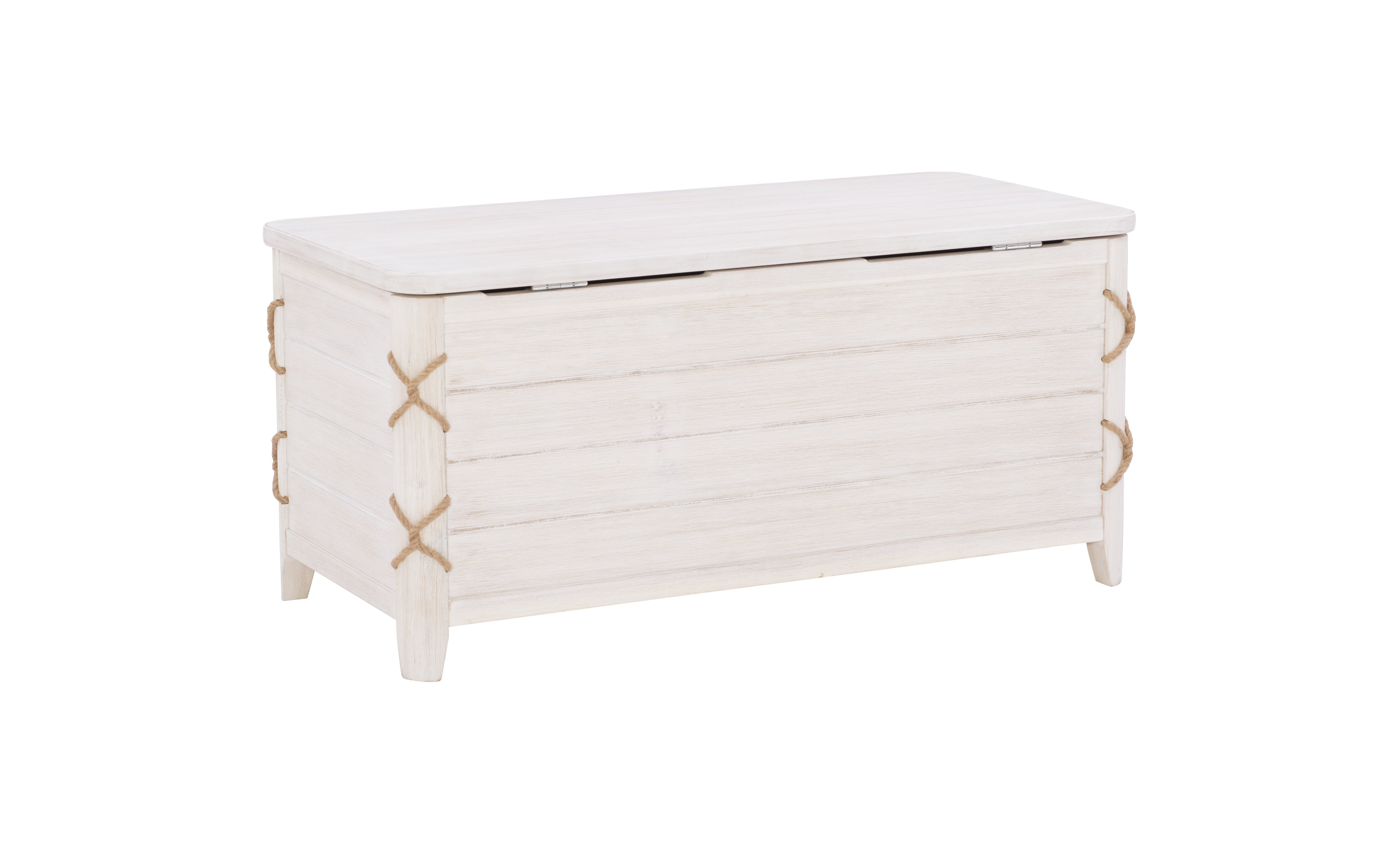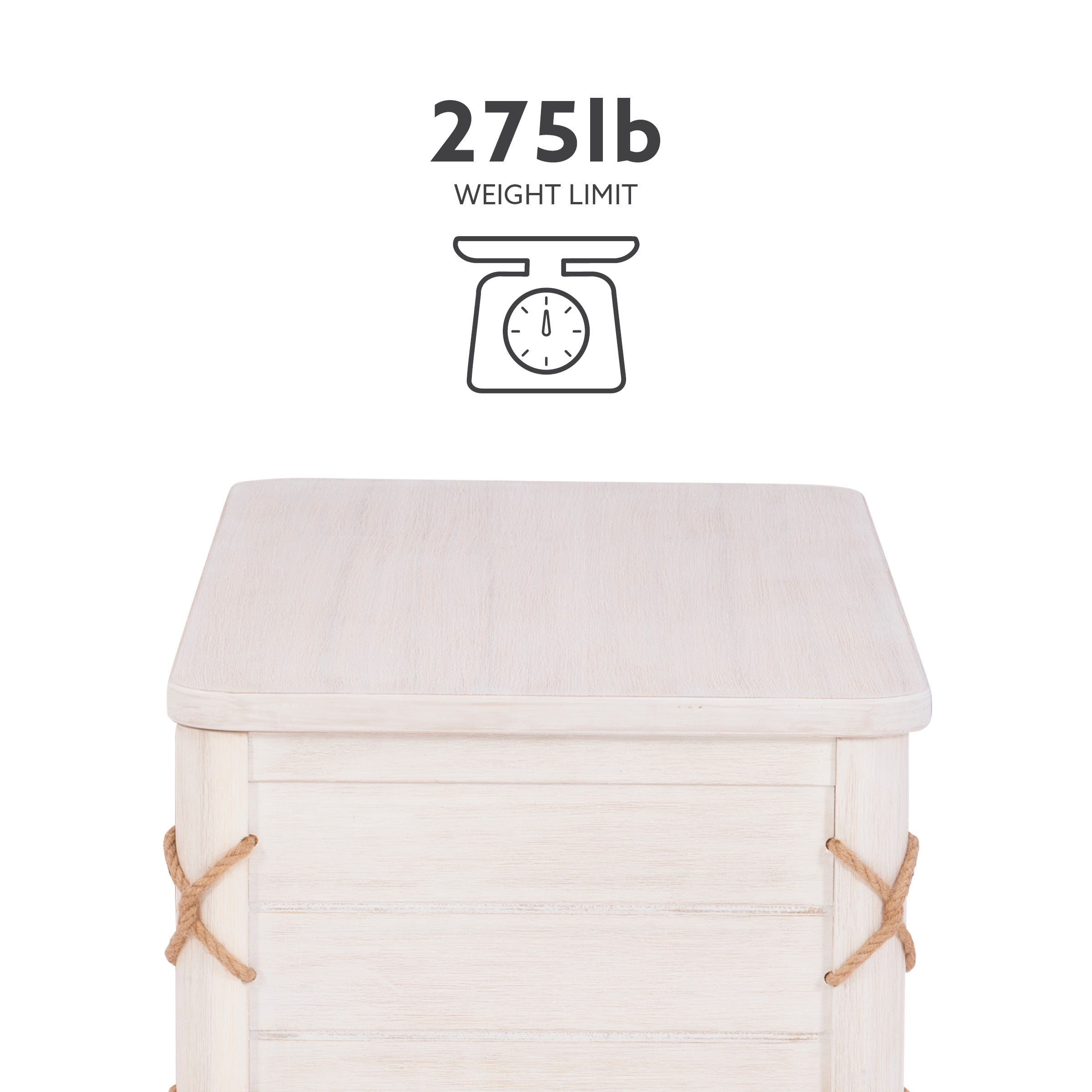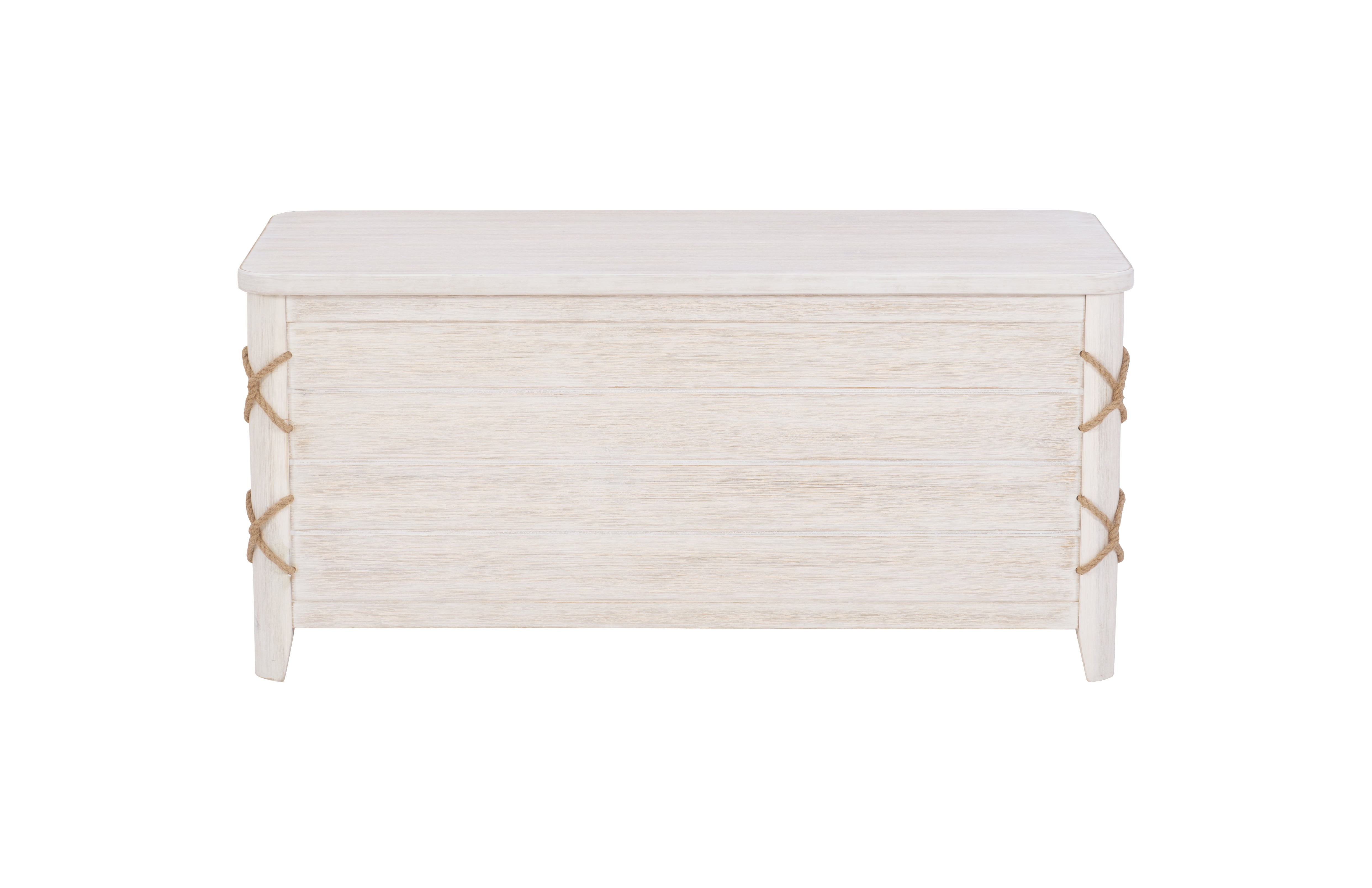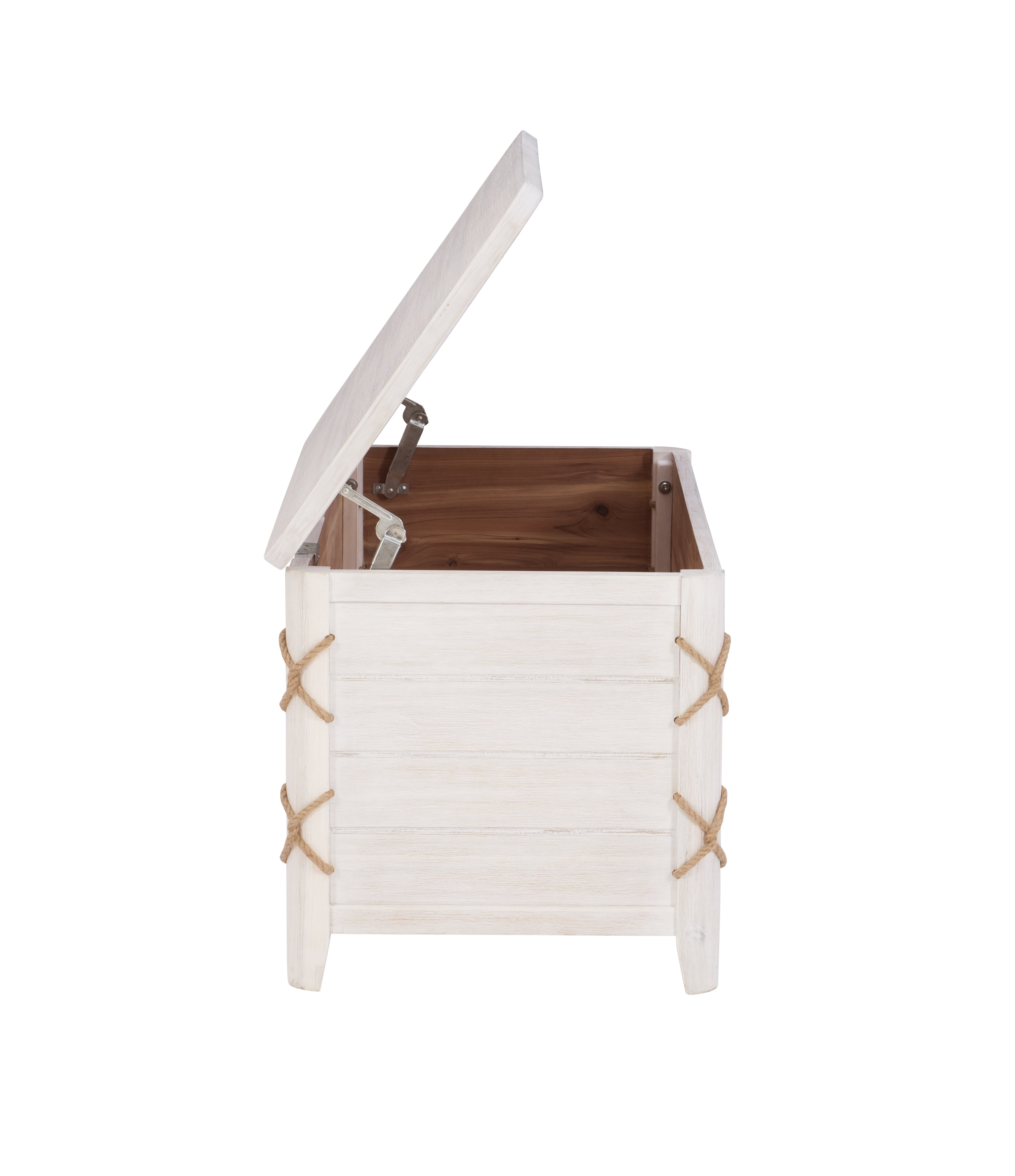 Whether you need space to store linens at the foot of the bed or a coffee table to round out your traditional living ensemble, this rope cedar chest is the perfect piece. Painted in a beachy white finish, paneled details and genuine rope trim add interest to this piece. Anchored by safety hinges, the top lifts to reveal ample storage space lined in cedar to keep your items smelling fresh for years. Supporting up to 275 pounds, this chest doubles as an extra seat.