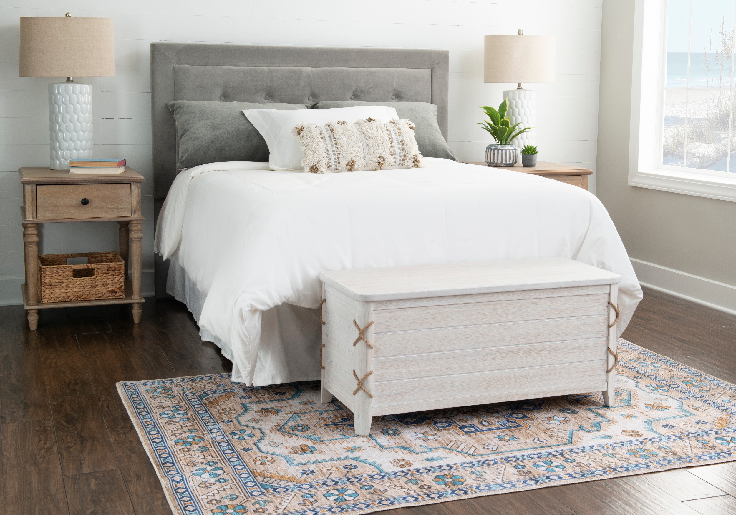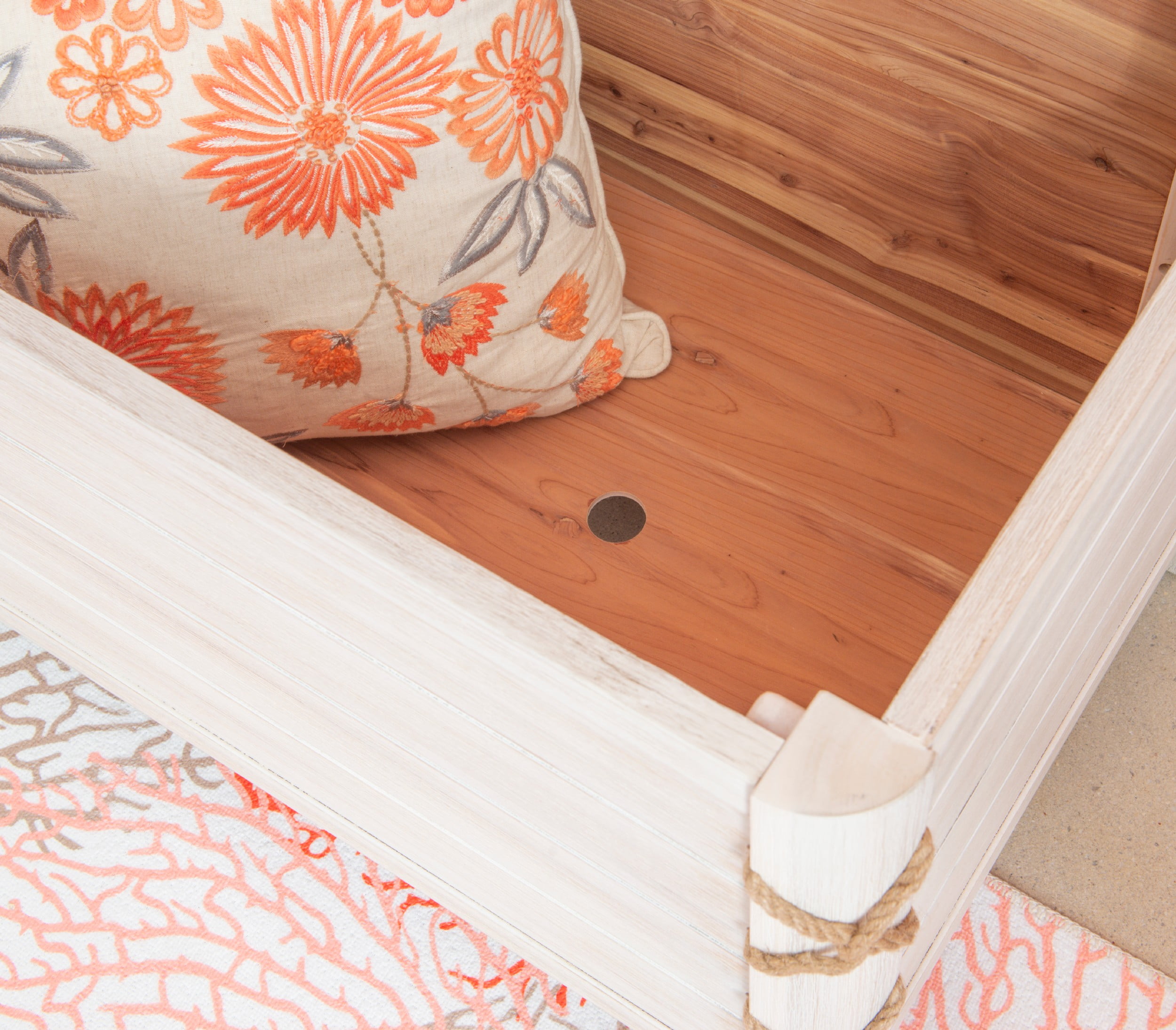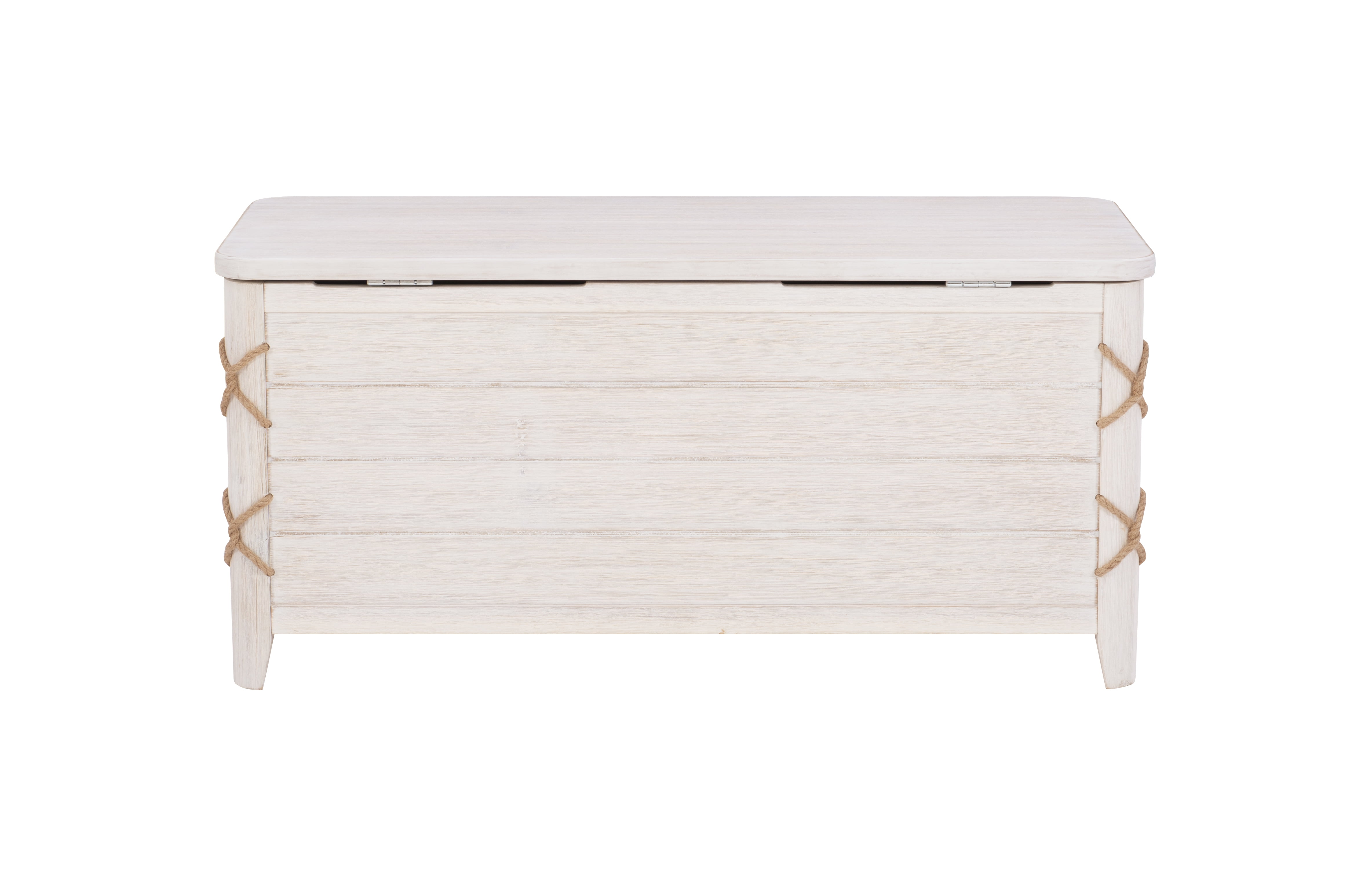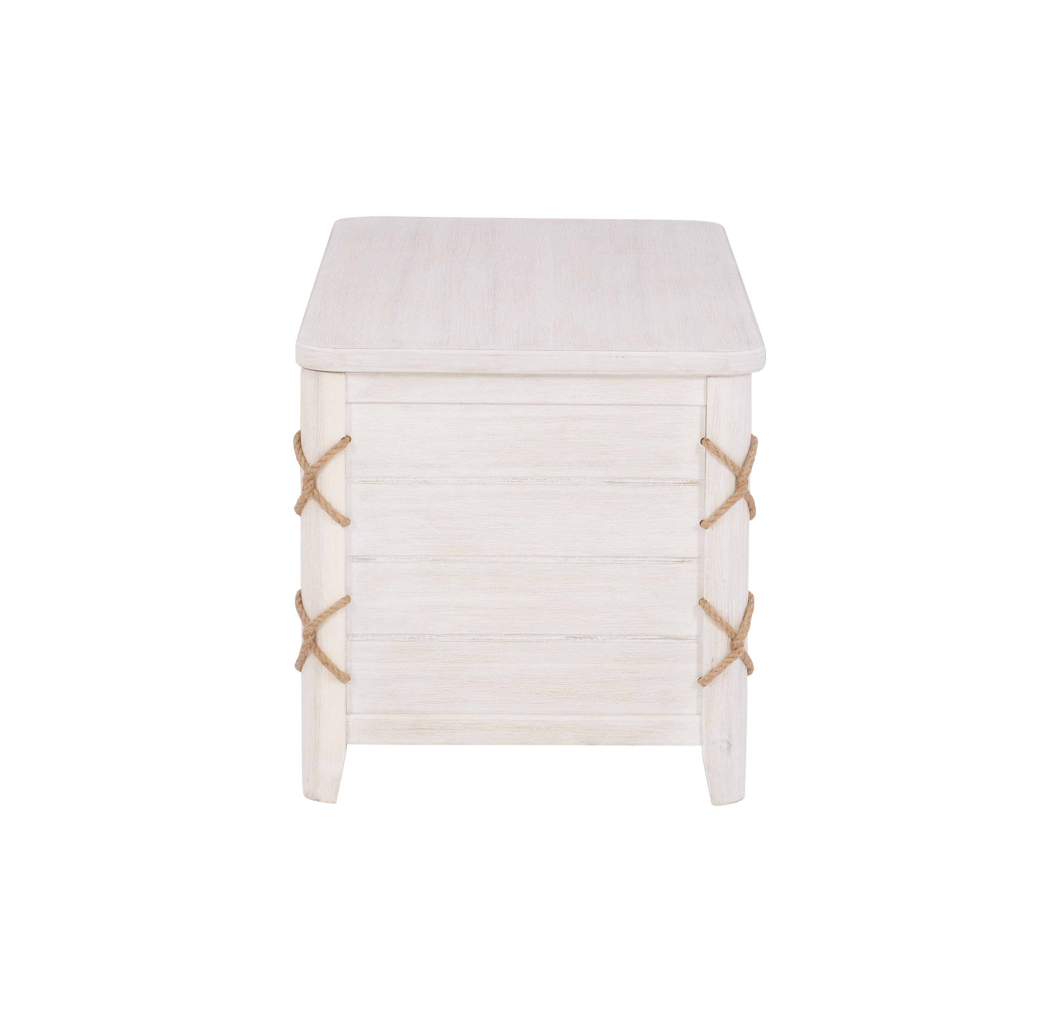 Whether you need space to store linens at the foot of the bed or a coffee table to round out your traditional living ensemble, this rope cedar chest is the perfect piece. Painted in a beachy white finish, paneled details and genuine rope trim add interest to this piece. Anchored by safety hinges, the top lifts to reveal ample storage space lined in cedar to keep your items smelling fresh for years. Supporting up to 275 pounds, this chest doubles as an extra seat.