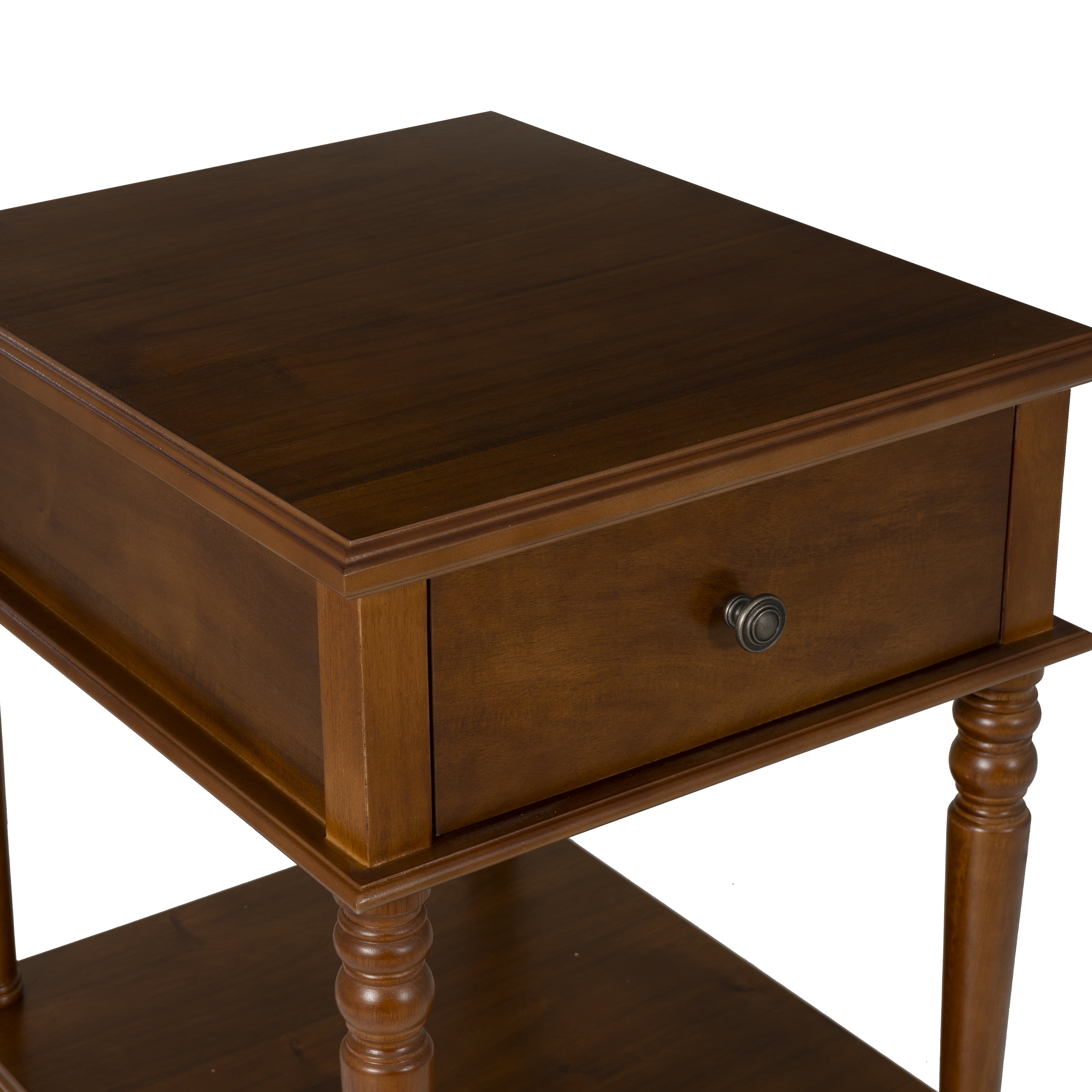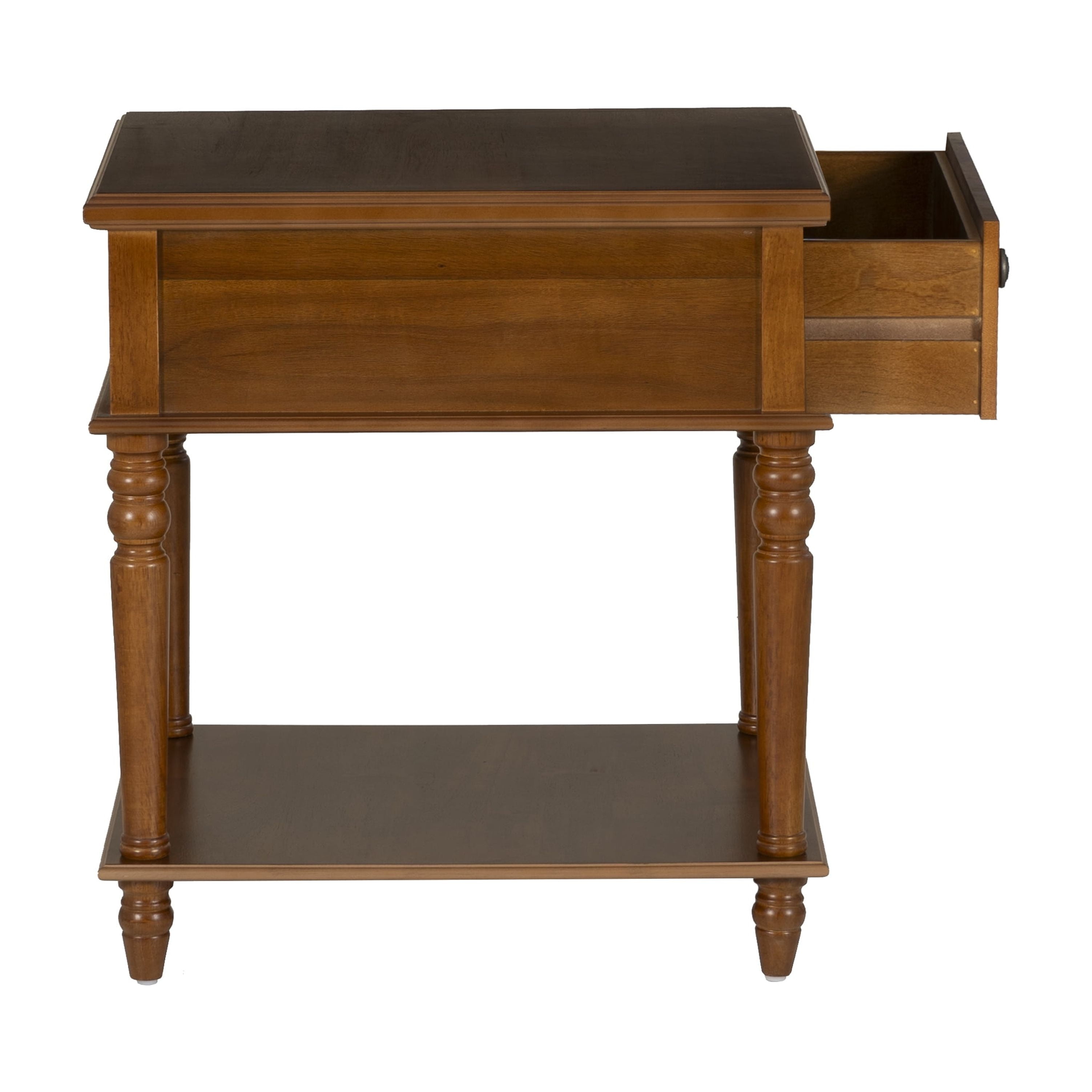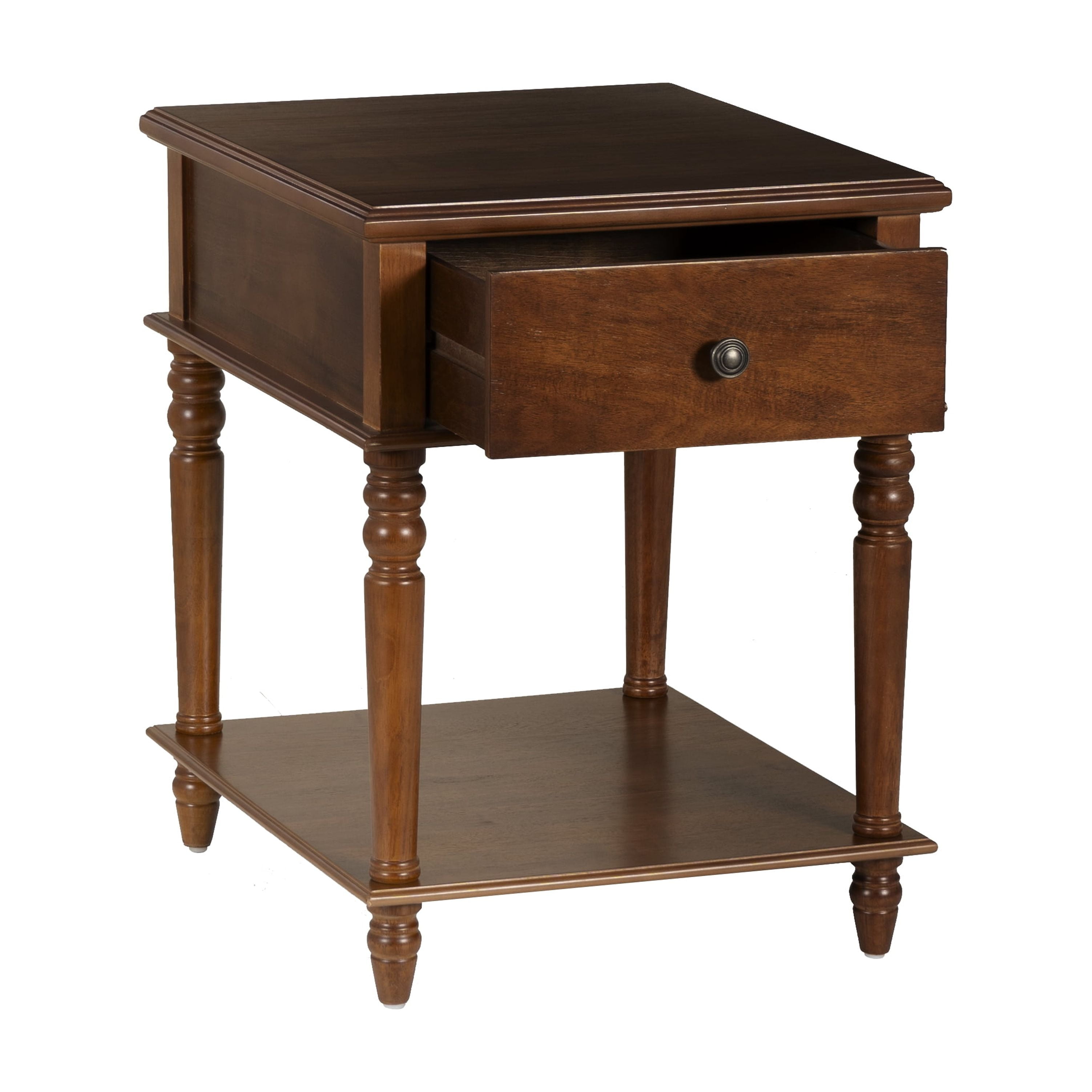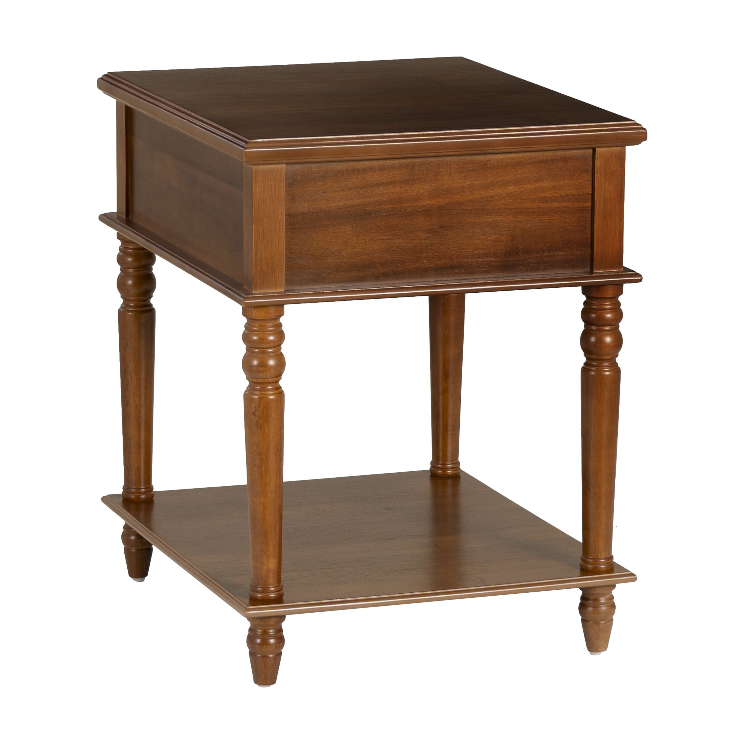 Timeless Elegant Design: With its beautifully turned legs and rich Hazelnut finish, this table adds a touch of classic sophistication to any space. Its refined details make it a standout piece that complements a wide range of interior styles, from traditional to contemporary. Generous Storage Space: The large drawer (14”W x 17”D x 4.5”H) offers the perfect place to store everyday essentials, while the spacious lower shelf (20”W x 23.75”D) gives you plenty of room for books, decor, or other items, keeping your space organized and stylish. Quick and Easy Assembly: With a simple, no-fuss assembly process that takes under 15 minutes, you can quickly enjoy the functionality and beauty of this table without the hassle. No need for complicated tools or instructions—just effortless setup. Versatile and Practical: Designed to fit seamlessly in a variety of rooms, from living rooms and family rooms to bedrooms and entryways, this table’s adaptable size and style make it a perfect addition to your home, regardless of your decor preferences. Low Maintenance and Durable: Crafted with both beauty and longevity in mind, this table’s wipe-clean surface ensures easy upkeep. Whether you use a dry or damp cloth, it’s designed to withstand daily use while maintaining its polished, elegant appearance for years to come.