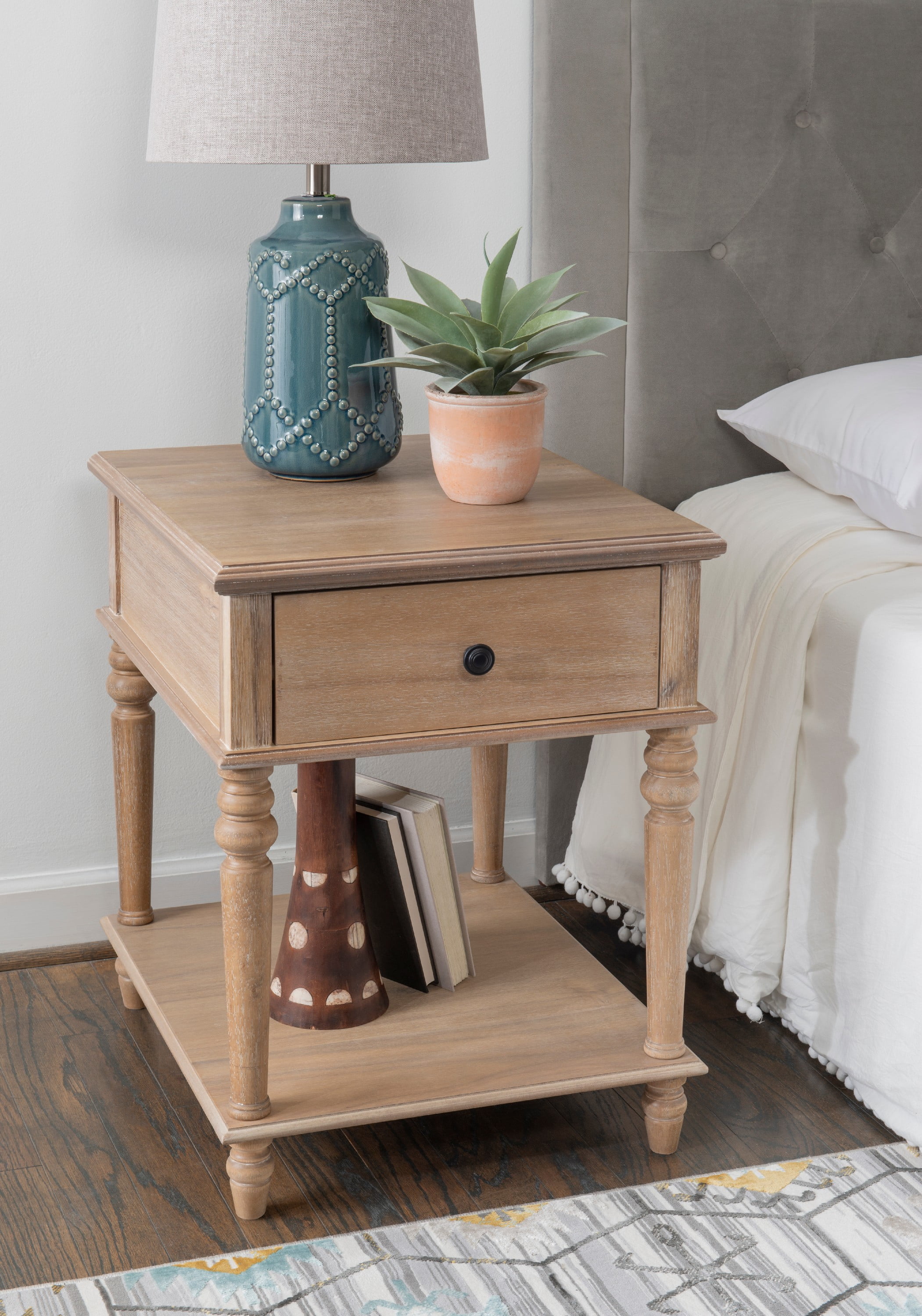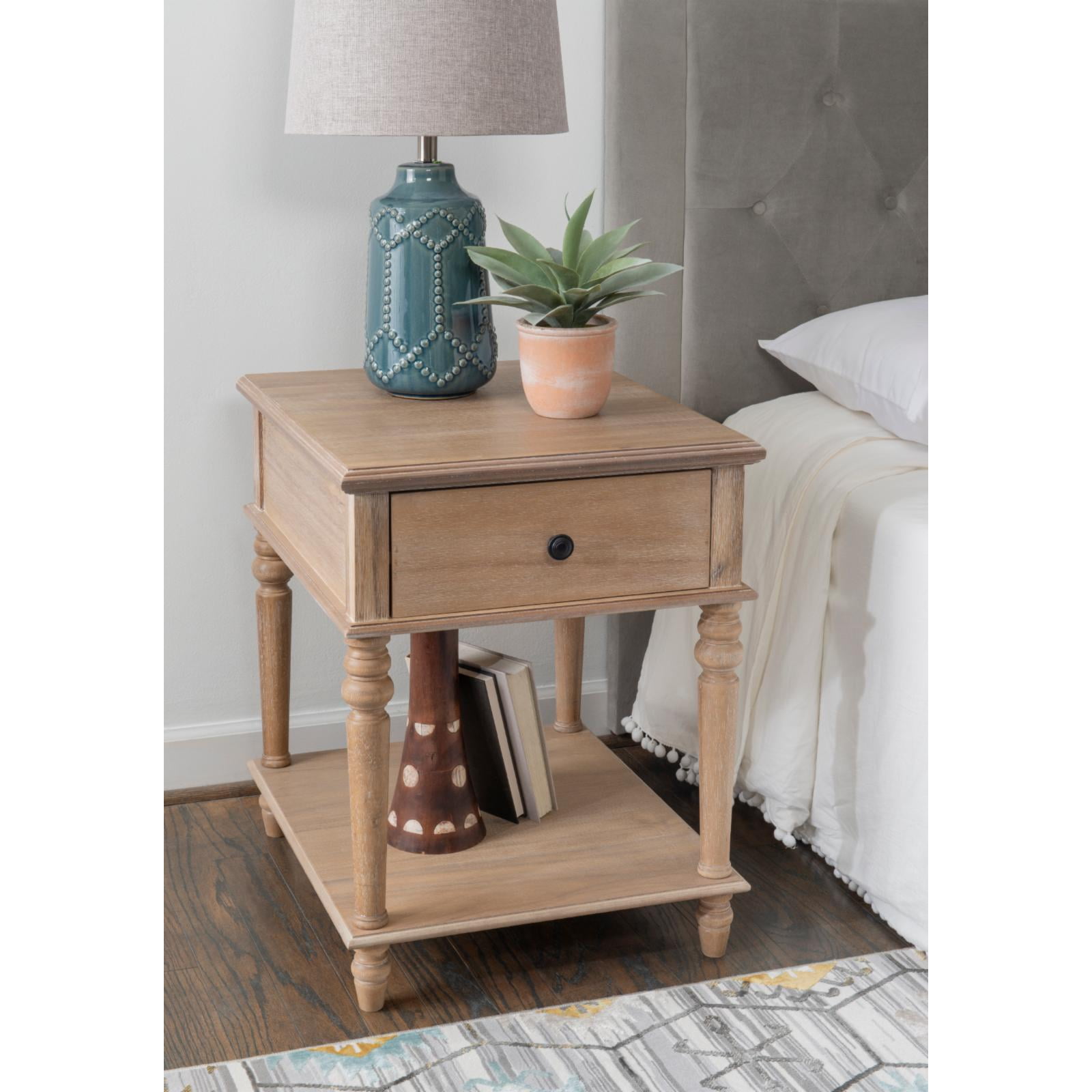 Timeless Elegant Design: With its beautifully turned legs and rich Natural finish, this table adds a touch of classic sophistication to any space. Its refined details make it a standout piece that complements a wide range of interior styles, from traditional to contemporary. Generous Storage Space: The large drawer (14”W x 17”D x 4.5”H) offers the perfect place to store everyday essentials, while the spacious lower shelf (20”W x 23.75”D) gives you plenty of room for books, decor, or other items, keeping your space organized and stylish. Quick and Easy Assembly: With a simple, no-fuss assembly process that takes under 15 minutes, you can quickly enjoy the functionality and beauty of this table without the hassle. No need for complicated tools or instructions—just effortless setup. Versatile and Practical: Designed to fit seamlessly in a variety of rooms, from living rooms and family rooms to bedrooms and entryways, this table’s adaptable size and style make it a perfect addition to your home, regardless of your decor preferences. Low Maintenance and Durable: Crafted with both beauty and longevity in mind, this table’s wipe-clean surface ensures easy upkeep. Whether you use a dry or damp cloth, it’s designed to withstand daily use while maintaining its polished, elegant appearance for years to come.