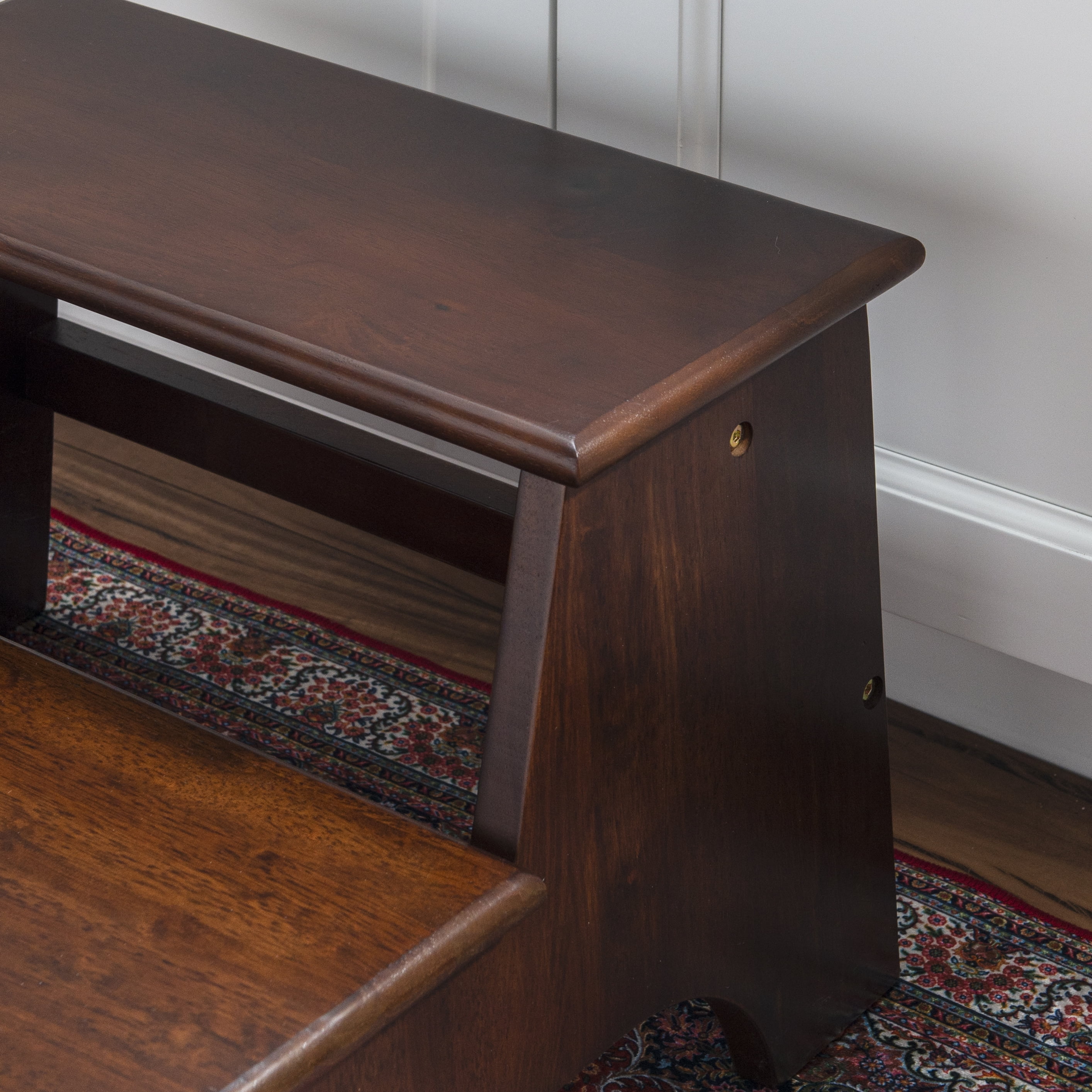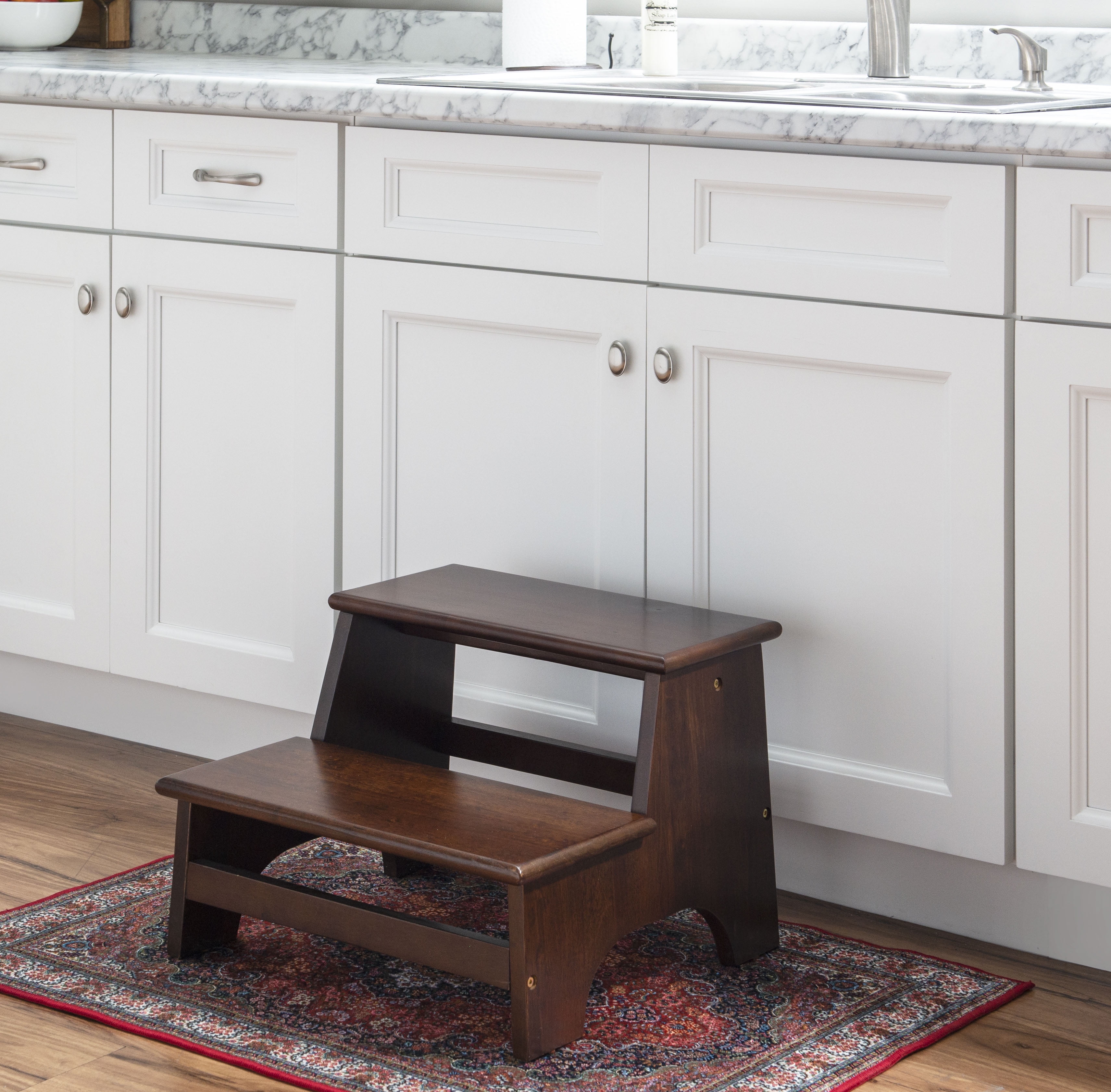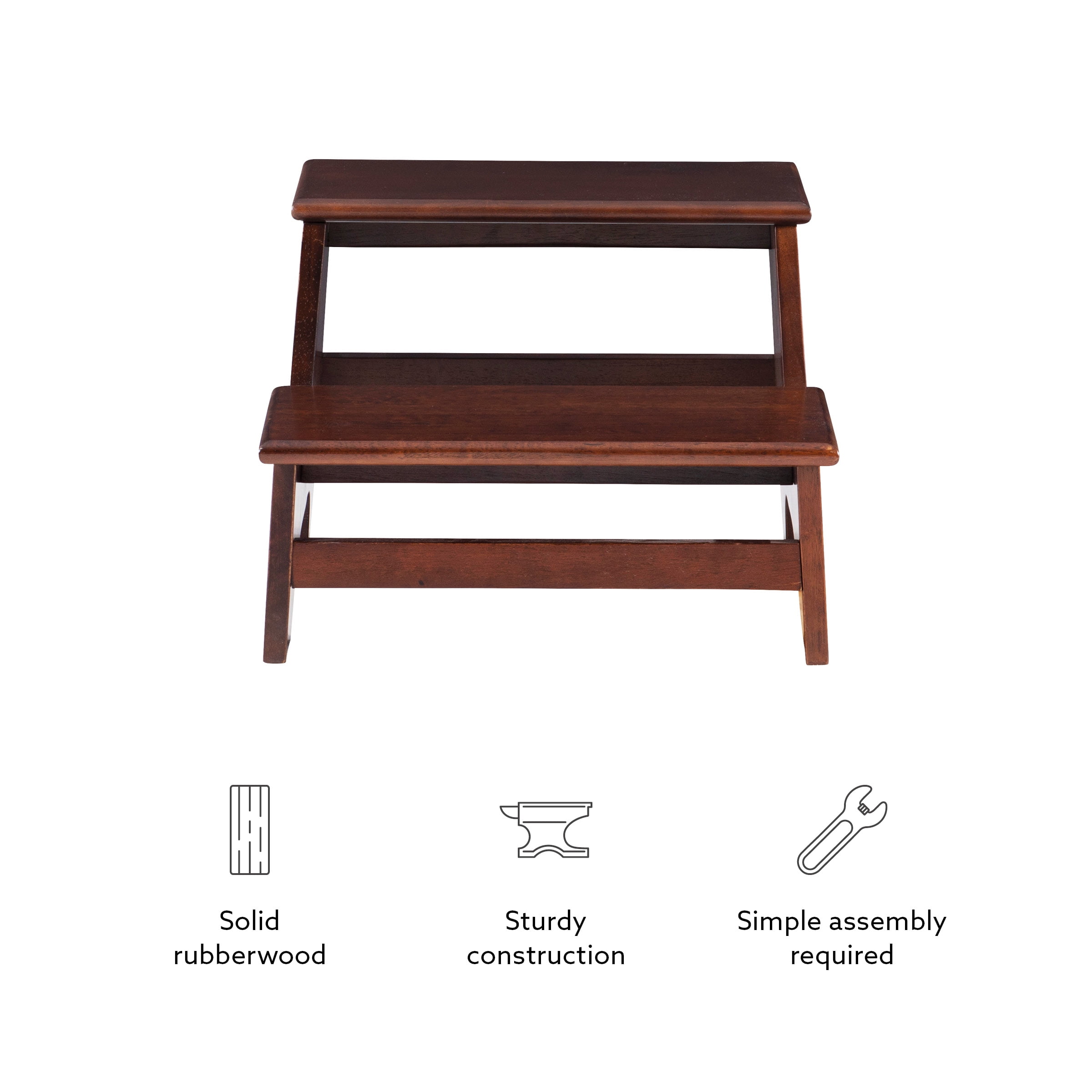 A simple and classic design makes this step stool a wonderful addition to any home where the extra step is needed. The two-step design is made from rubberwood in an espresso finish. These steps are perfect to assist in reaching high areas and for small pets to reach high beds. The height of these steps will give you more than a foot advantage for out-of-reach items. Once received, the simple assembly will allow you easy access to some added height.