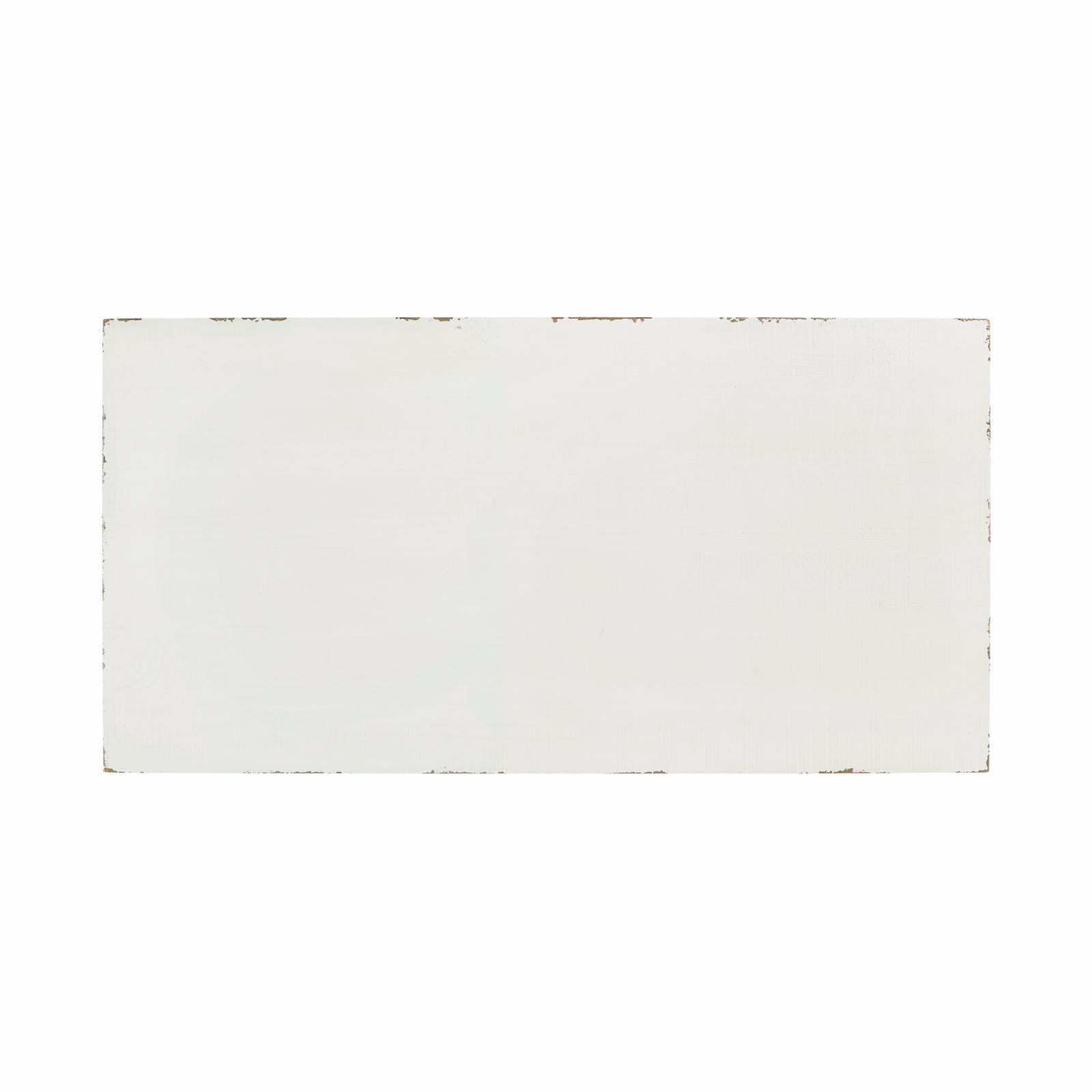 Wood construction Double pedestal design Decorative scrollwork Distressed white finish Coordinating end and console tables available Distance between pedestals: 35.5″