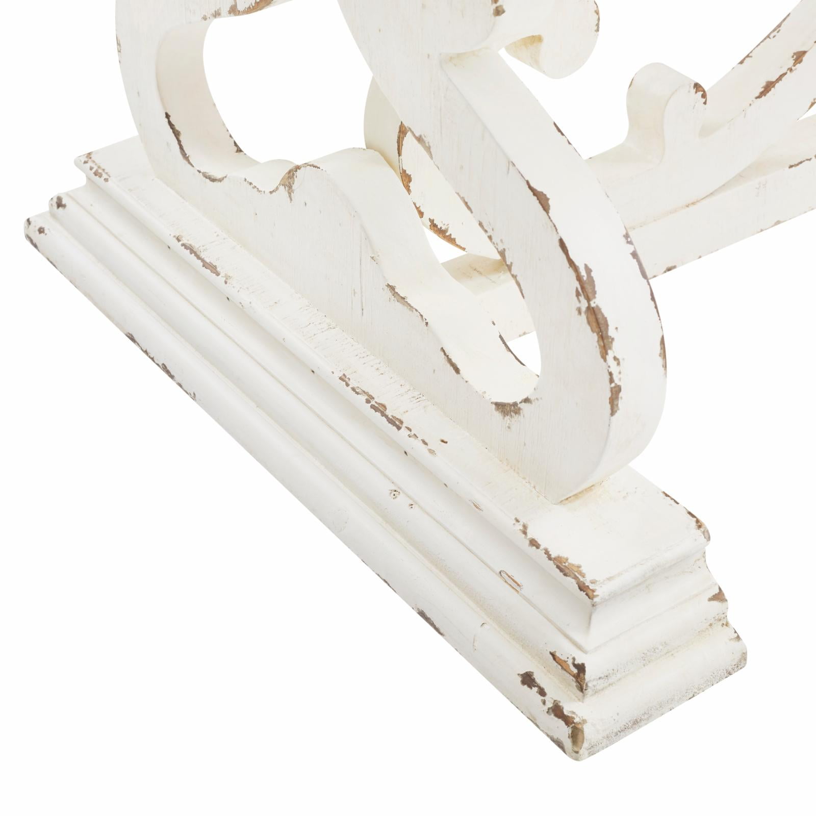 Powell Renck Shabby Chic Coffee Table with Decorative Scrollwork, Distressed White