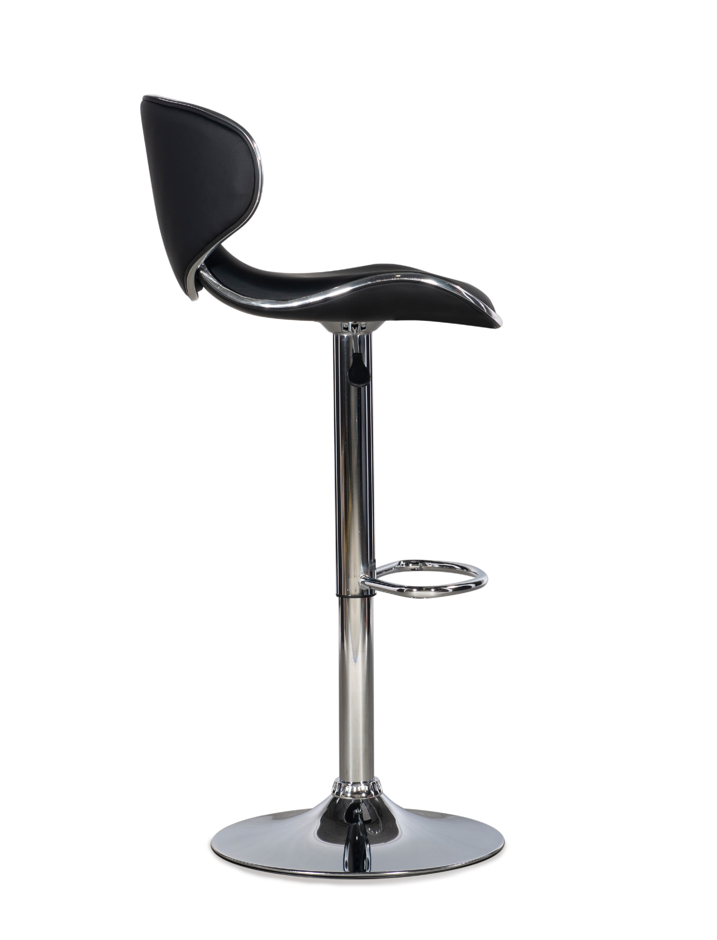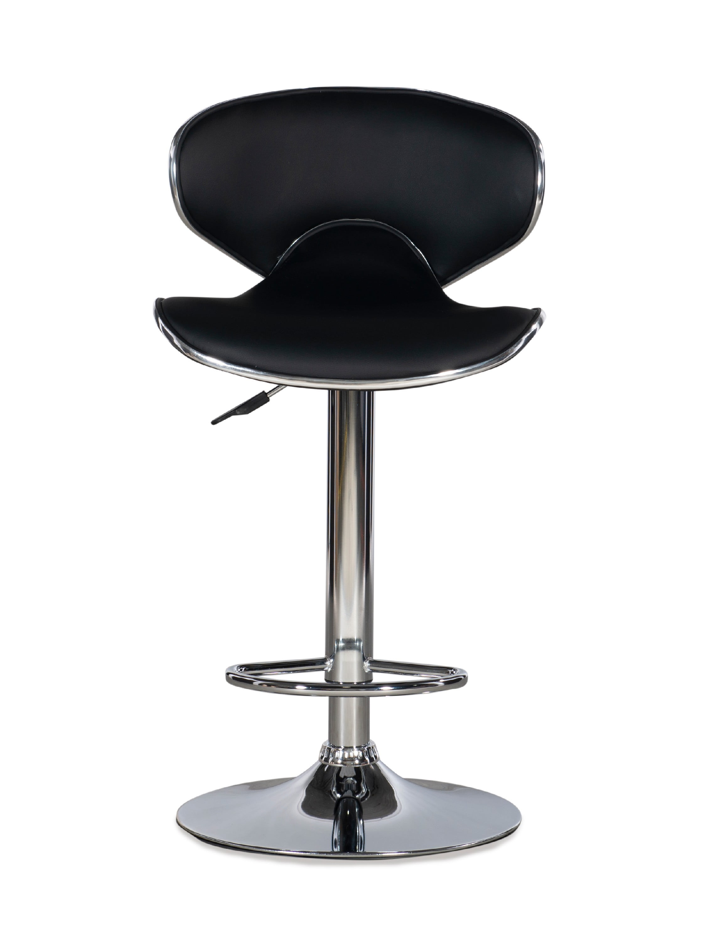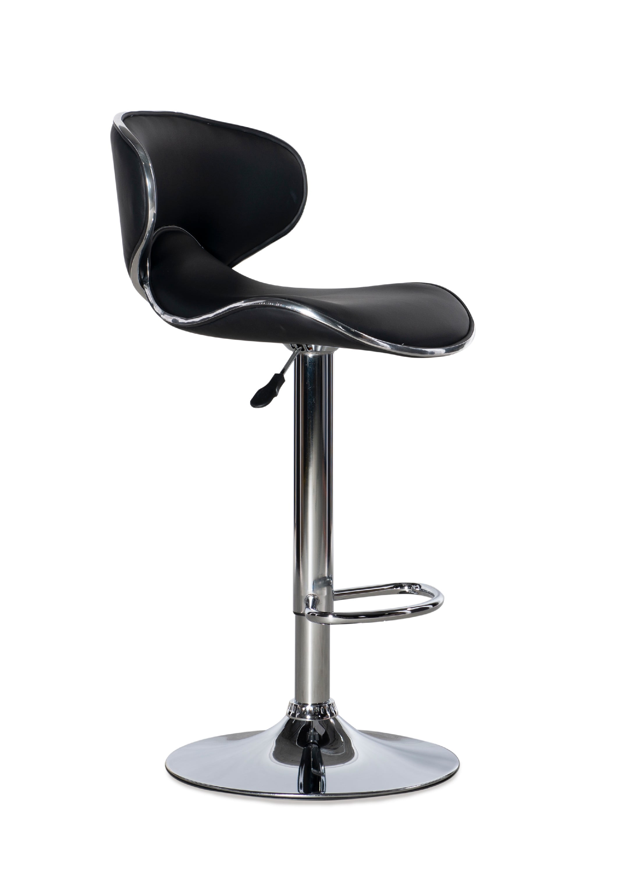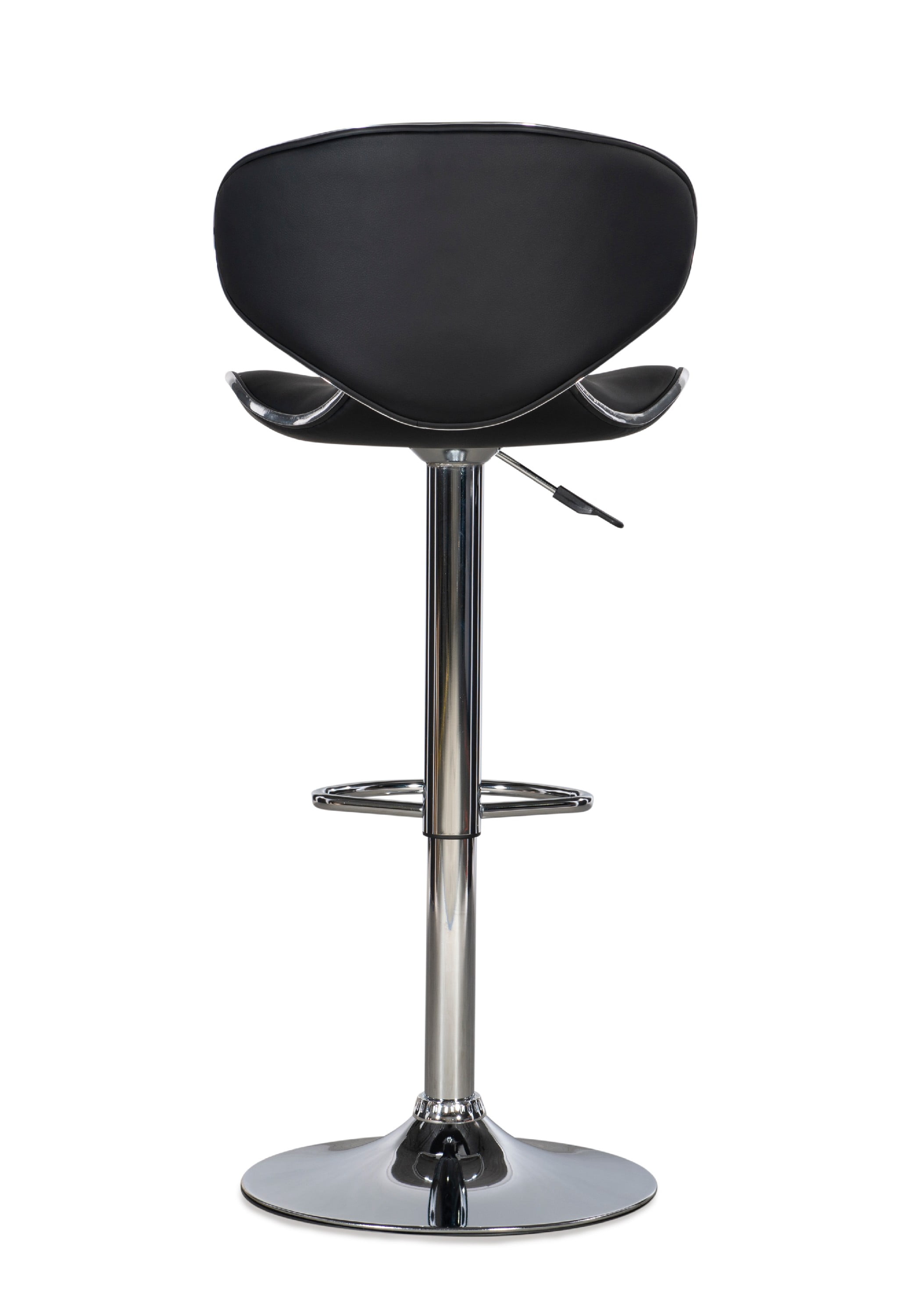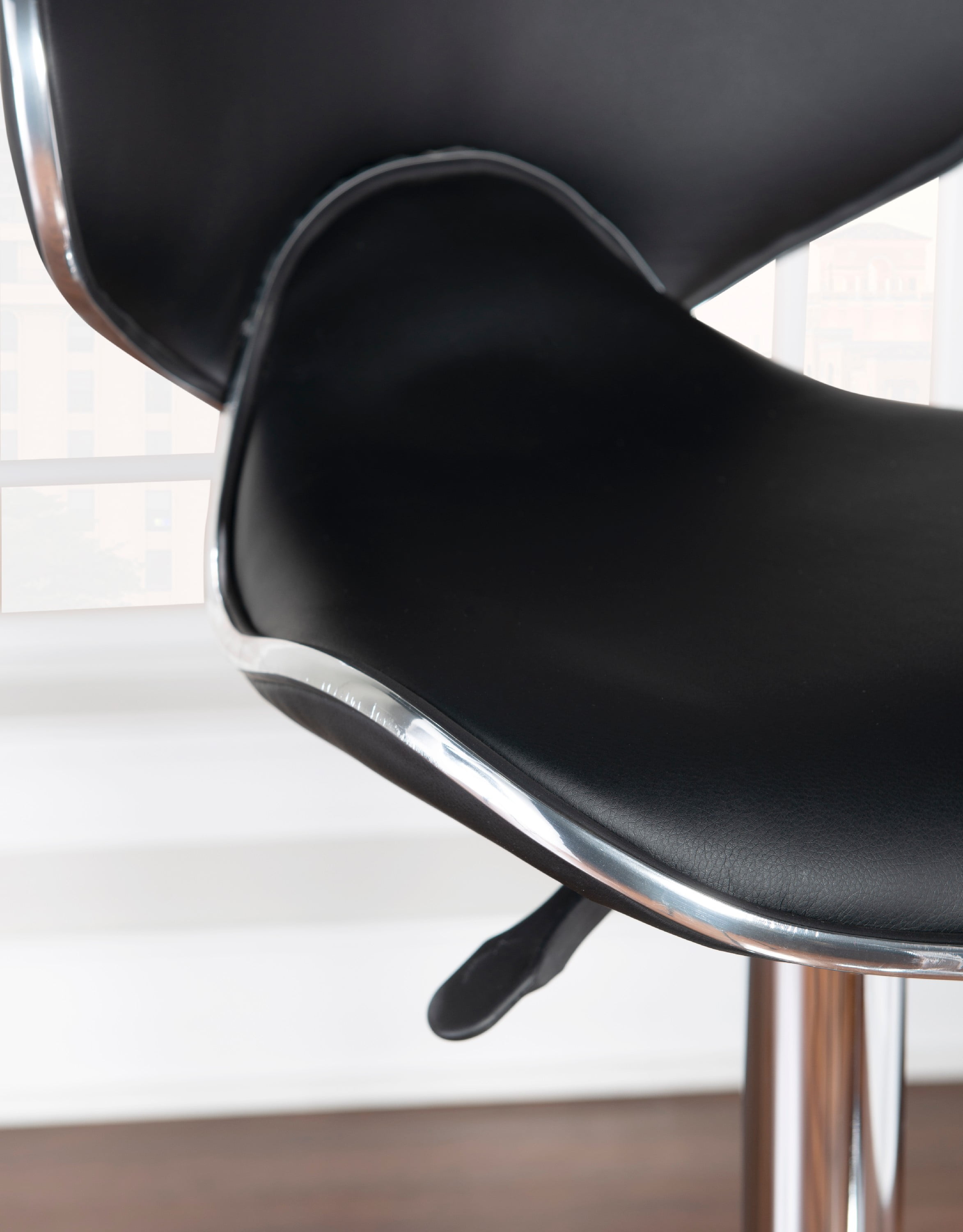 The Powell Rounded Back Bar Stool with 24″-32″ Adjustable Height, is a unique, contemporary addition to your home. The curved back faux leather seat, round sturdy footrest and height adjustable lever provides both style and function. An eye-catching, versatile black and chrome easily complements your home’s existing decor. Swivel seat adjusts with a gas-lift mechanism.