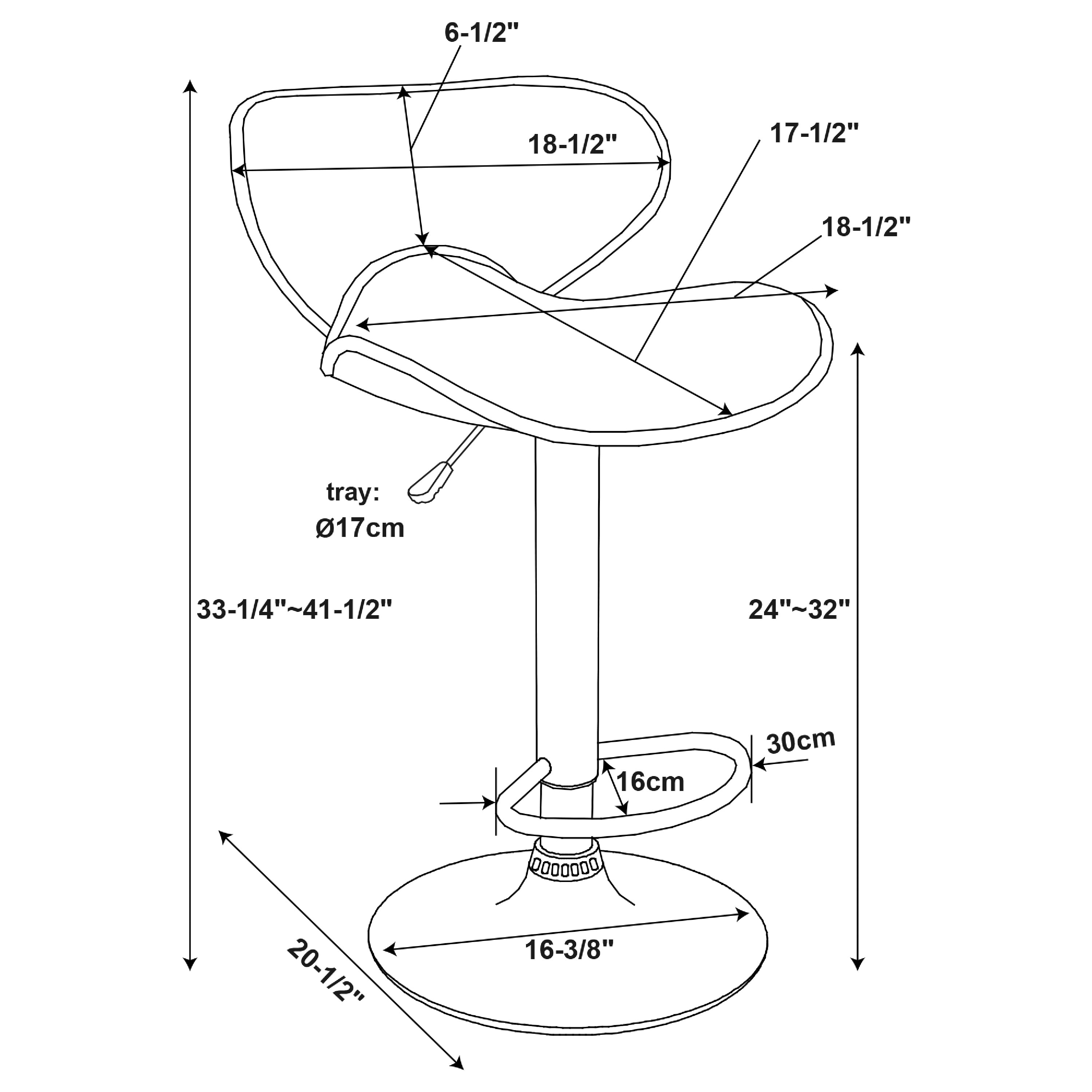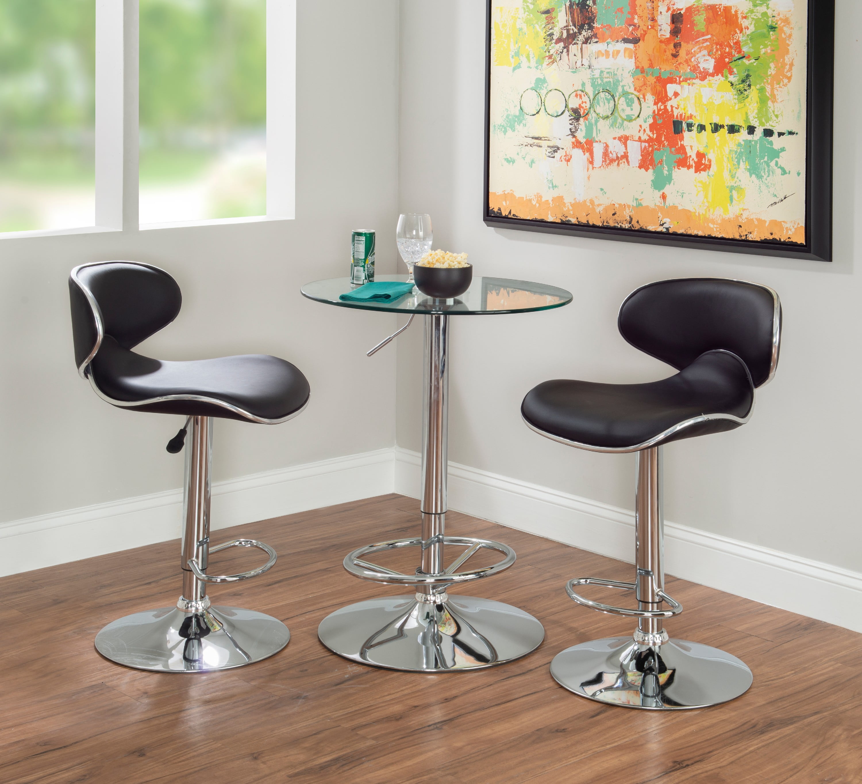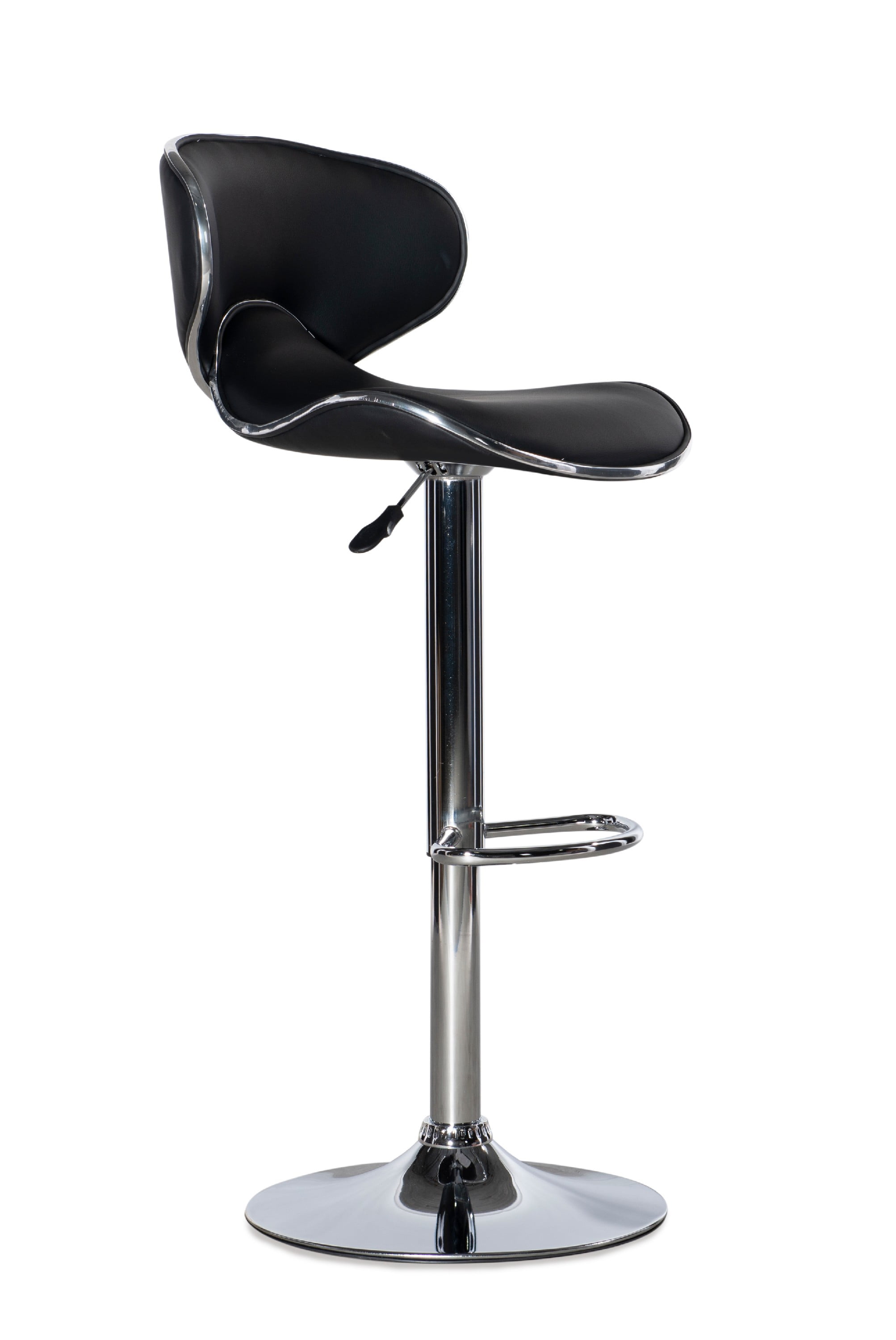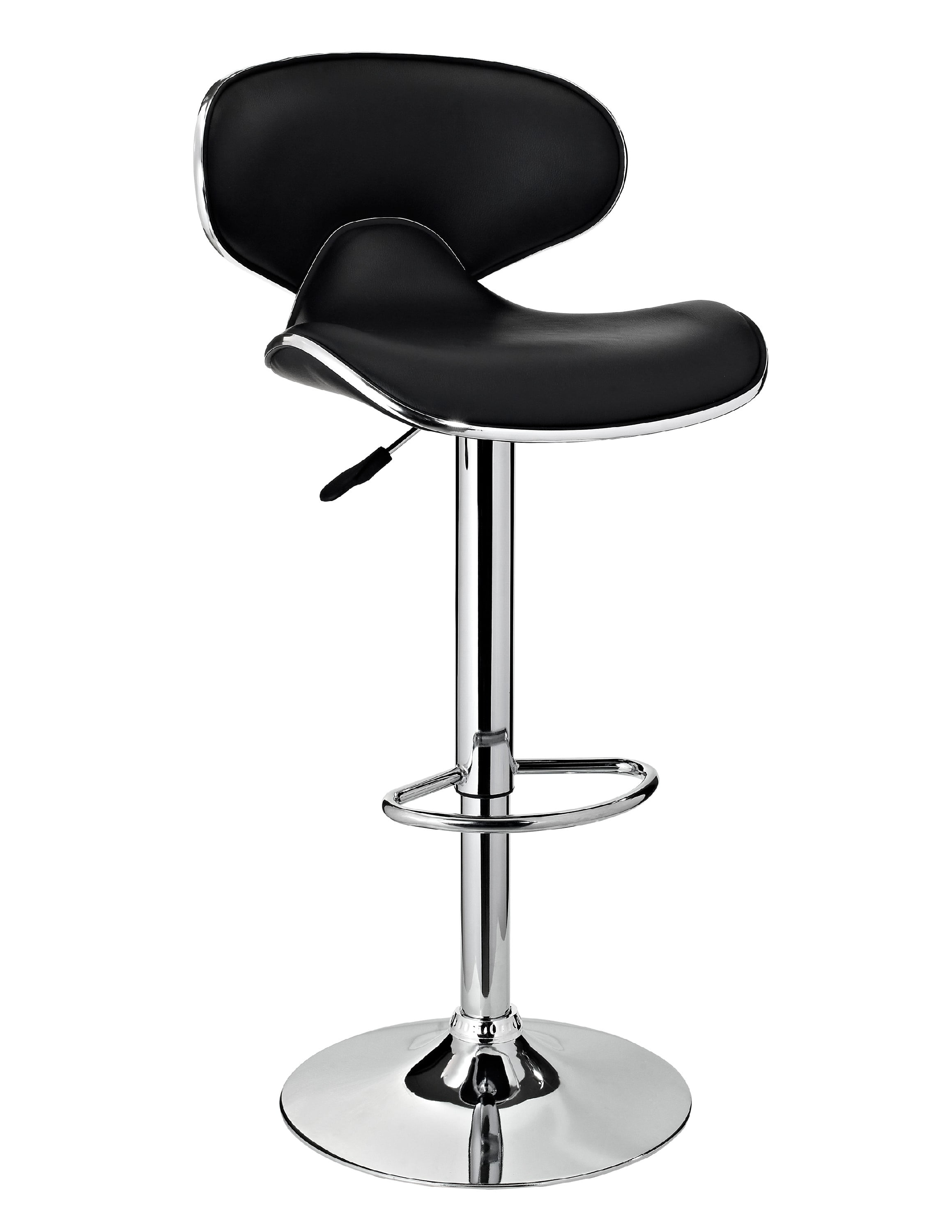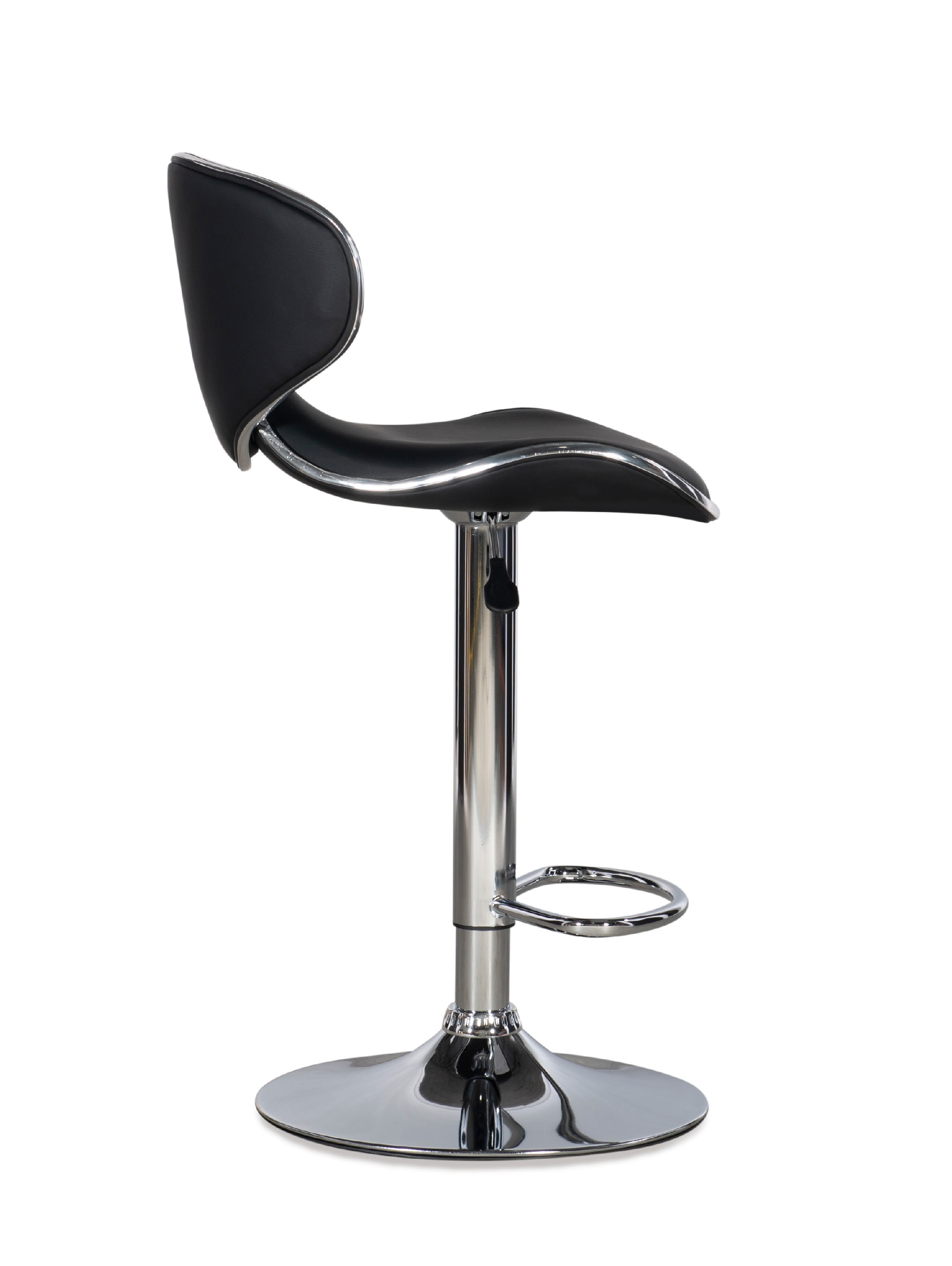 The Powell Rounded Back Bar Stool with 24″-32″ Adjustable Height, is a unique, contemporary addition to your home. The curved back faux leather seat, round sturdy footrest and height adjustable lever provides both style and function. An eye-catching, versatile black and chrome easily complements your home’s existing decor. Swivel seat adjusts with a gas-lift mechanism.