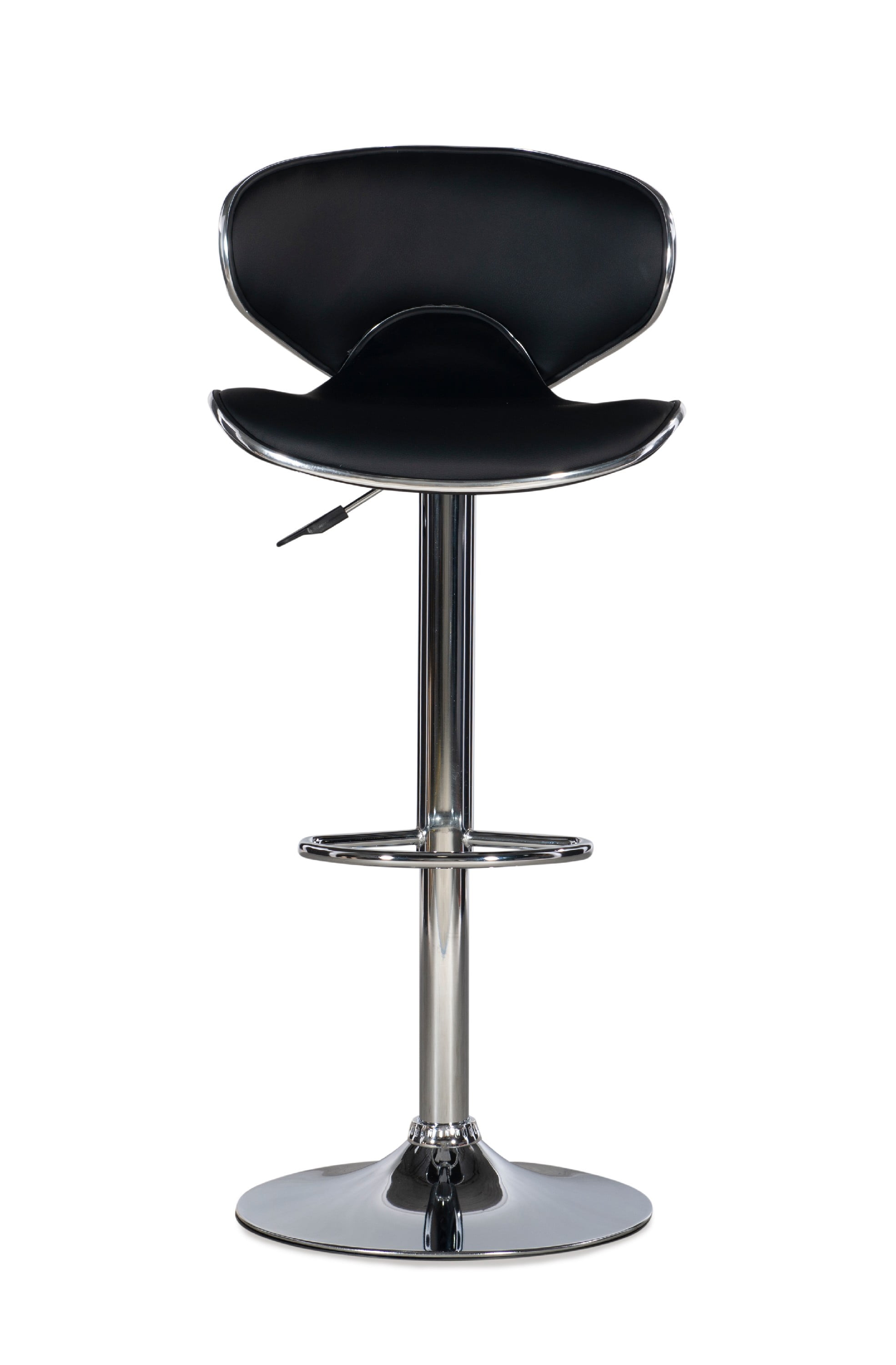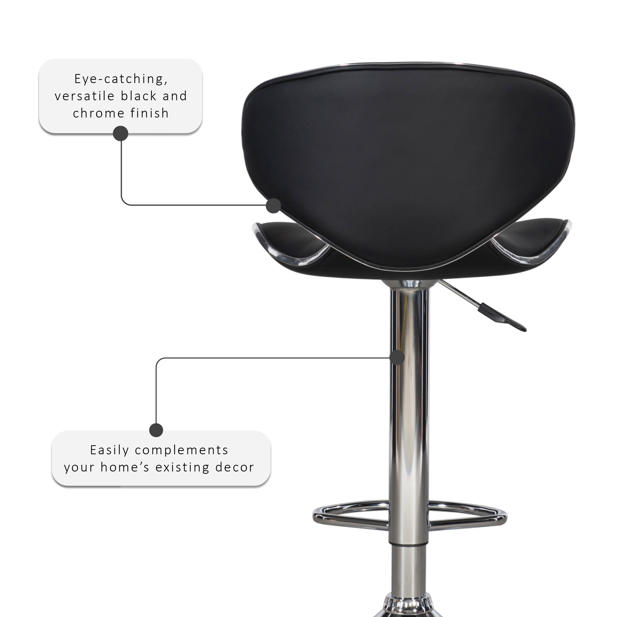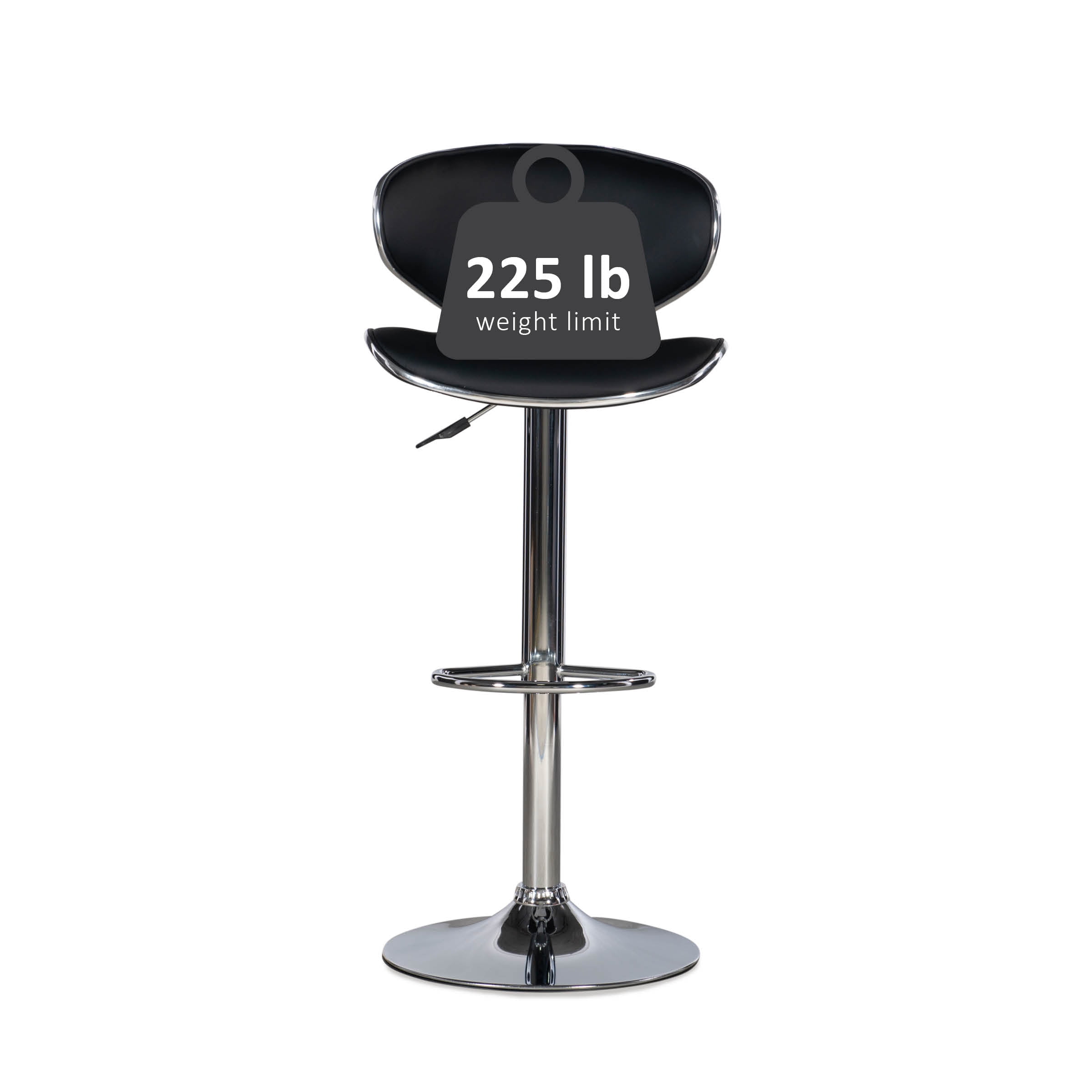 Powell Rounded Back Bar Stool, 24″-32″ Adjustable Height, Chrome with Black Faux Leather, Includes 1 Stool
