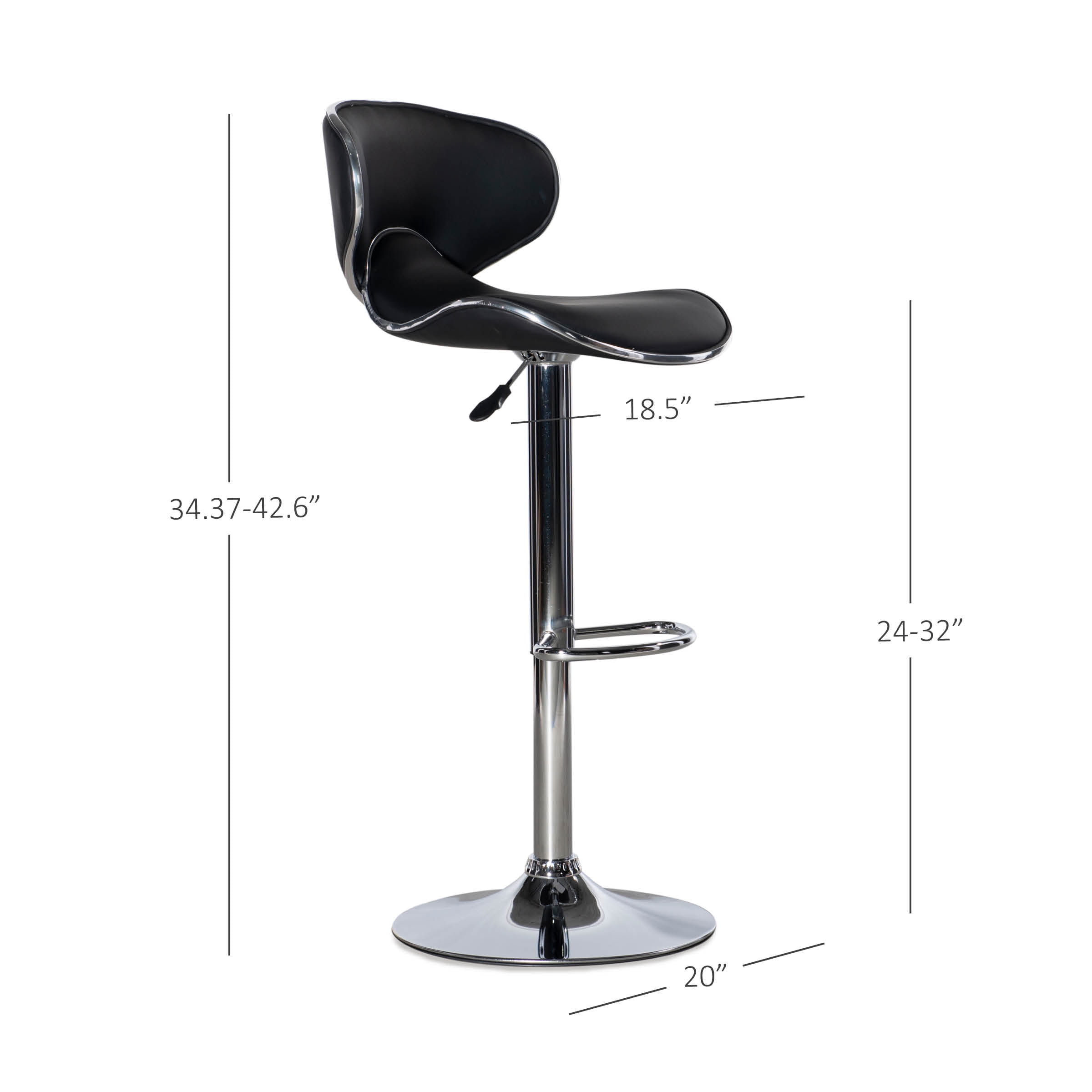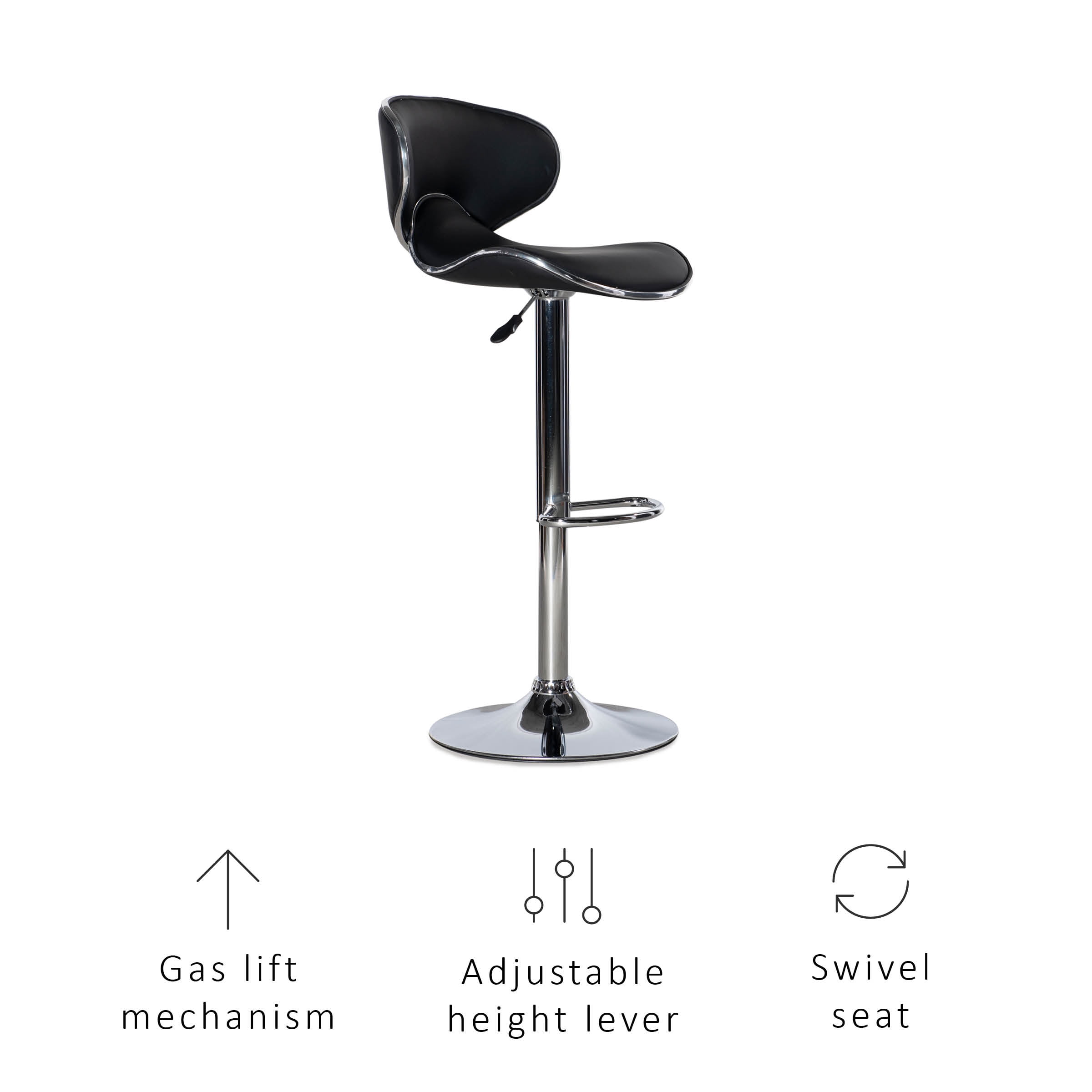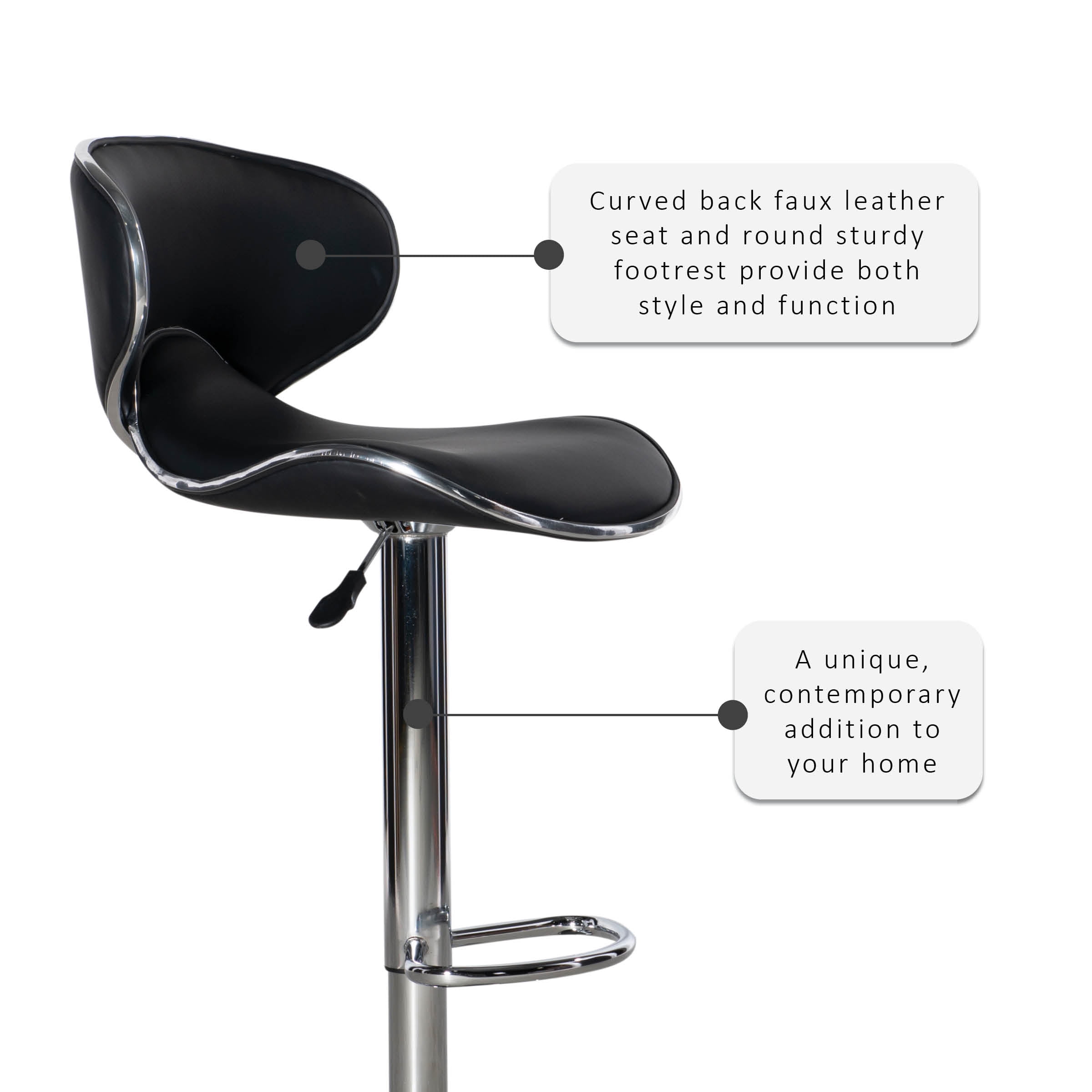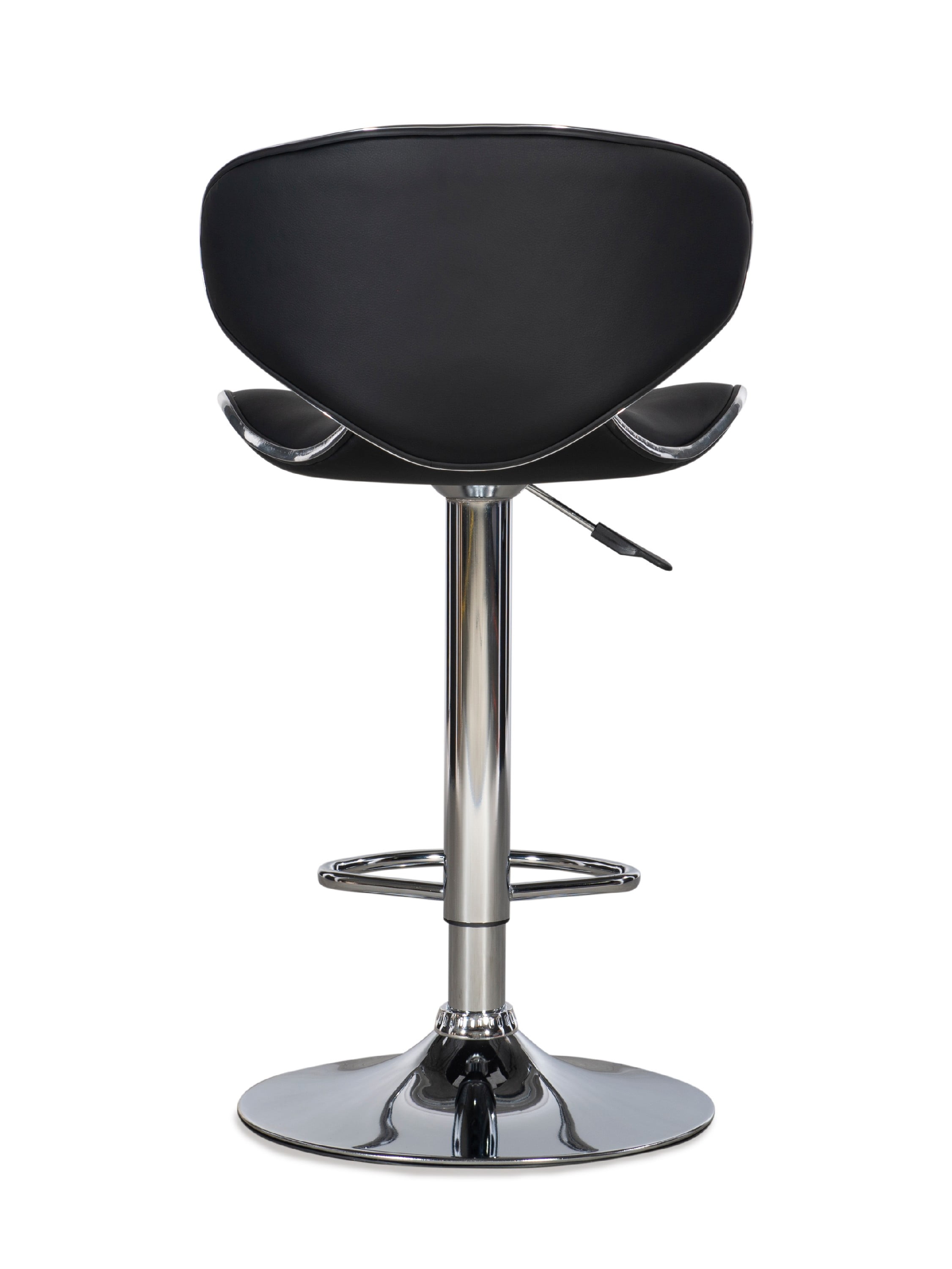 Powell Rounded Back Bar Stool, 24″-32″ Adjustable Height, Chrome with Black Faux Leather, Includes 1 Stool