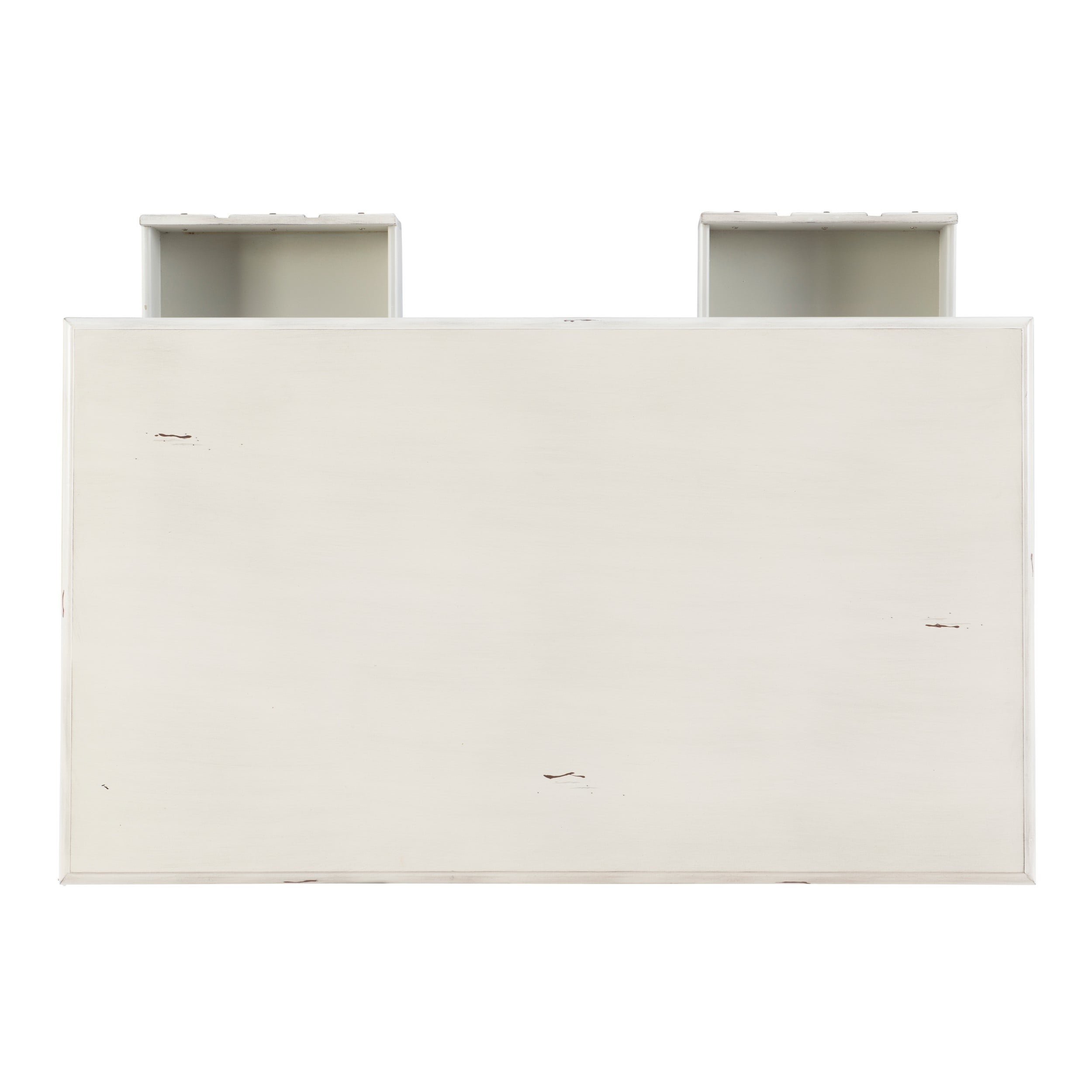 This chic coffee table will bring boho style and out of sight organization to your living room or den. 3 spacious drawers span the width of the table and can be opened on either side. A distressed cream finish offers a vintage look that’s accentuated by the round metal drawer pulls in antiqued bronze. On the lower level, an open shelf provides plenty of space to stow away linens, magazines and any other miscellaneous items you’d like to keep readily accessible. Tasteful and dependable, this coffee table is sure to bring a whole new feel to your living space.
