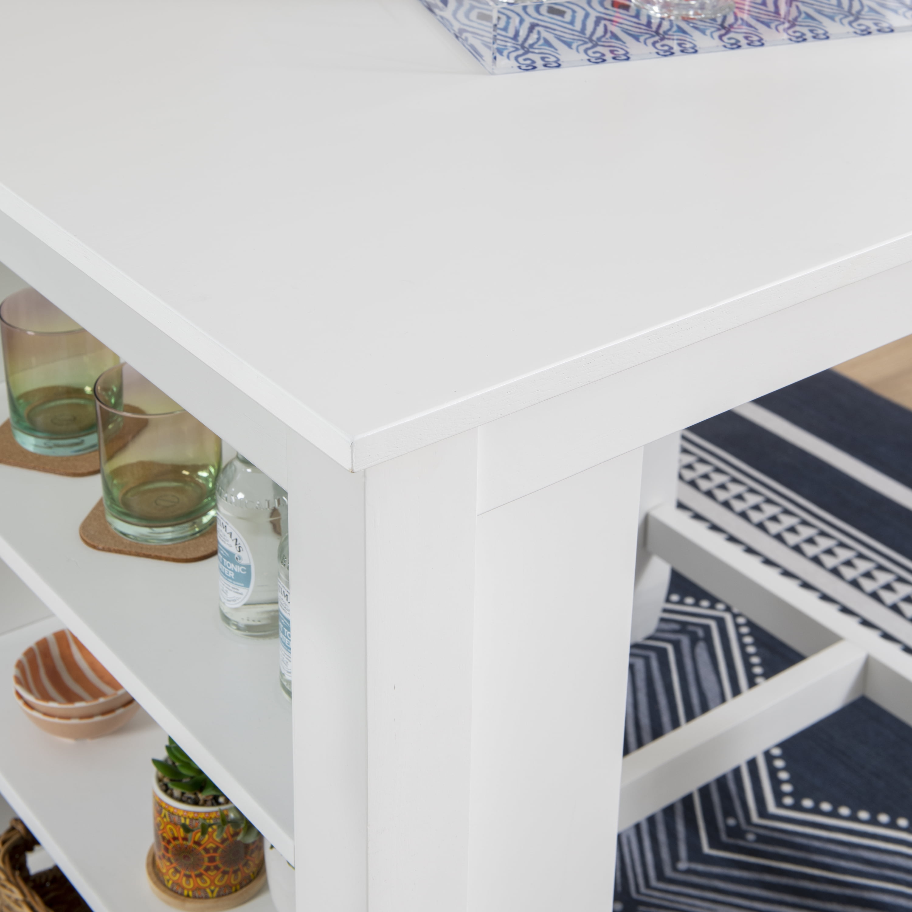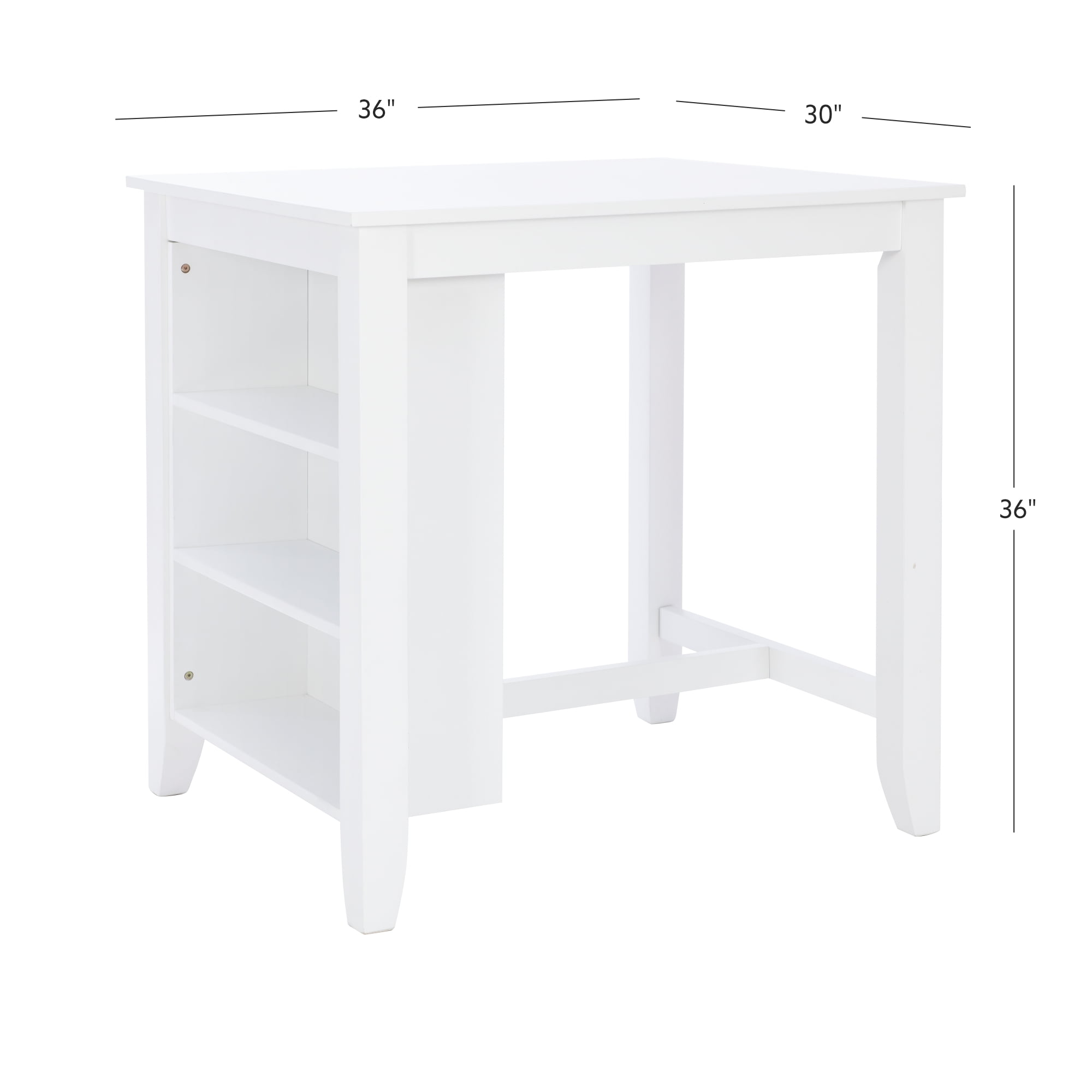 This space-saver table is a costal cottage design that you can mix and match to any style you please. This counter-height table has a decorative open shelf display topped with a dual usb charging station. The small footprint of this table makes it perfect for any space that is used for dinner, work, or play.