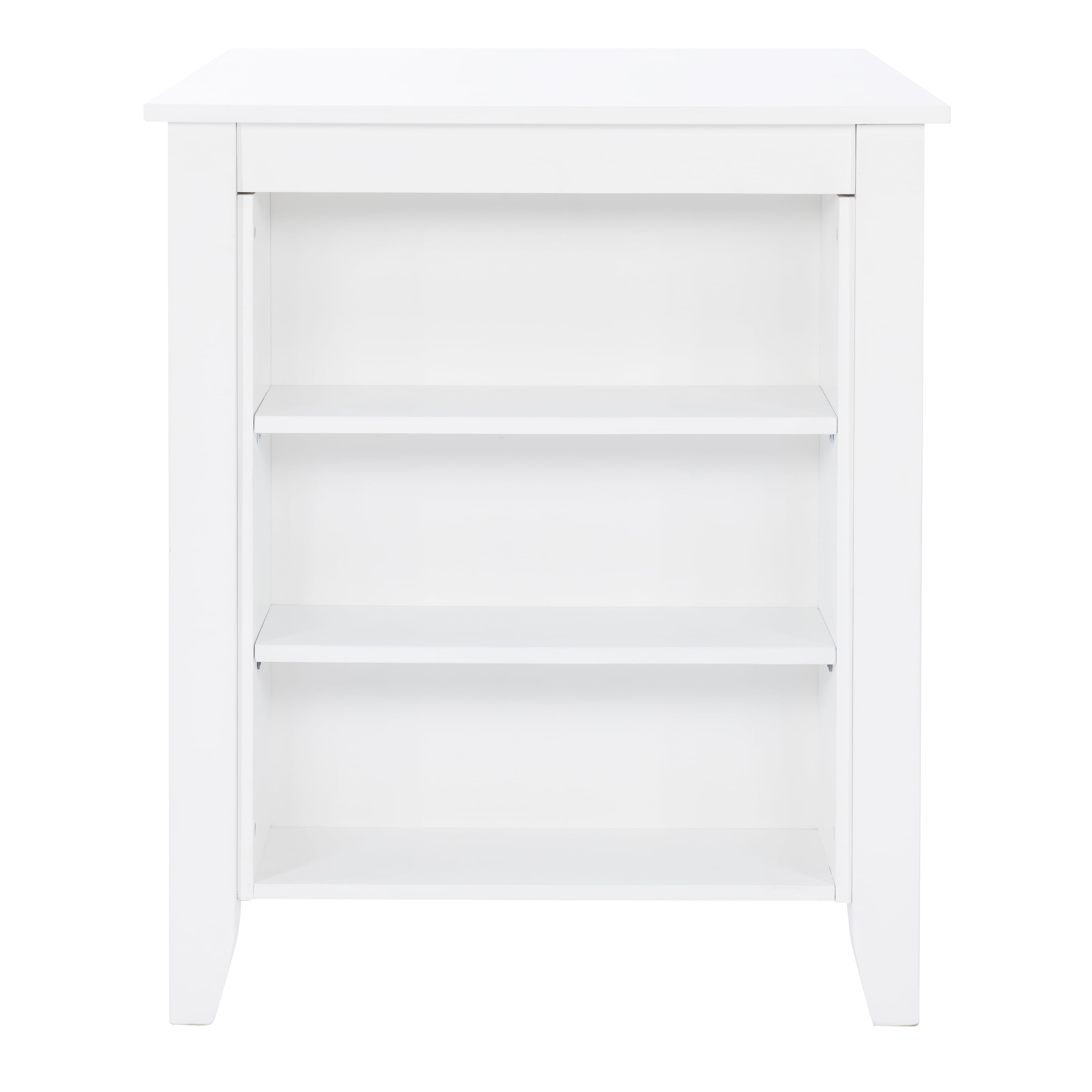 Casual coastal style Acacia wood veneer in a pure white finish Three display shelves Ups charging station Small footprint design Some assembly required Nook not included Dimensions: 36 L X 30 D X 36 H Ships in 1 box