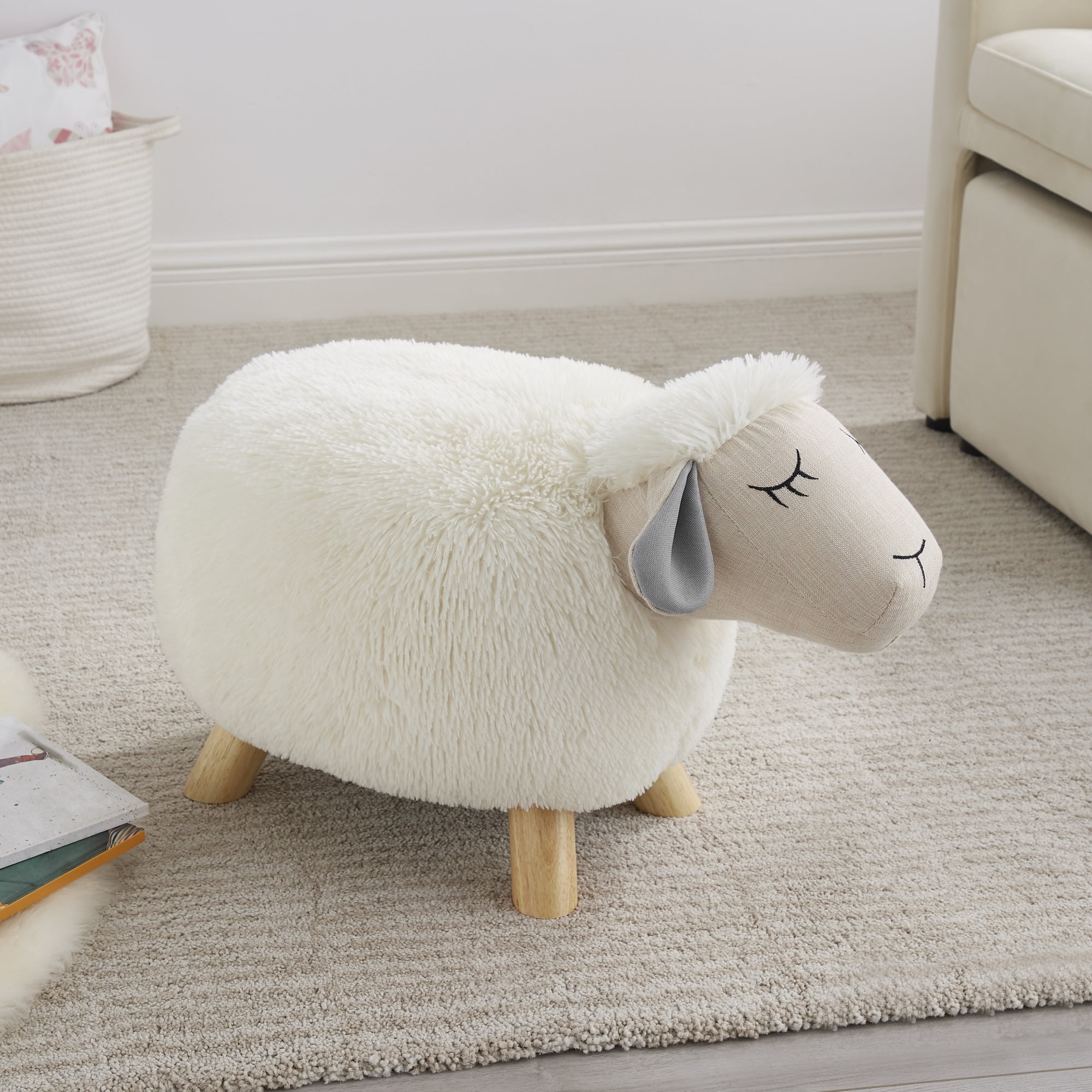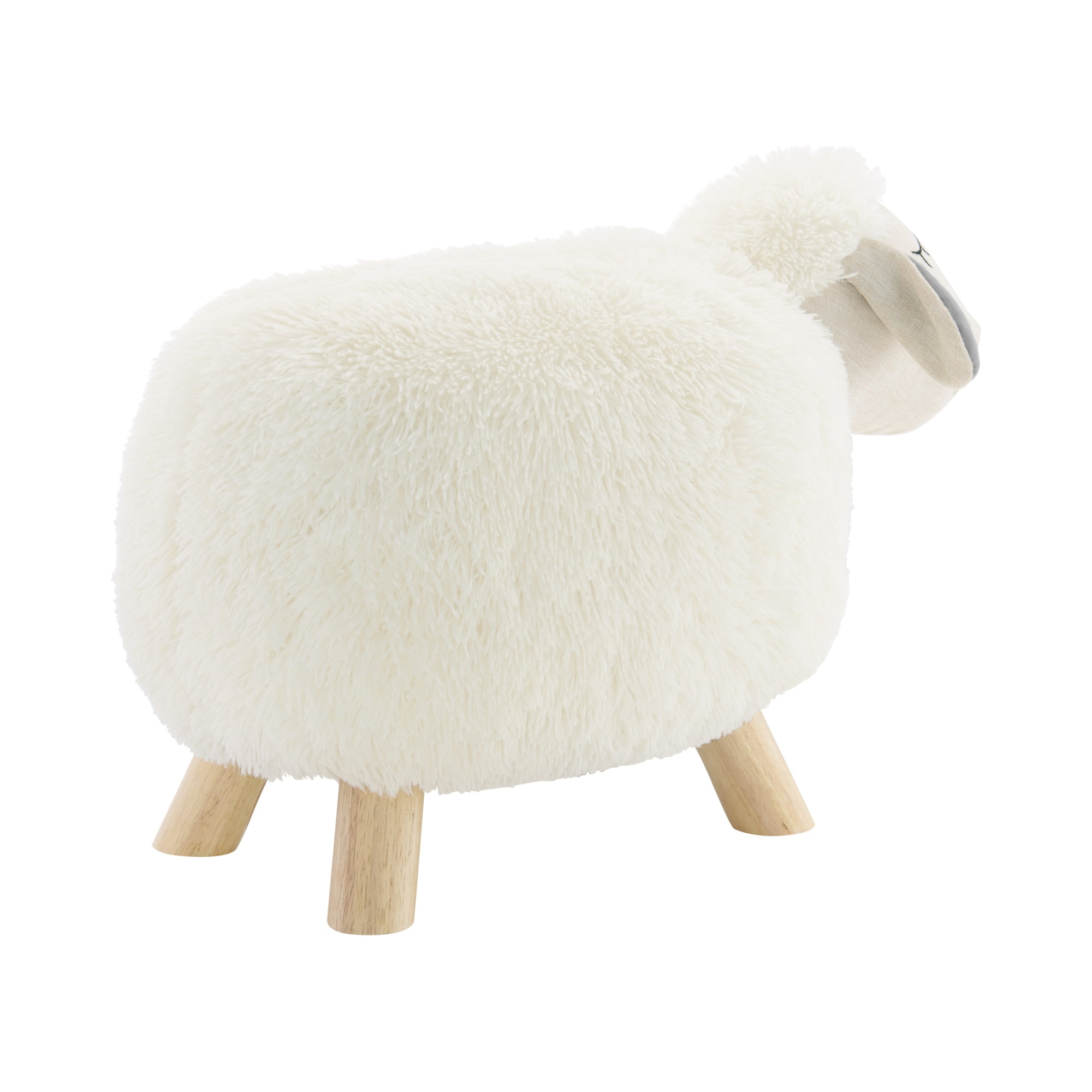 Sydney Stool No Storage Whimsical Sheep stool is a great addition to any child’s room. Durable, furry fabric feels like a cuddly sheep. Complete with floppy ears to finish the look of a friendly baby lamb to inspire the imagination of kids of all ages. Sturdy wooden feet complete the look. Faux fur feels like a sheep Soft fabric ears Use as an accent, a stool or an ottoman Assembled size 17″w x 17″d x 19″h Simply screw on wood legs – Seat Height: 13.5″ – Seat Dimensions: 13″w x 13.5″d – item H: 15 – item L: 21.5 – Item D: 11